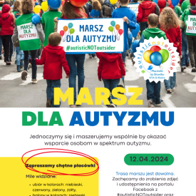 Opublikowano: 09/04/2024 12 kwietnia weźmiemy udział w MARSZU DLA AUTYZMU. Dodatkowe informacje na plakacie.