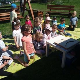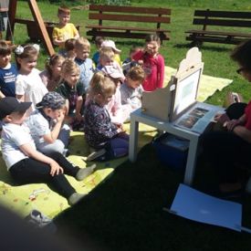 Dzieci z grupy Motylków, Żabek i Pszczółek wzięły udział w czytankach na świeżym powietrzu. Jak zwykle nasze kochanie Panie Bibliotekarki przygotowały piękne zajęcia.