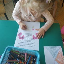 Dzieci z grupy Motylków w imieniu wszystkich przedszkolaków, Pani dyrektor i nauczycieli wręczyły laurkę dla zaprzyjaźnionych Pań z pobliskiej Biblioteki filii nr 2.