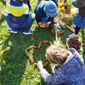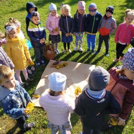 Za nami pierwsze zrealizowane zadanie - tworzenie obrazów przy użyciu materiału przyrodniczego tzw. „Sztuka ziemi (land art)”.