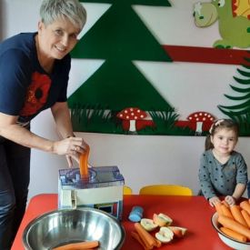 Podsumowaniem witaminowych zajęć było wykonanie soku marchewkowo-jabłkowego w grupie Biedronek