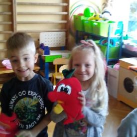 Była owocowo-warzywna gimnastyka, wycieczka do warzywniaka, taniec z owocami i warzywami, teatrzyki , degustacja owoców i warzyw.