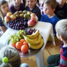 Podczas zajęć w przedszkolu dzieci poznawały nazwy, wygląd i walory smakowe tych naturalnych witaminek.