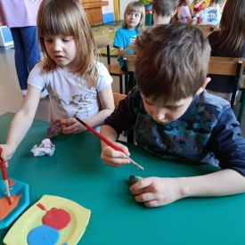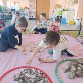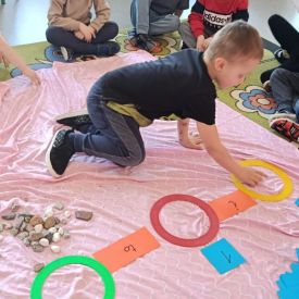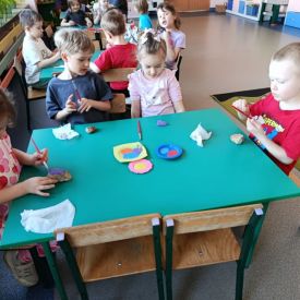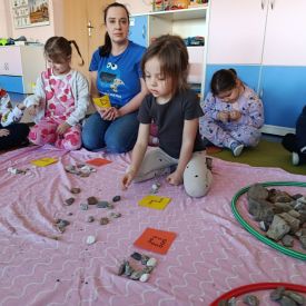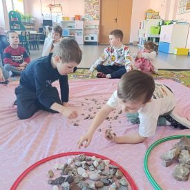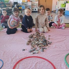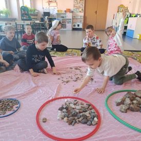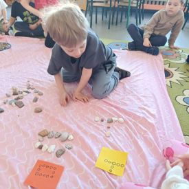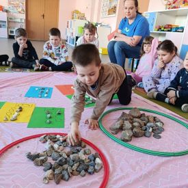 Za Motylkami kolejne zadanie. W czwartek 20.03.2025r. dzieci zrealizowały działanie "Głazy, kamienie, kamyczki - nie potrzebne nam nożyczki" z kręgi II "Postaw na ekologię". Zadanie dotyczyło kreatywnego wykorzystania kamieni podczas zajęć. Dzieci z wykorzystaniem tej niecodziennej pomocy dydaktycznej doskonaliły swoje umiejętności matematyczne. Na początku segregowaliśmy przyniesione przez dzieci wspaniałe okazy kamieni, według określonej cechy. Następnie ćwiczyliśmy przeliczalnie oraz doskonaliliśmy umiejętność dodawania. Motylki doskonale poradziły sobie z układaniem, różnych figur z kamieni według wylosowanego wzoru. Ostatnim zadaniem, postawionym przed dziećmi, podczas tych zajęć było upiększenie wybranych kamyczków za pomocą farby. Każdy z kamyczków był piękny i wyjątkowy.