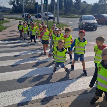 Dnia 18 września 2024 r. grupa III w odblaskowych kamizelkach wybrała się na spacer na pobliskie skrzyżowanie. Przedszkolaki obserwowali ruch uliczny ...