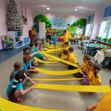 Nasze przedszkole wzięło udział w konkursie zorganizowanym przez Rejonowe Przedsiębiorstwo Zieleni w Kielcach na najdłuższy świąteczny łańcuch ...