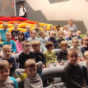 22 listopada 2023r. dzieci z grupy Motylków, Pszczółek i Sów obejrzały przedstawienie ,,Chodź na słówko”. Spektakl opowiada o małej dziewczynce ...