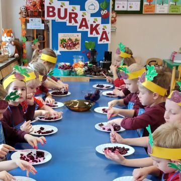Dnia 28. 11. 2023 r. obchodziliśmy w grupie Sówek Dzień Buraka. Dzieci ubrane na czerwono, bordowo, różowo bawiły się w różne zabawy, których głównym ...