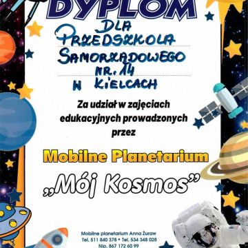 10.05.2023 r. dzieci z naszego przedszkola uczestniczyły w seansie edukacyjnym w mobilnym planetarium "Mój kosmos." Pokaz, dla każdej z grup odbył się ...