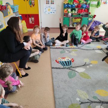 Dnia 27.03.2023 r. przedszkolaki brały udział w koncercie muzycznym pt. „Dzieci Dzieciom” w wykonaniu uczniów z Zespołu Państwowych Szkół Muzycznych ...