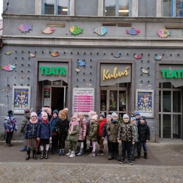 20 stycznia Przedszkolaki ze starszych grup wyjechały do Teatru Lalki i Aktora "Kubuś" im. Stefana Karskiego w Kielcach na spektakl "O Rybaku i Złotej ...