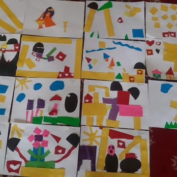 Przedszkolaki z grupy „Motylków” i „Pszczółek” zrealizowały kolejne zadanie na temat „Obrazy malowane nożyczkami” – bądź jak Henri Matisse.