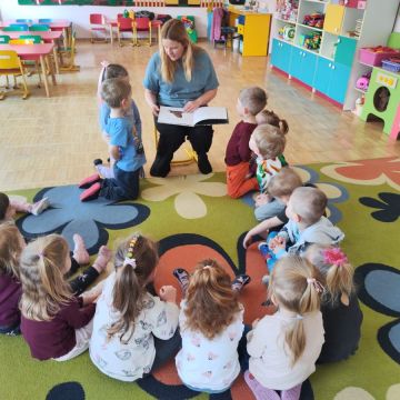 Dnia 9 kwietnia 2025r. dzieci z grupy Biedronek odwiedziła mama Elenki - pani Ewelina, która włączyła się w akcję "Cała Polska czyta dzieciom". Mama ...