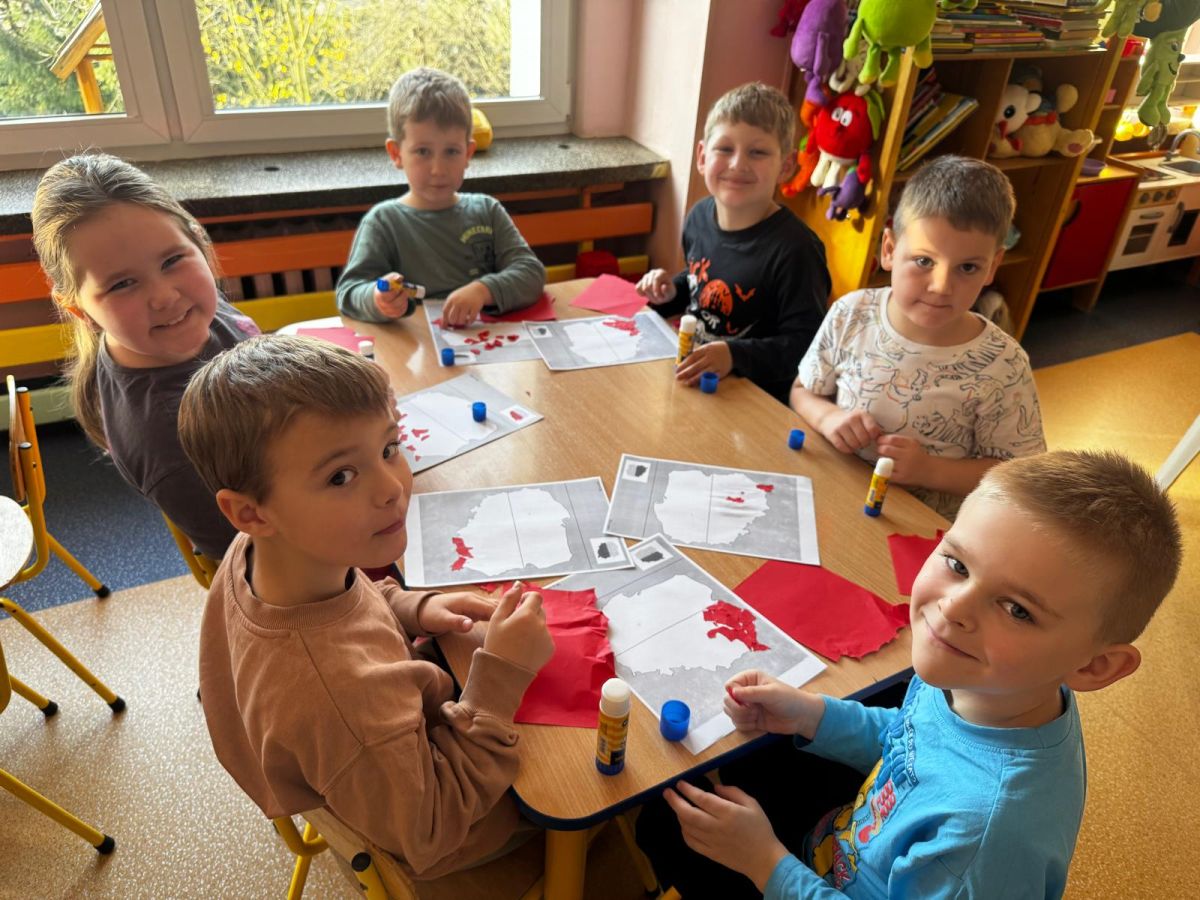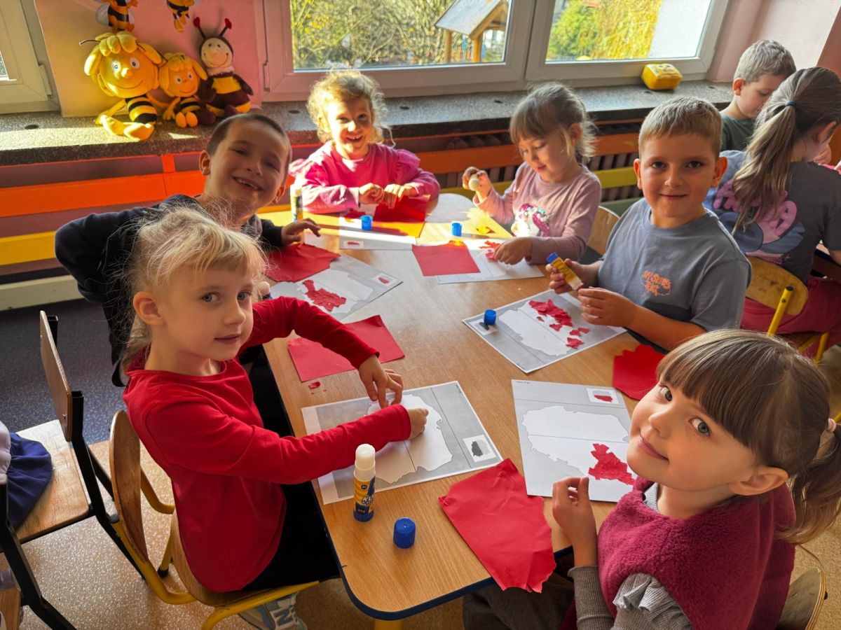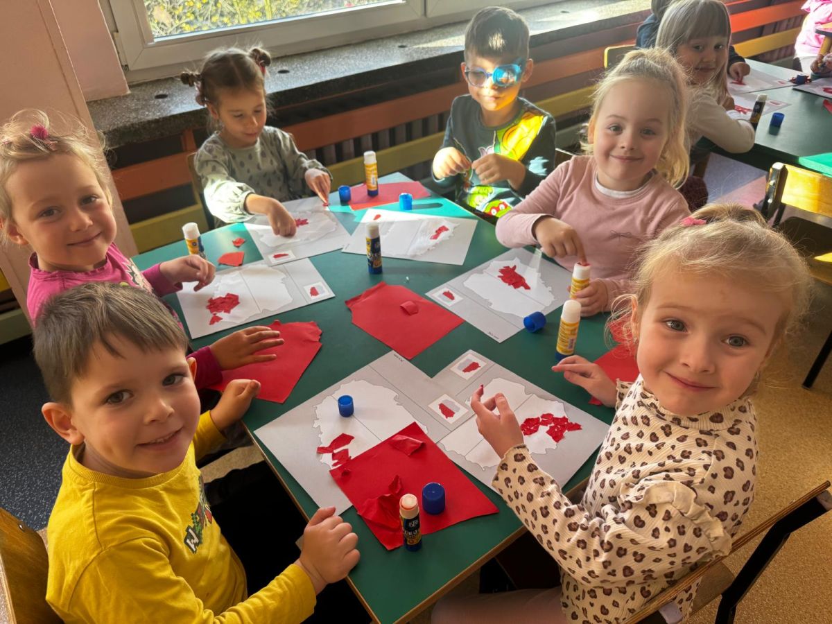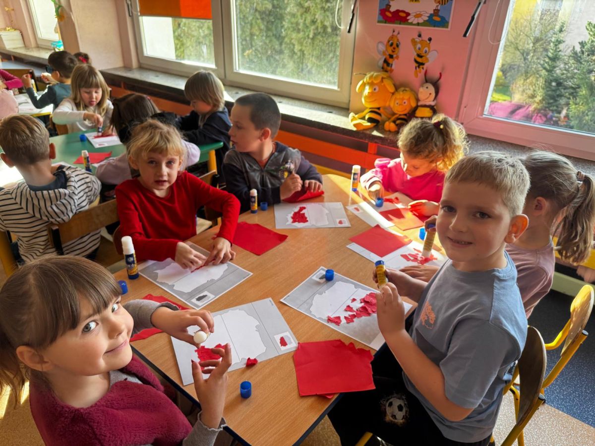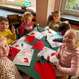 Przedszkolaki z grupy Pszczółek zrealizowały kolejne zadania z Ogólnopolskiego Projektu Edukacyjnego "Postaw na wartości". Tym razem zrealizowały zadania z kręgu pierwszego "Postaw na patriotyzm":