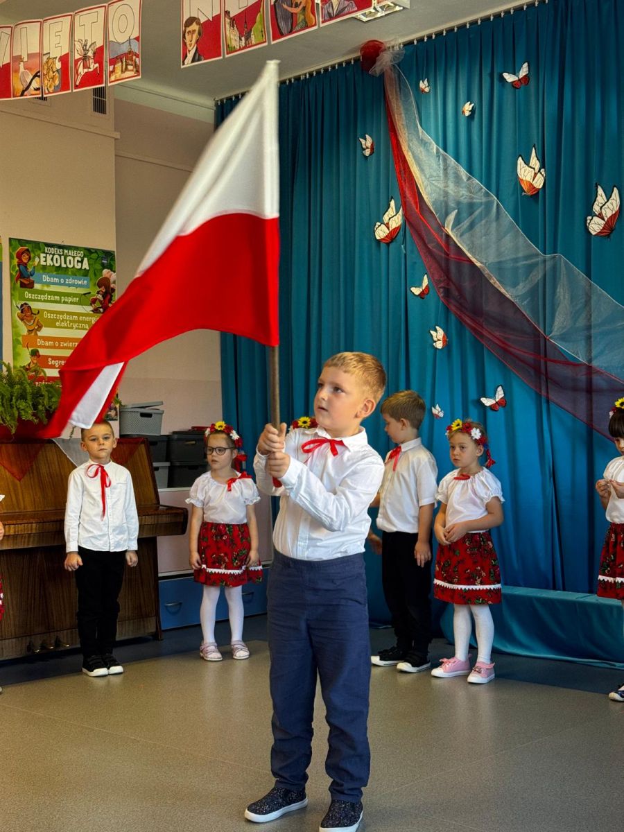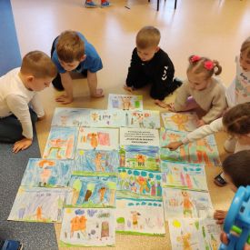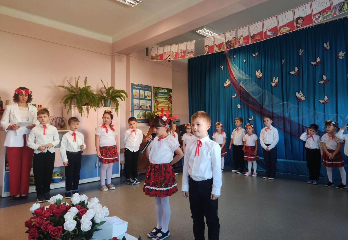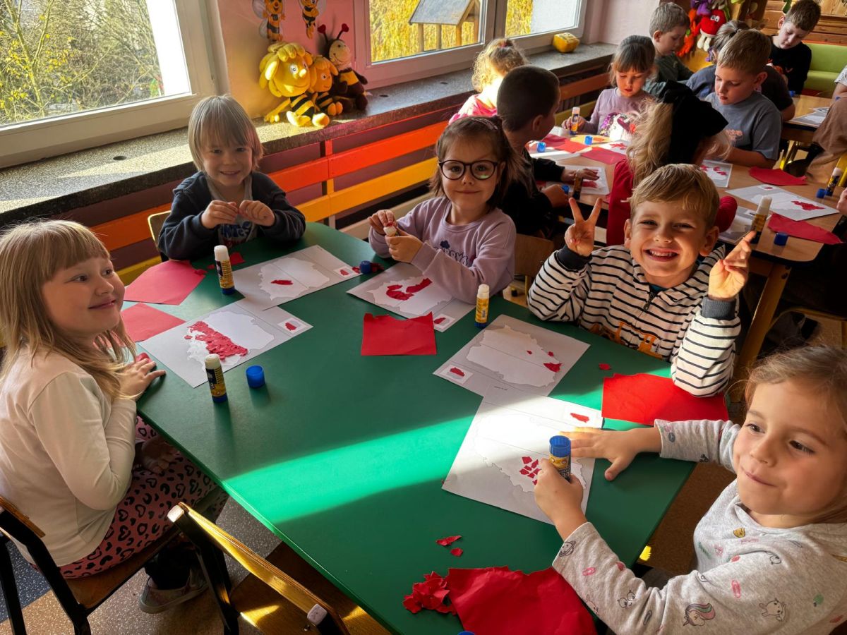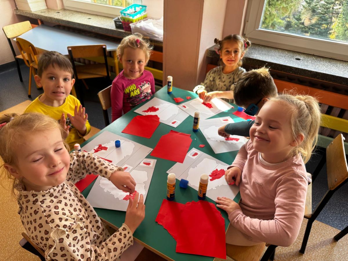 Przedszkolaki z grupy Pszczółek zrealizowały kolejne zadania z Ogólnopolskiego Projektu Edukacyjnego "Postaw na wartości". Tym razem zrealizowały zadania z kręgu pierwszego "Postaw na patriotyzm":