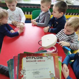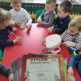 Na zakończenie spotkania wszystkie dzieci otrzymały od pani dentystki dyplom za udział w zajęciach profilaktycznych.