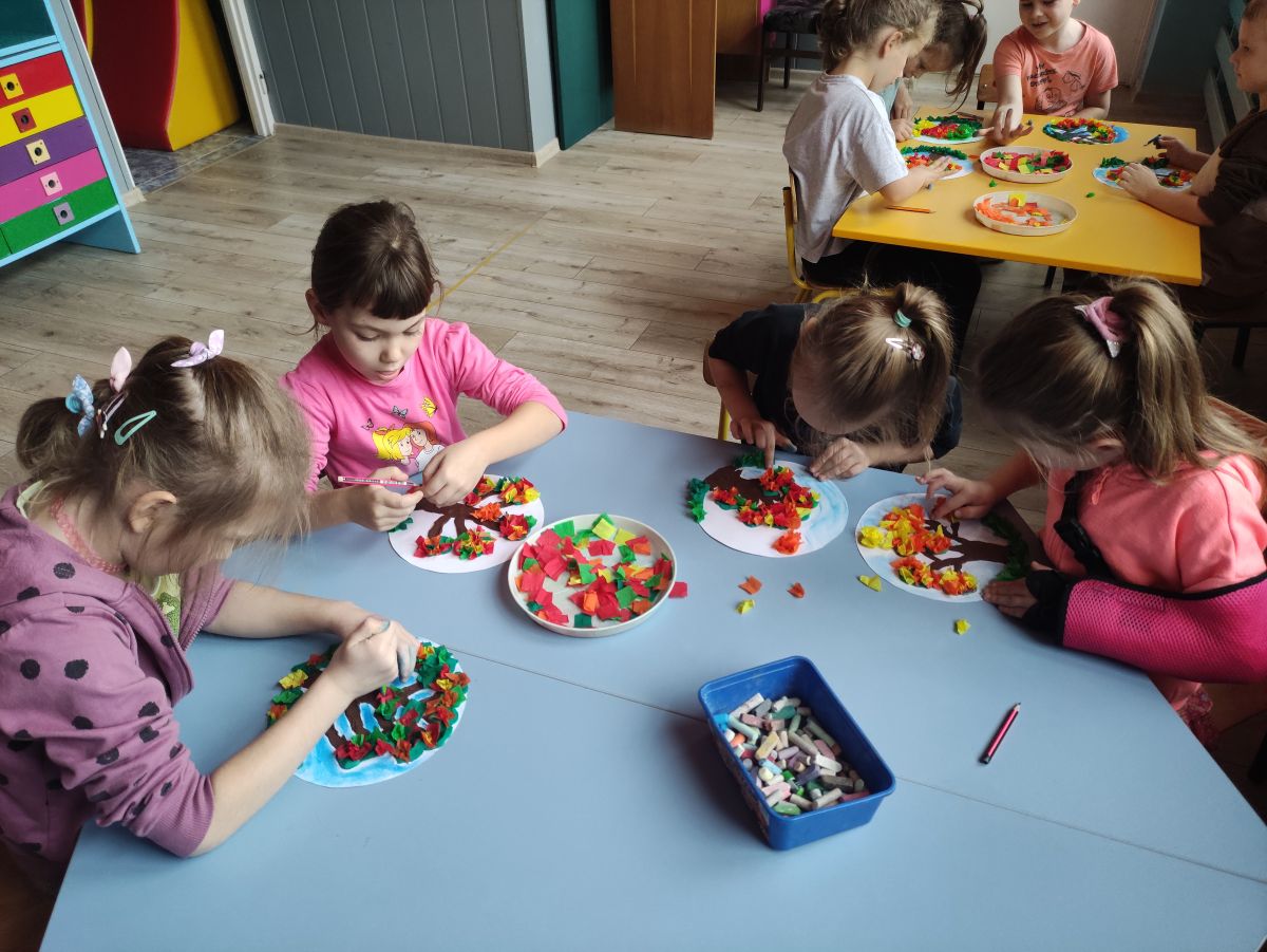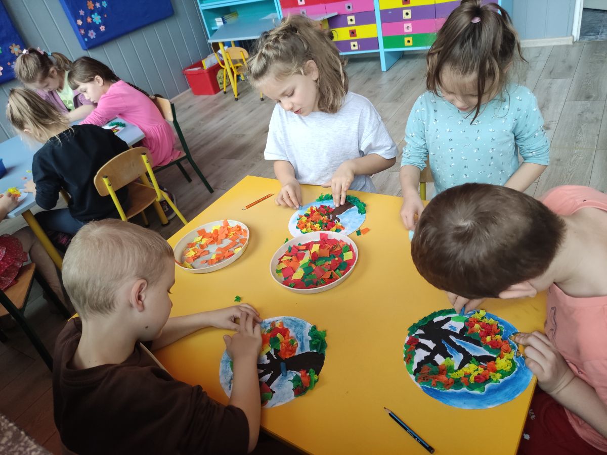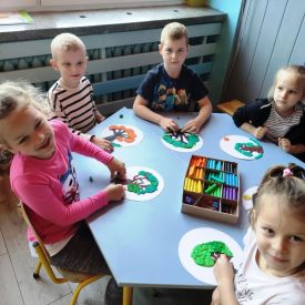 Na zajęcia uczęszcza 8 dzieci. Podczas zajęć dzieci poznają nowe techniki plastyczne. Wykonane prace są systematycznie prezentowane na tablicy w holu przedszkola a także na stronie internetowej. Dzieci bardzo chętnie uczestniczą w zajęciach i dużym zaangażowaniem wykonują prace.