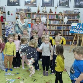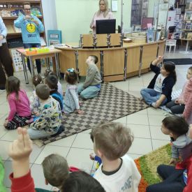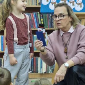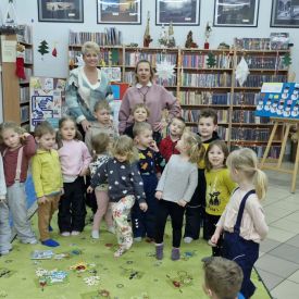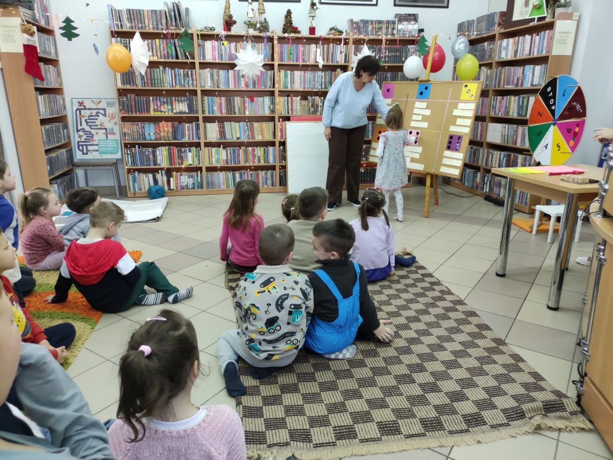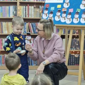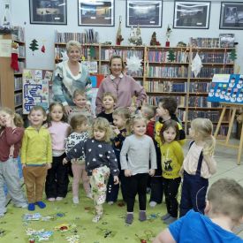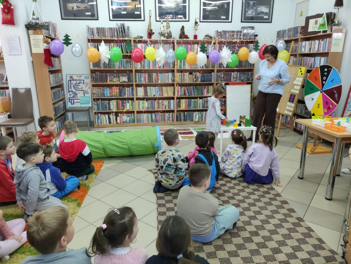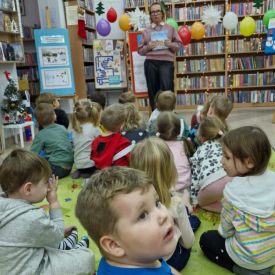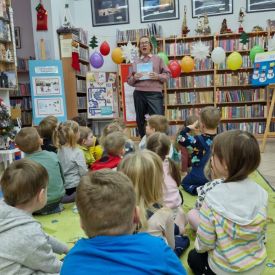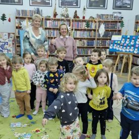 Mimo mroźnej, zimowej aury, dzieci z naszego przedszkola z przyjemnością odwiedziły podczas dyżuru feryjnego Miejską Bibliotekę Publiczną Filia nr 2 im. Jerzego Pilcha na osiedlu Podkarczówka w Kielcach. Przedszkolaki podczas wizyty miały możliwość poznać wielu bohaterów opowiadań oraz pooglądać książeczki w ramach projektu Mała Książka – Wielki Człowiek. Spotkania z „książką” dają dzieciom wiele radosnych przeżyć. Oprócz wspólnego czytania bajek i opowiadań dzieci biorą udział w ciekawych zajęciach związanych z tematyką wybranej bajki oraz aktualną porą roku. Dzięki tym zajęciom dzieci mogą wspólnie przeżywać przygody różnych bohaterów, uczyć się nowych pozytywnych emocji, rozwiązywać zagadki, a także cieszyć się wspólną pracą. Serdecznie dziękujemy.