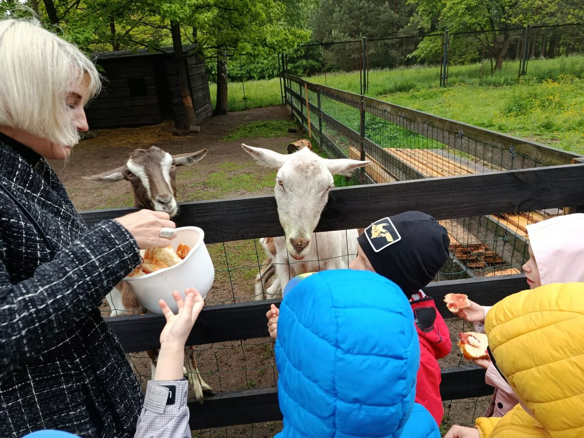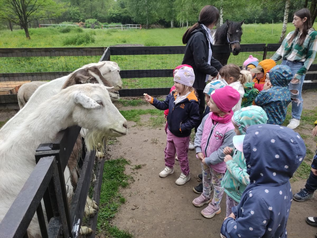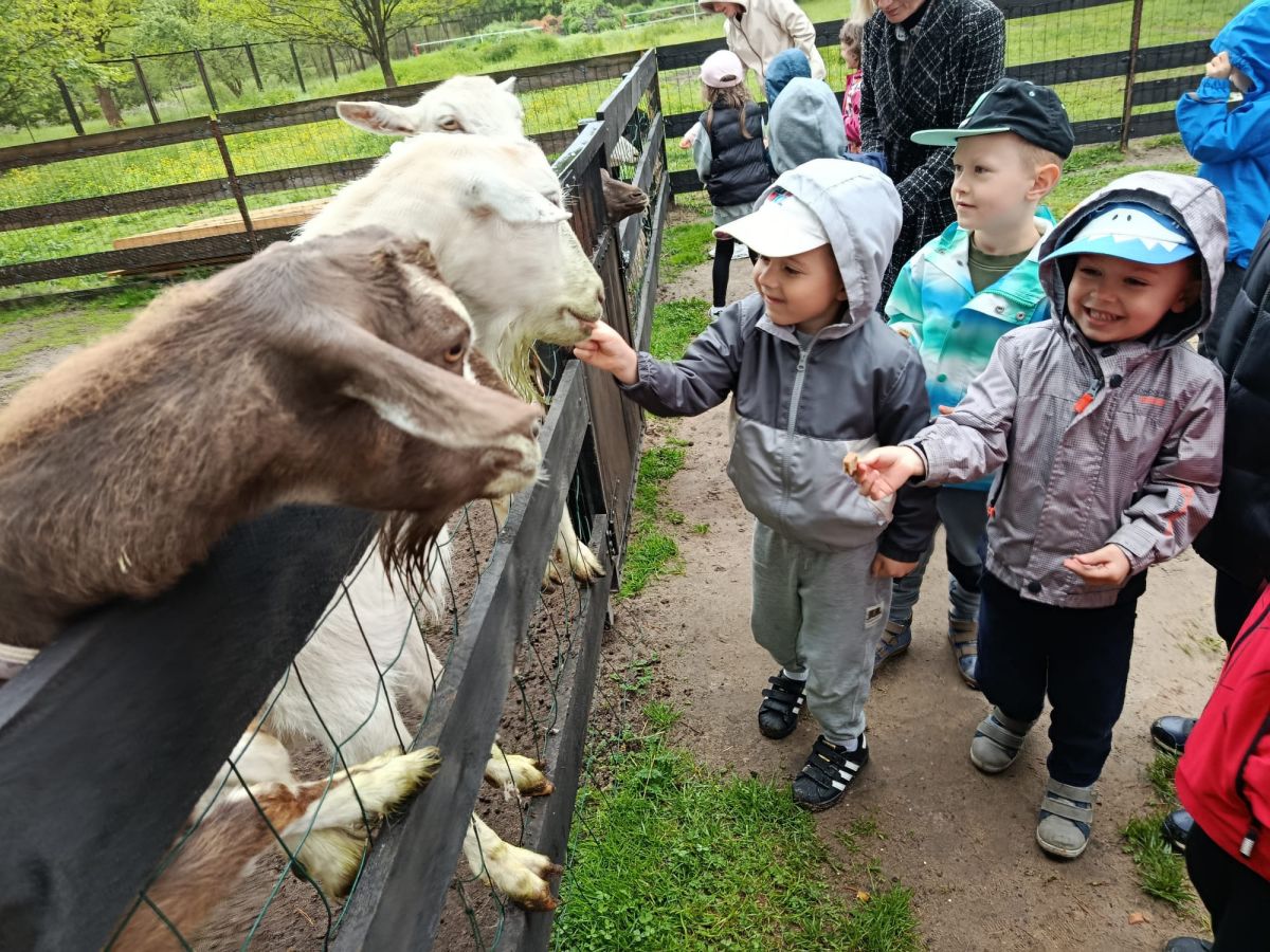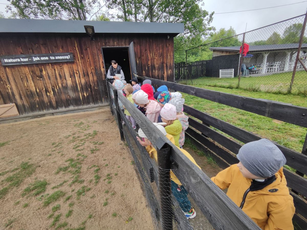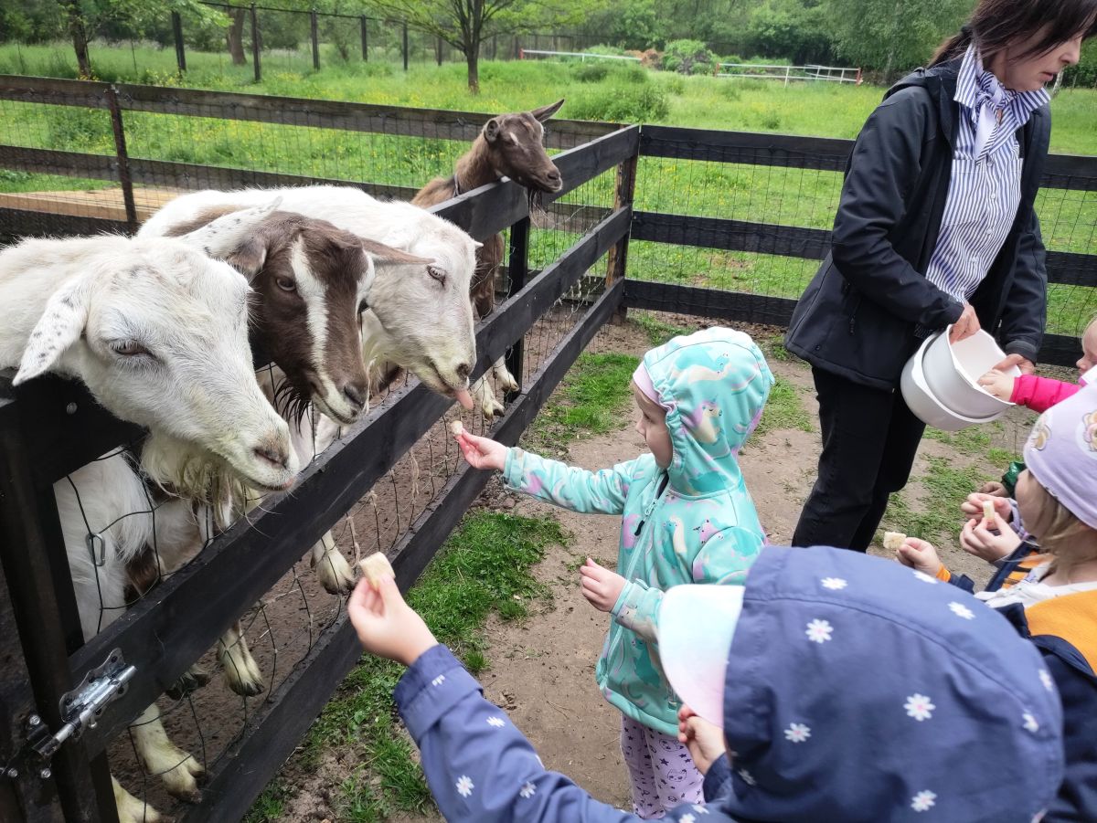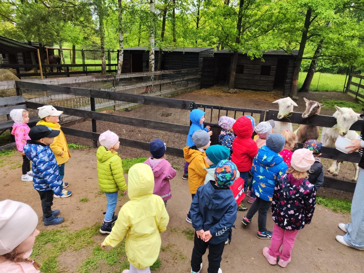 29 maja dzieci z grupy Biedronek, Żabek oraz Motylków wzięły udział w wycieczce do Zagrody Edukacyjnej Wieś. Co w Skarżysku-Kamiennej. Już sama jazda autokarem, to dla dzieci ogromna frajda. Mimo niesprzyjającej pogody wycieczka była bardzo udana i pełna atrakcji. Przedszkolaki zostały powitane przez gospodarzy pysznym drugim śniadaniem w postaci świeżutkiej chałki z dżemem truskawkowym oraz napojami. Następnie dzieci zostały zaproszone na zwiedzanie zagrody, karmienie kóz, kucyków, koni. Niektóre dzieci pierwszy raz w życiu widziały na żywo kury, kaczki, indyki, perliczki, gęsi czy króliki, które zrobiły największe wrażenie. Punktem kulminacyjnym wycieczki było wykonanie własnego lasu w słoiku, który każde dziecko zabrało do domu.