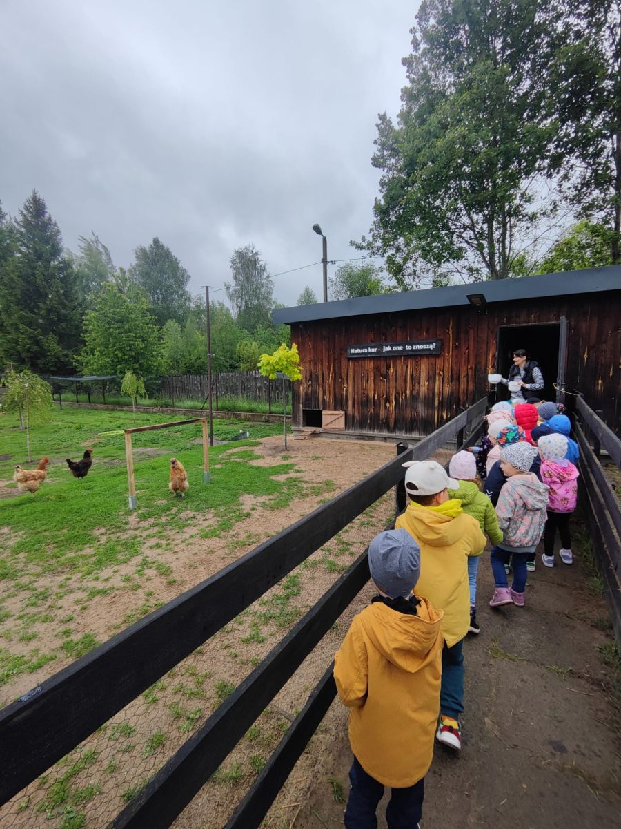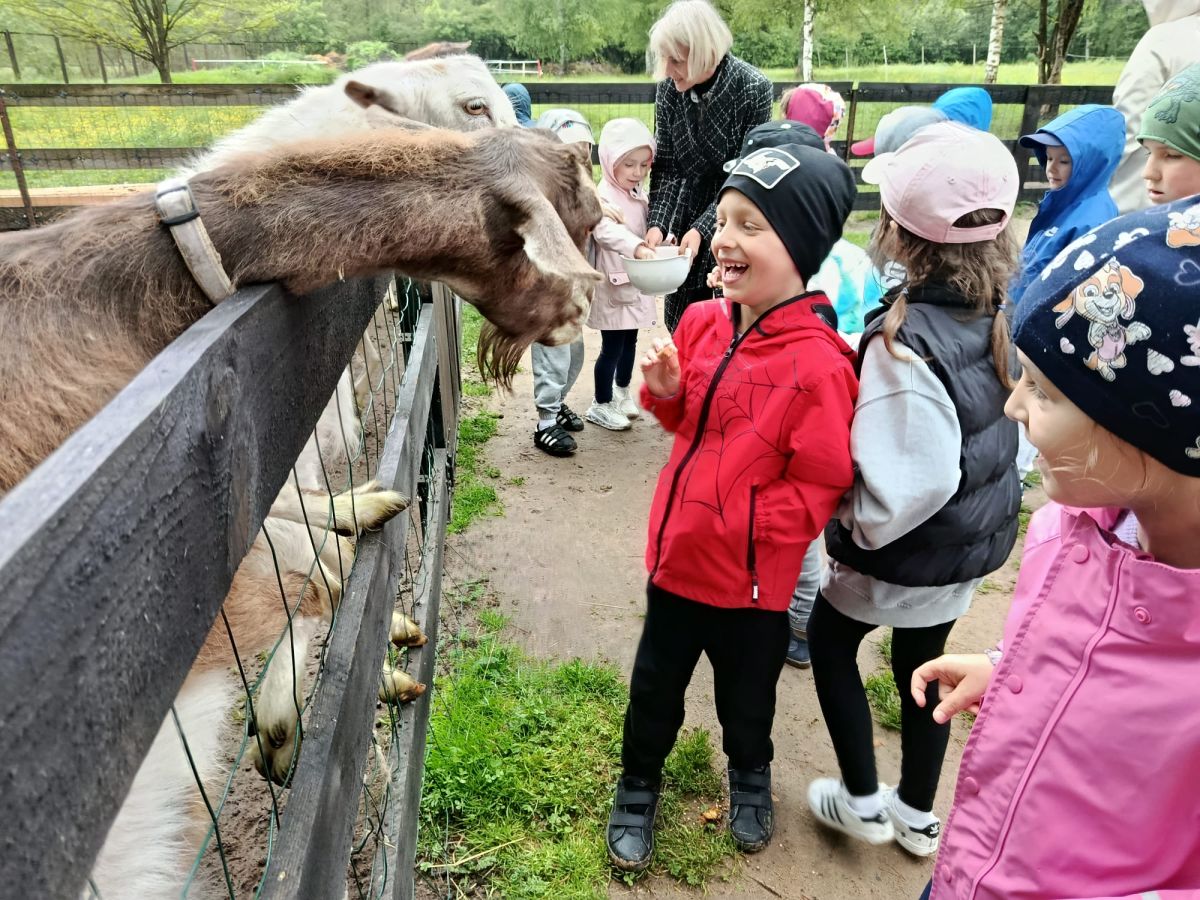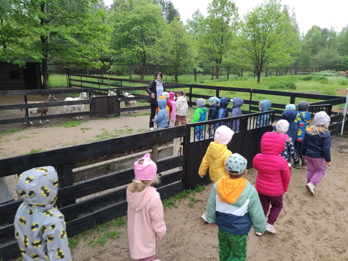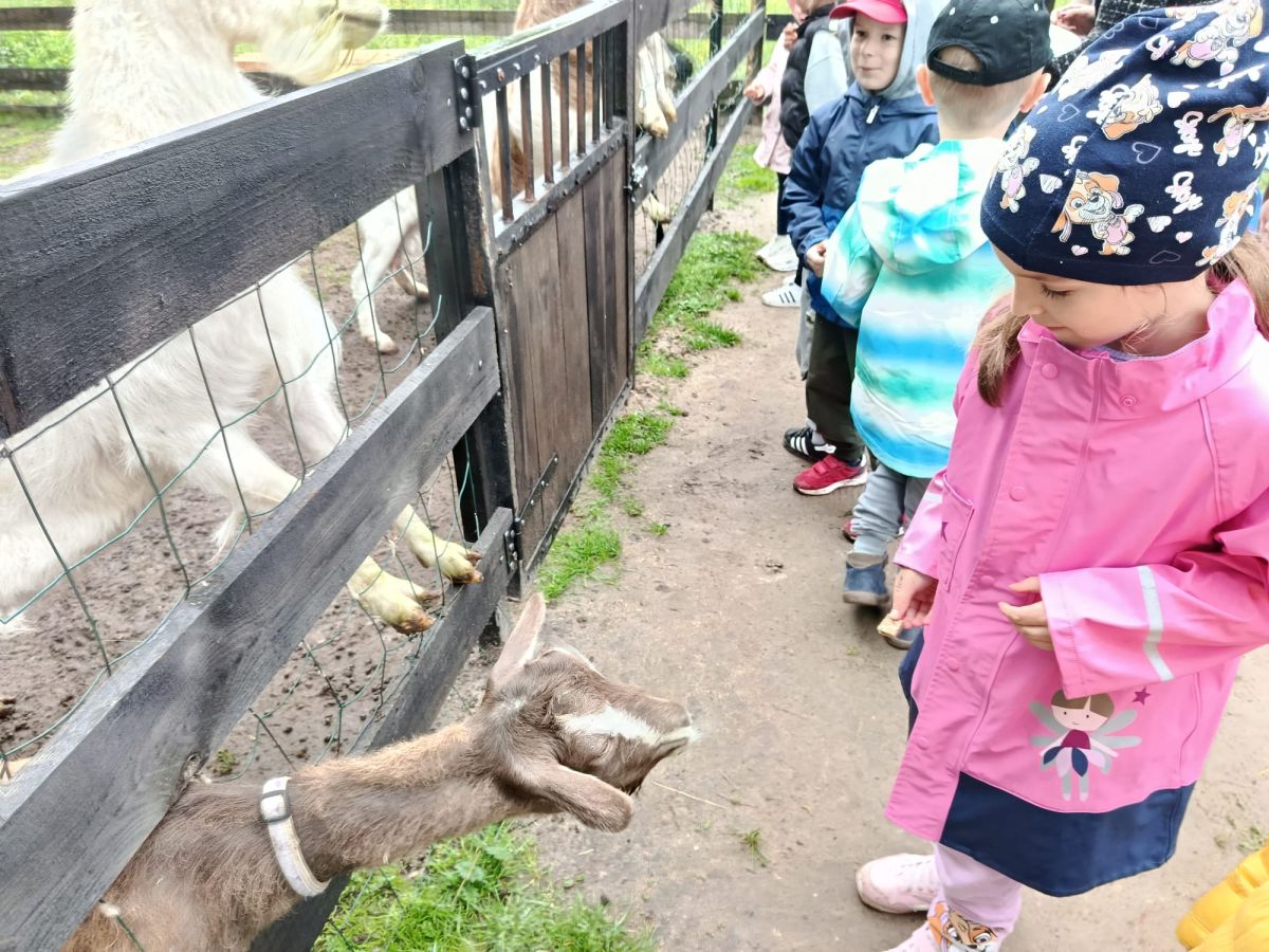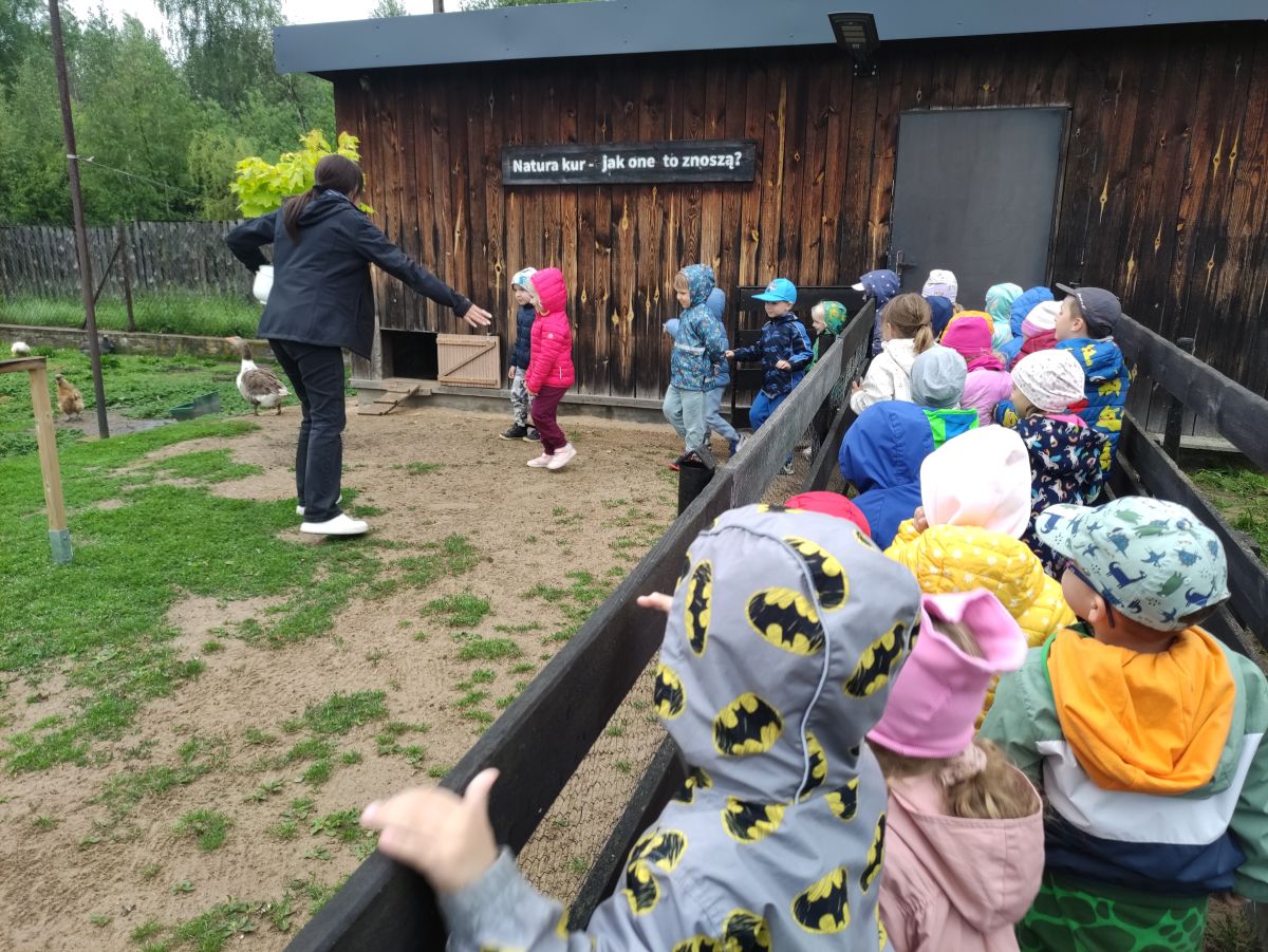 29 maja dzieci z grupy Biedronek, Żabek oraz Motylków wzięły udział w wycieczce do Zagrody Edukacyjnej Wieś. Co w Skarżysku-Kamiennej. Już sama jazda autokarem, to dla dzieci ogromna frajda. Mimo niesprzyjającej pogody wycieczka była bardzo udana i pełna atrakcji. Przedszkolaki zostały powitane przez gospodarzy pysznym drugim śniadaniem w postaci świeżutkiej chałki z dżemem truskawkowym oraz napojami. Następnie dzieci zostały zaproszone na zwiedzanie zagrody, karmienie kóz, kucyków, koni. Niektóre dzieci pierwszy raz w życiu widziały na żywo kury, kaczki, indyki, perliczki, gęsi czy króliki, które zrobiły największe wrażenie. Punktem kulminacyjnym wycieczki było wykonanie własnego lasu w słoiku, który każde dziecko zabrało do domu.