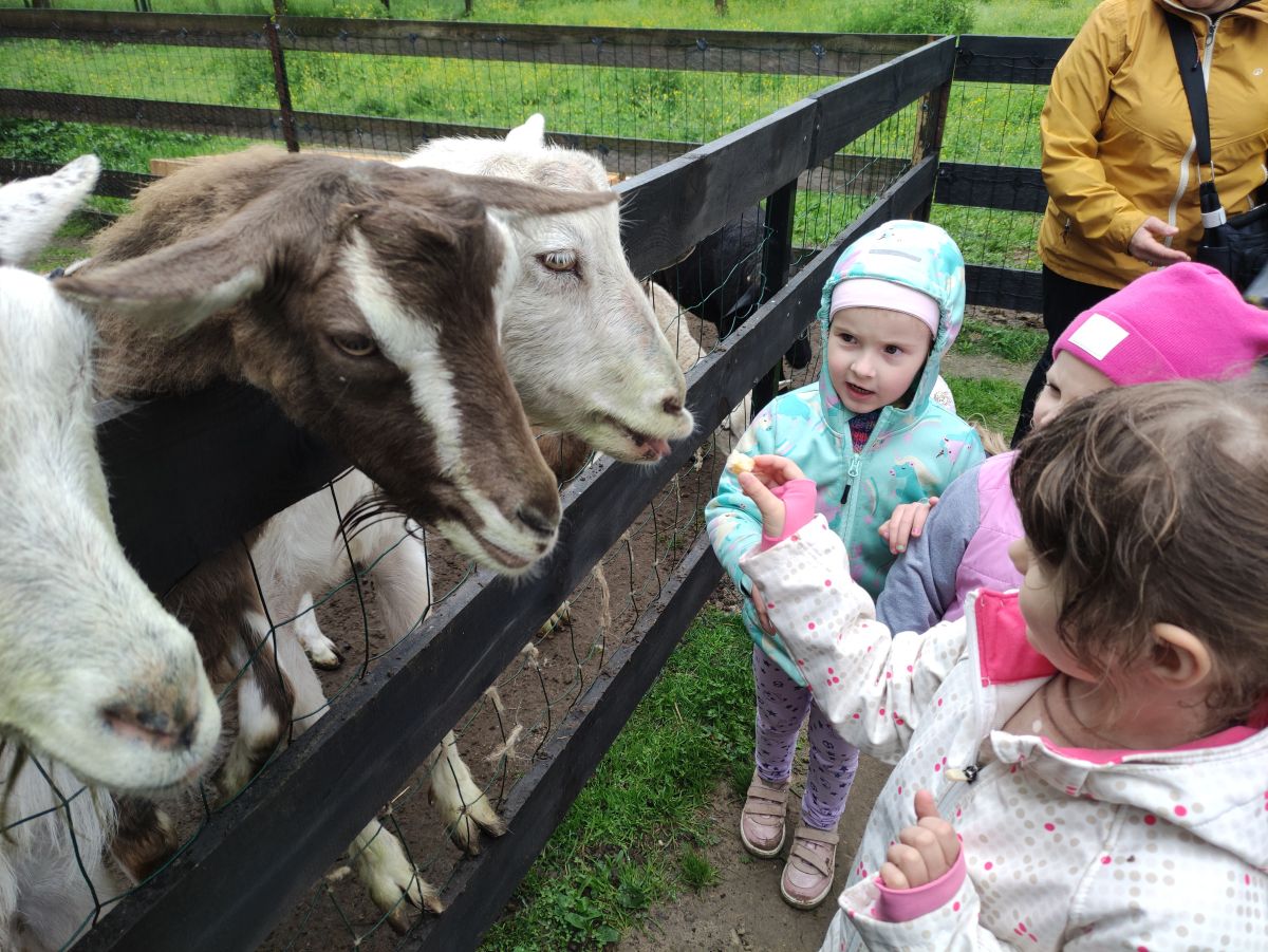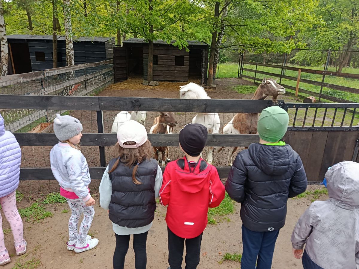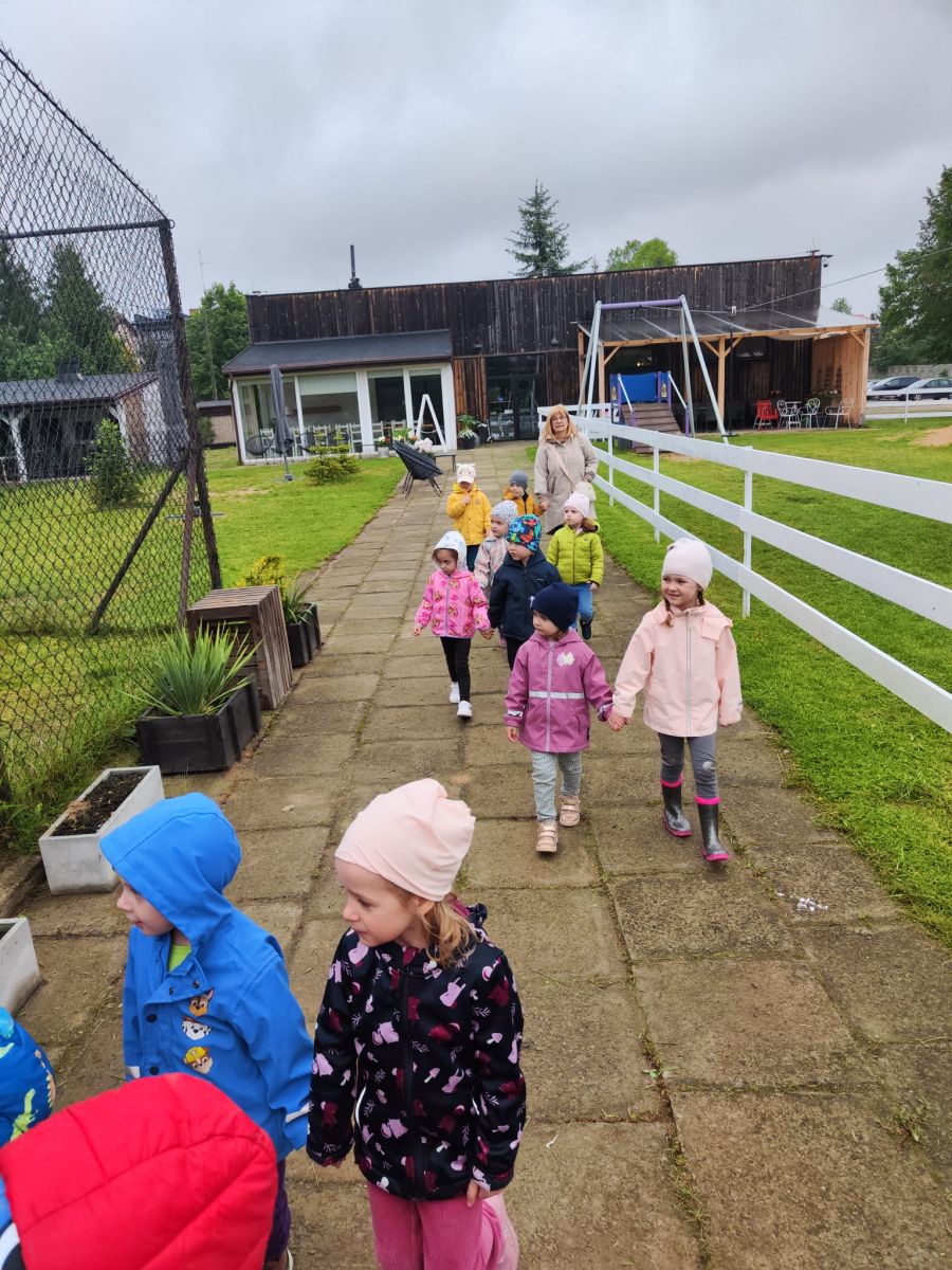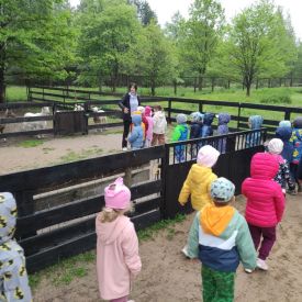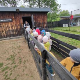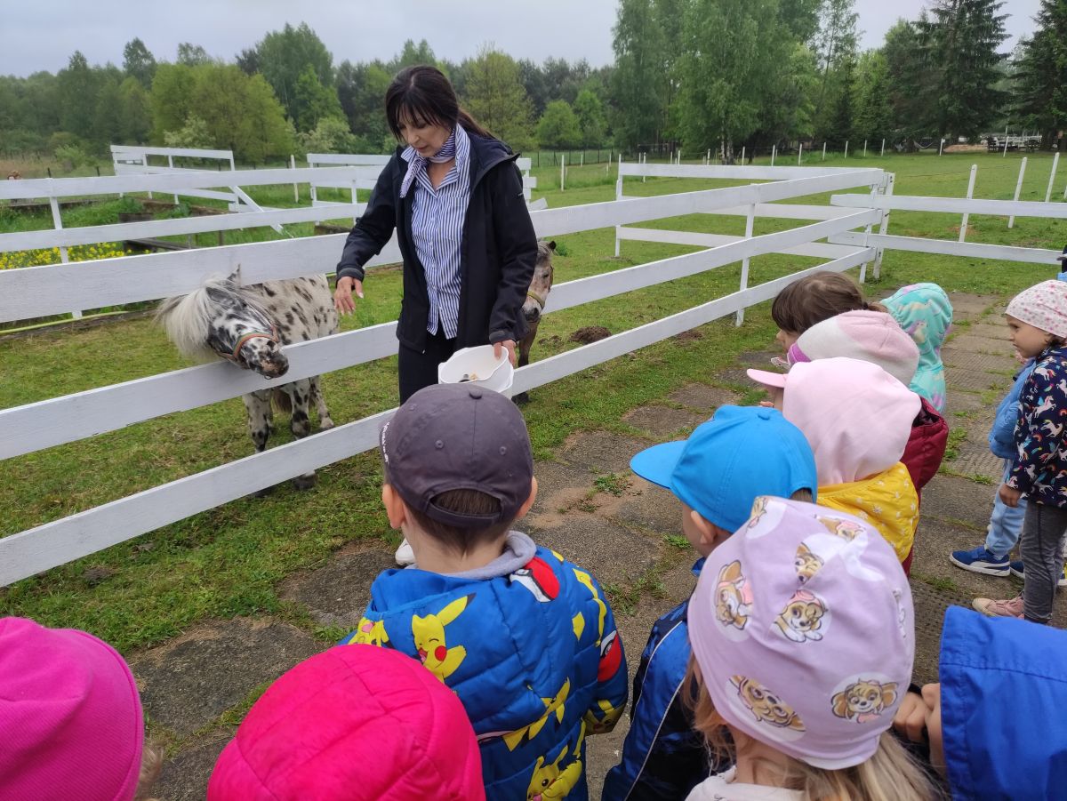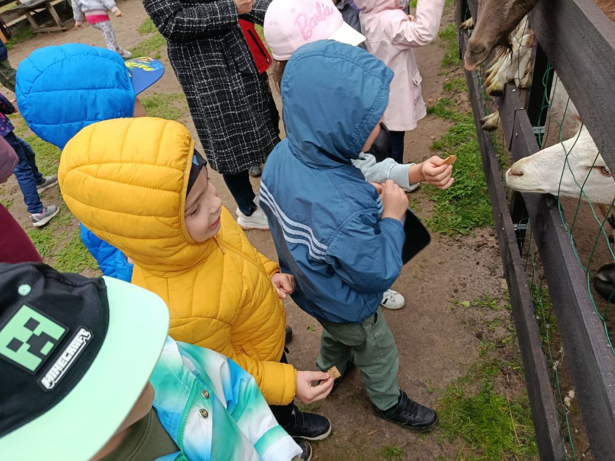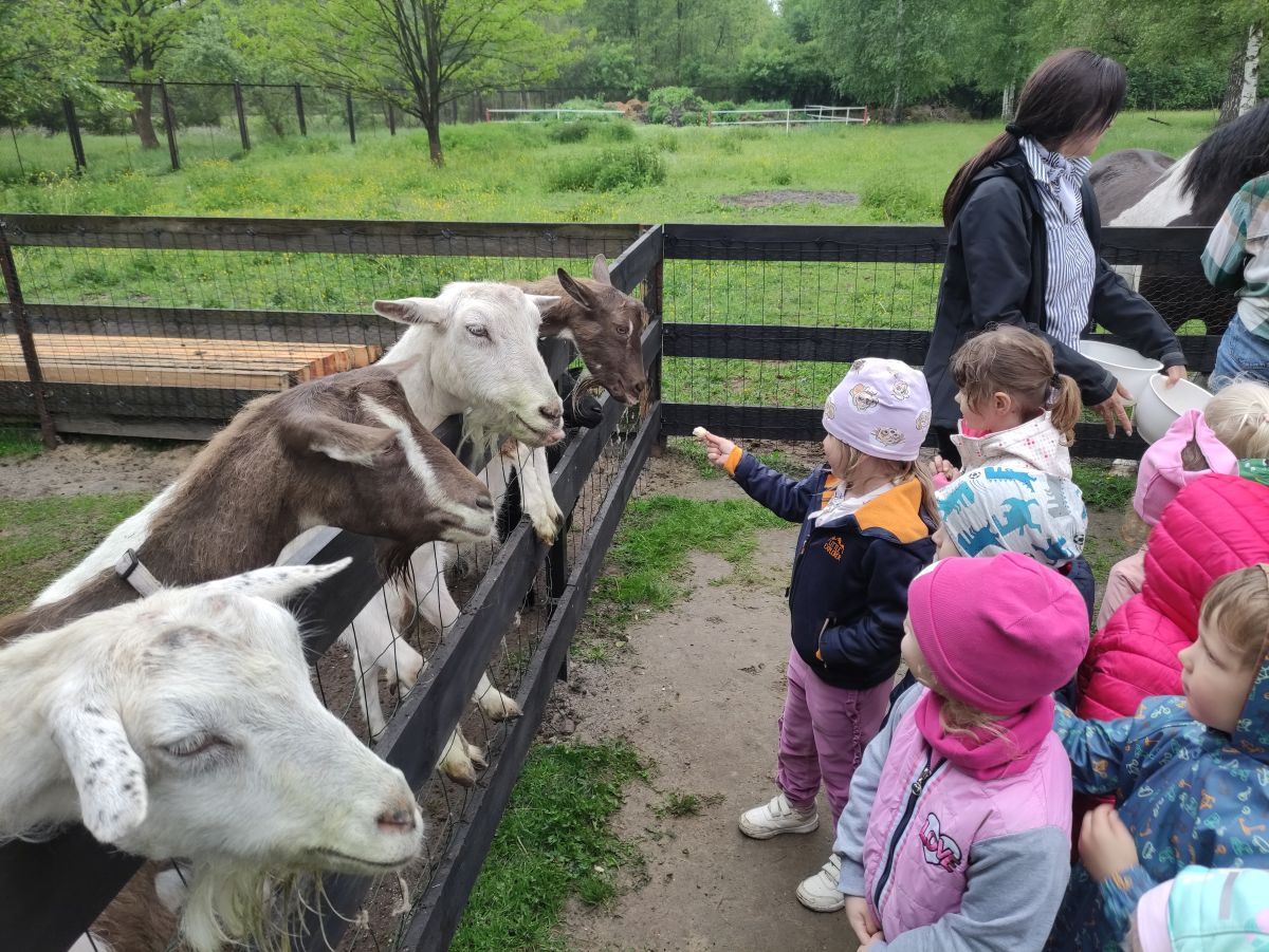 29 maja dzieci z grupy Biedronek, Żabek oraz Motylków wzięły udział w wycieczce do Zagrody Edukacyjnej Wieś. Co w Skarżysku-Kamiennej. Już sama jazda autokarem, to dla dzieci ogromna frajda. Mimo niesprzyjającej pogody wycieczka była bardzo udana i pełna atrakcji. Przedszkolaki zostały powitane przez gospodarzy pysznym drugim śniadaniem w postaci świeżutkiej chałki z dżemem truskawkowym oraz napojami. Następnie dzieci zostały zaproszone na zwiedzanie zagrody, karmienie kóz, kucyków, koni. Niektóre dzieci pierwszy raz w życiu widziały na żywo kury, kaczki, indyki, perliczki, gęsi czy króliki, które zrobiły największe wrażenie. Punktem kulminacyjnym wycieczki było wykonanie własnego lasu w słoiku, który każde dziecko zabrało do domu.