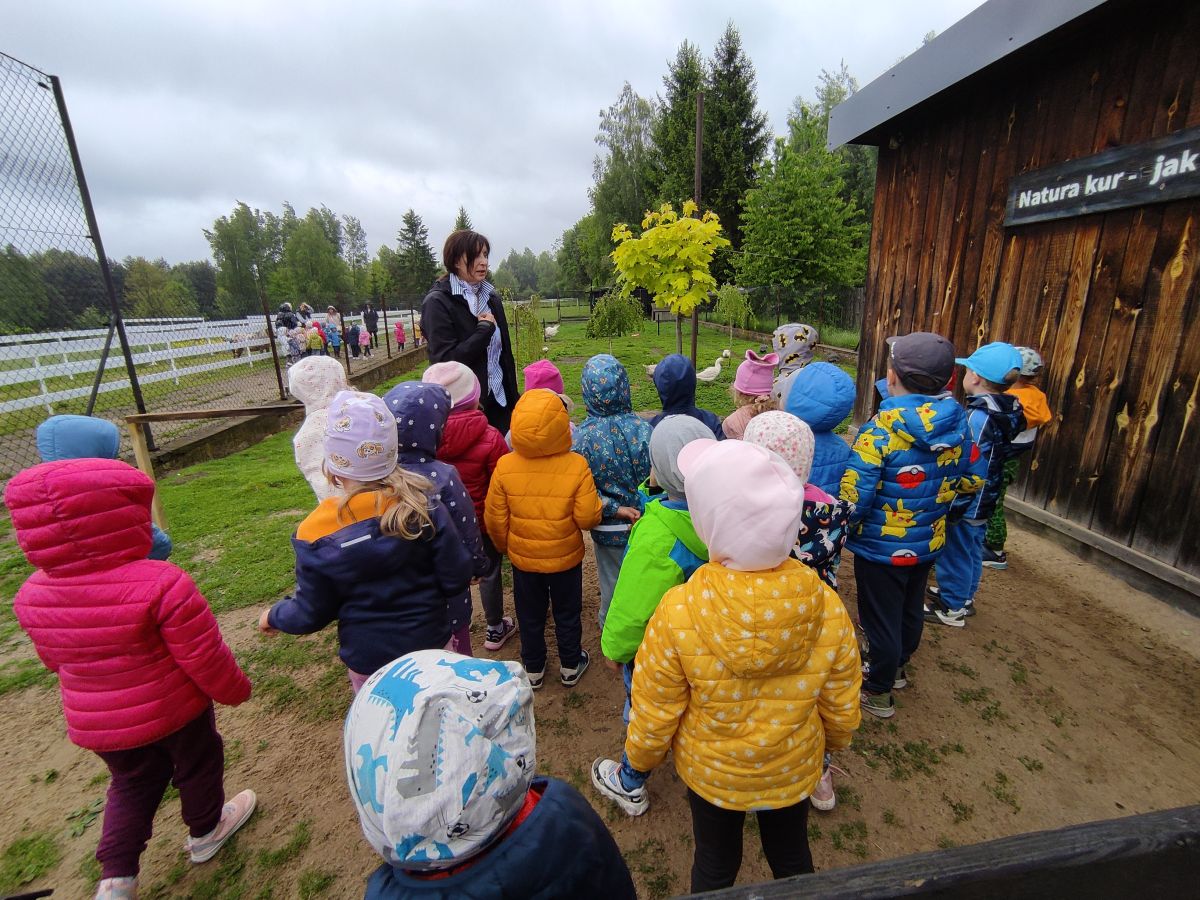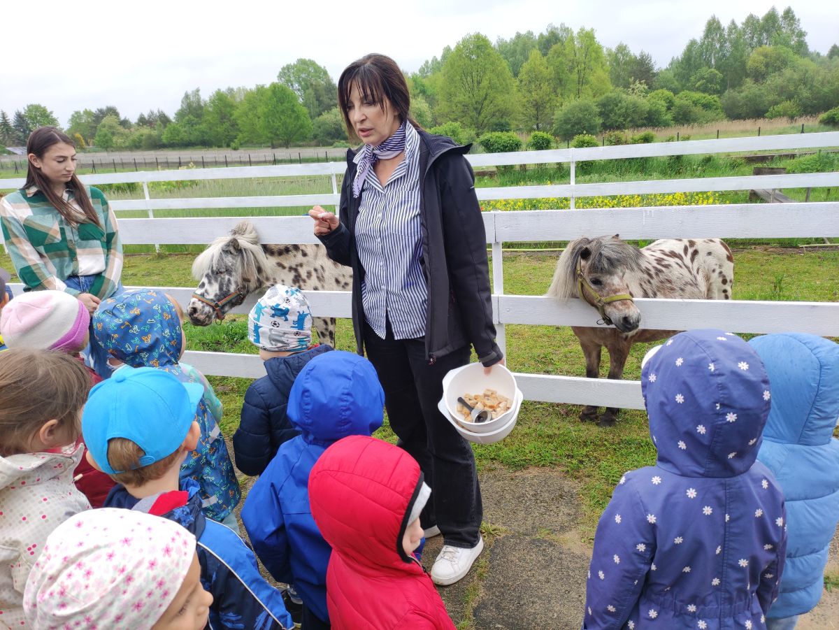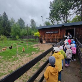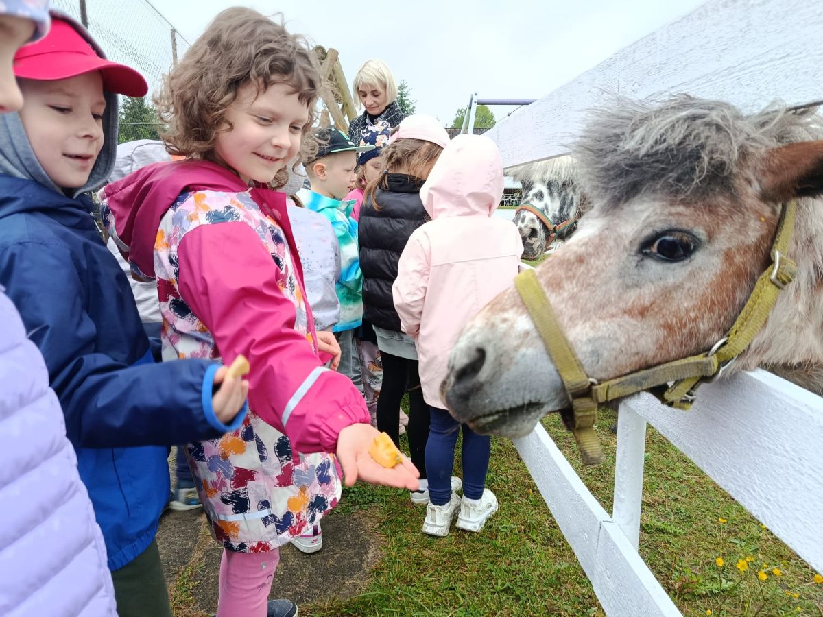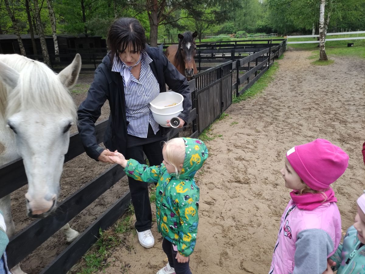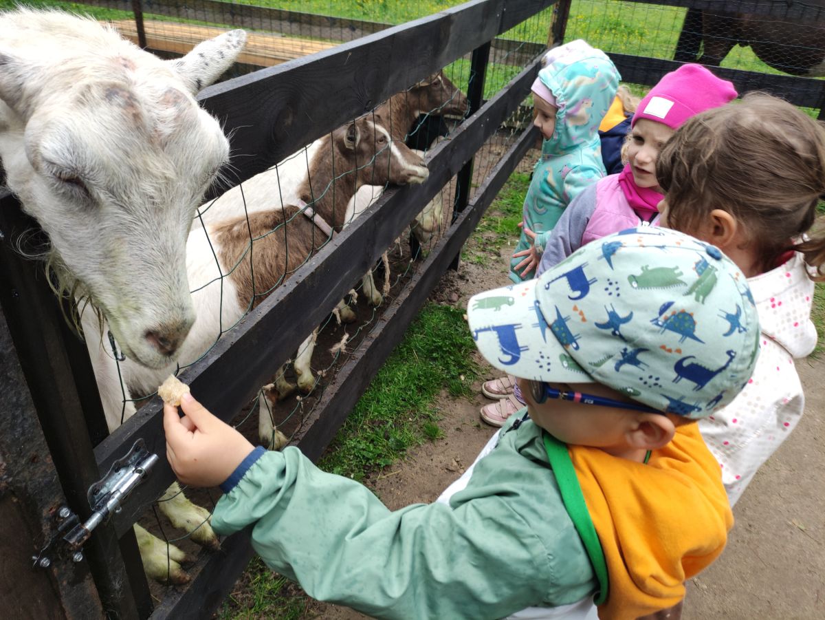 29 maja dzieci z grupy Biedronek, Żabek oraz Motylków wzięły udział w wycieczce do Zagrody Edukacyjnej Wieś. Co w Skarżysku-Kamiennej. Już sama jazda autokarem, to dla dzieci ogromna frajda. Mimo niesprzyjającej pogody wycieczka była bardzo udana i pełna atrakcji. Przedszkolaki zostały powitane przez gospodarzy pysznym drugim śniadaniem w postaci świeżutkiej chałki z dżemem truskawkowym oraz napojami. Następnie dzieci zostały zaproszone na zwiedzanie zagrody, karmienie kóz, kucyków, koni. Niektóre dzieci pierwszy raz w życiu widziały na żywo kury, kaczki, indyki, perliczki, gęsi czy króliki, które zrobiły największe wrażenie. Punktem kulminacyjnym wycieczki było wykonanie własnego lasu w słoiku, który każde dziecko zabrało do domu.