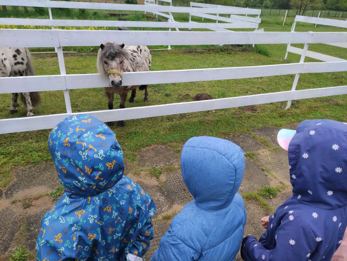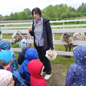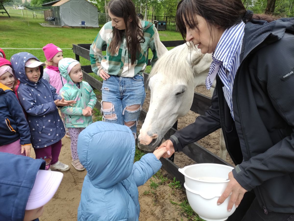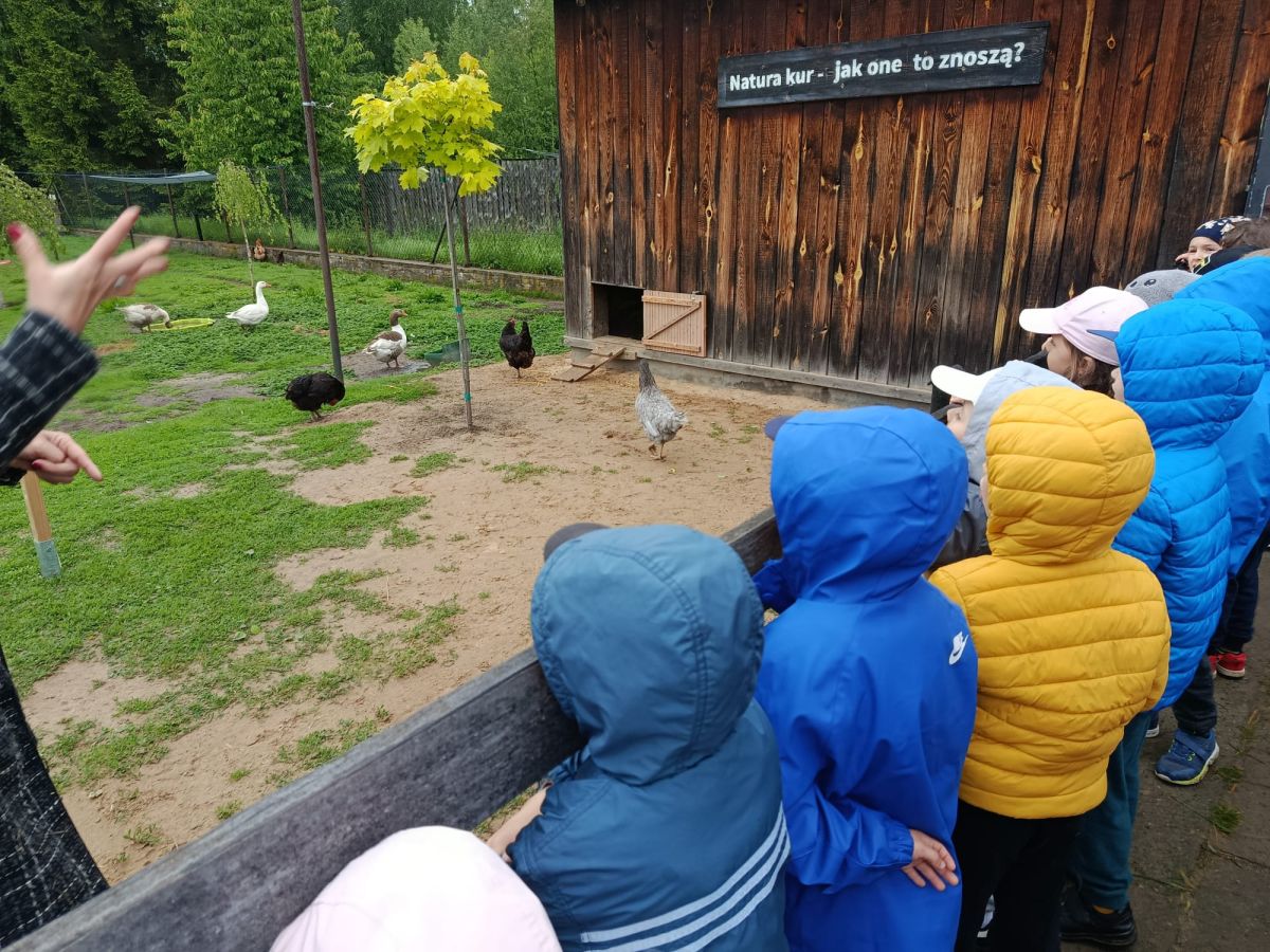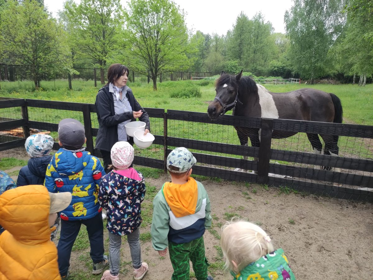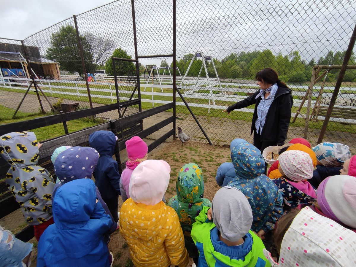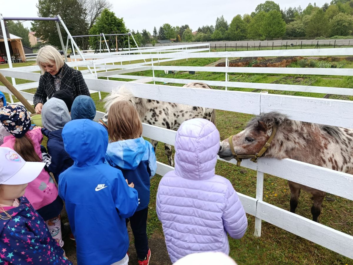 29 maja dzieci z grupy Biedronek, Żabek oraz Motylków wzięły udział w wycieczce do Zagrody Edukacyjnej Wieś. Co w Skarżysku-Kamiennej. Już sama jazda autokarem, to dla dzieci ogromna frajda. Mimo niesprzyjającej pogody wycieczka była bardzo udana i pełna atrakcji. Przedszkolaki zostały powitane przez gospodarzy pysznym drugim śniadaniem w postaci świeżutkiej chałki z dżemem truskawkowym oraz napojami. Następnie dzieci zostały zaproszone na zwiedzanie zagrody, karmienie kóz, kucyków, koni. Niektóre dzieci pierwszy raz w życiu widziały na żywo kury, kaczki, indyki, perliczki, gęsi czy króliki, które zrobiły największe wrażenie. Punktem kulminacyjnym wycieczki było wykonanie własnego lasu w słoiku, który każde dziecko zabrało do domu.
