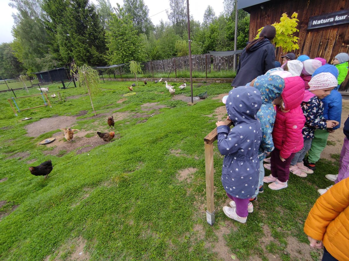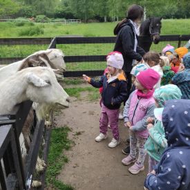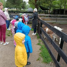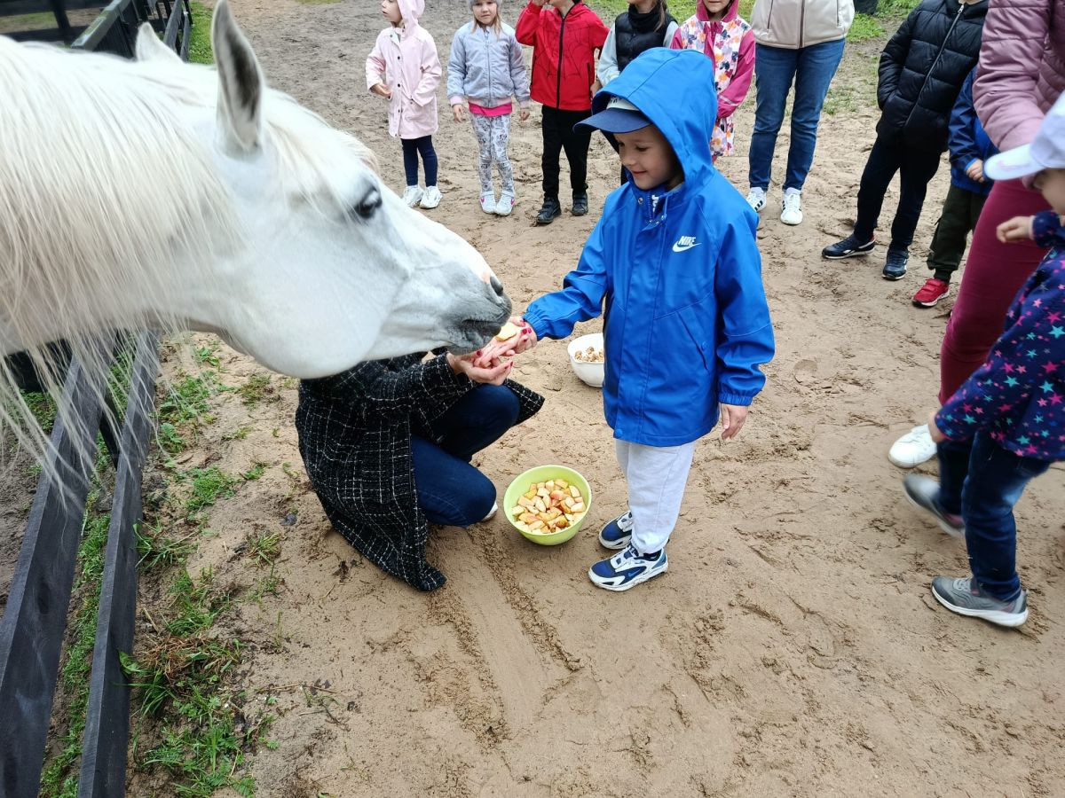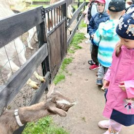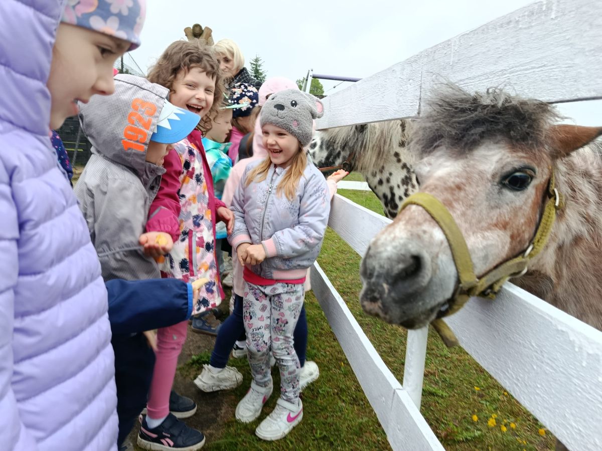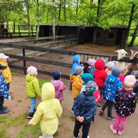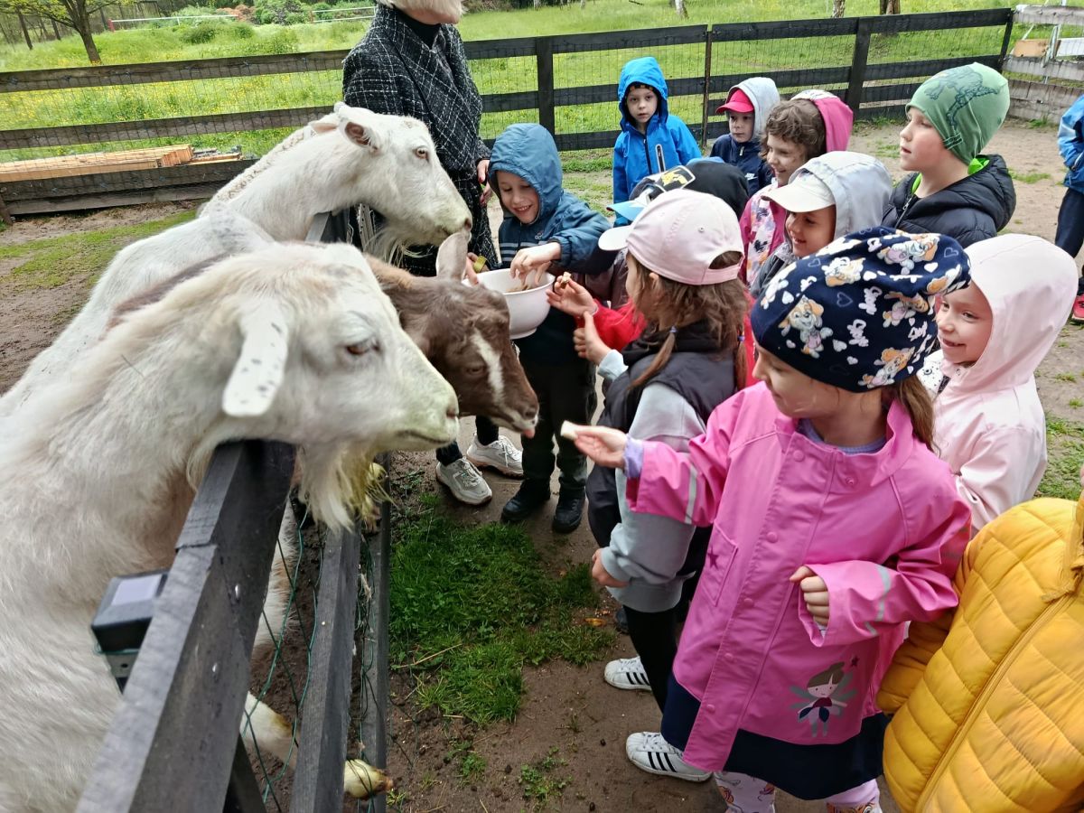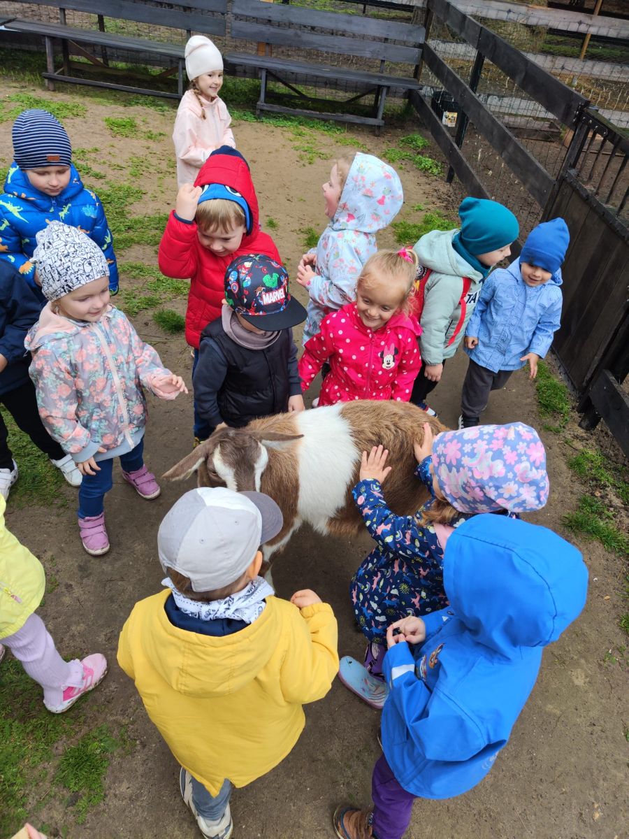 29 maja dzieci z grupy Biedronek, Żabek oraz Motylków wzięły udział w wycieczce do Zagrody Edukacyjnej Wieś. Co w Skarżysku-Kamiennej. Już sama jazda autokarem, to dla dzieci ogromna frajda. Mimo niesprzyjającej pogody wycieczka była bardzo udana i pełna atrakcji. Przedszkolaki zostały powitane przez gospodarzy pysznym drugim śniadaniem w postaci świeżutkiej chałki z dżemem truskawkowym oraz napojami. Następnie dzieci zostały zaproszone na zwiedzanie zagrody, karmienie kóz, kucyków, koni. Niektóre dzieci pierwszy raz w życiu widziały na żywo kury, kaczki, indyki, perliczki, gęsi czy króliki, które zrobiły największe wrażenie. Punktem kulminacyjnym wycieczki było wykonanie własnego lasu w słoiku, który każde dziecko zabrało do domu.
