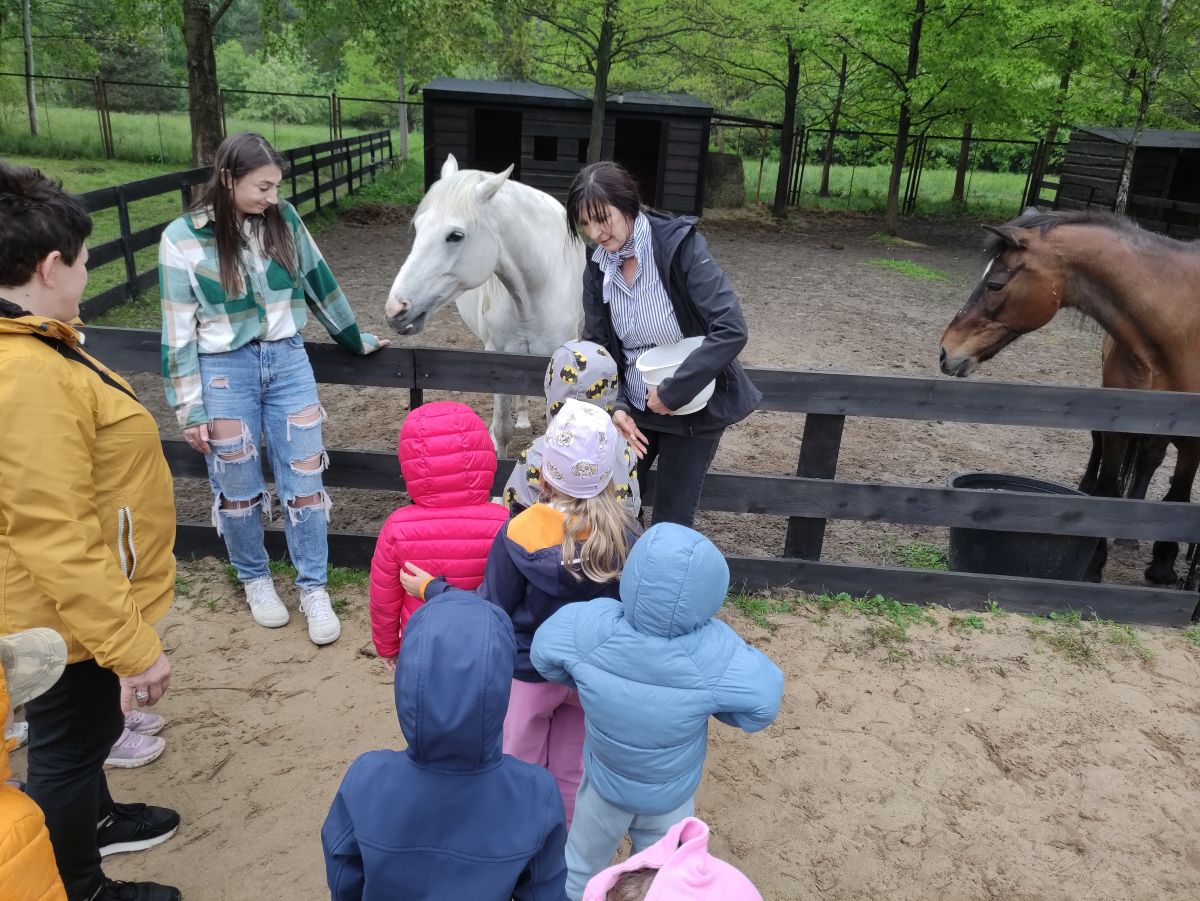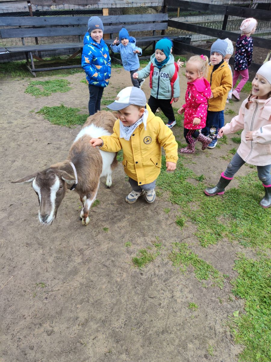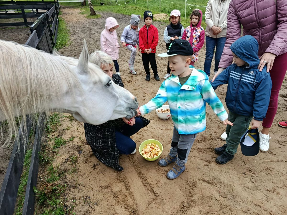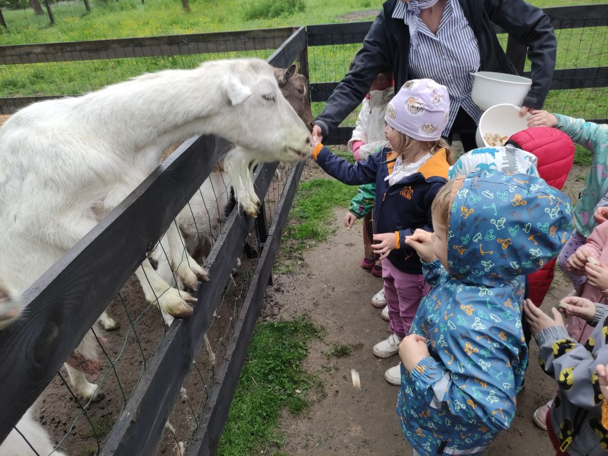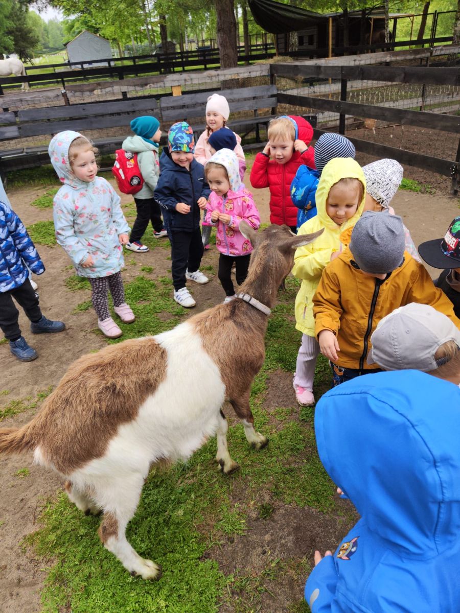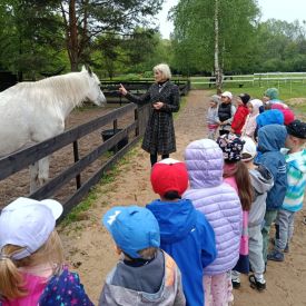 29 maja dzieci z grupy Biedronek, Żabek oraz Motylków wzięły udział w wycieczce do Zagrody Edukacyjnej Wieś. Co w Skarżysku-Kamiennej. Już sama jazda autokarem, to dla dzieci ogromna frajda. Mimo niesprzyjającej pogody wycieczka była bardzo udana i pełna atrakcji. Przedszkolaki zostały powitane przez gospodarzy pysznym drugim śniadaniem w postaci świeżutkiej chałki z dżemem truskawkowym oraz napojami. Następnie dzieci zostały zaproszone na zwiedzanie zagrody, karmienie kóz, kucyków, koni. Niektóre dzieci pierwszy raz w życiu widziały na żywo kury, kaczki, indyki, perliczki, gęsi czy króliki, które zrobiły największe wrażenie. Punktem kulminacyjnym wycieczki było wykonanie własnego lasu w słoiku, który każde dziecko zabrało do domu.