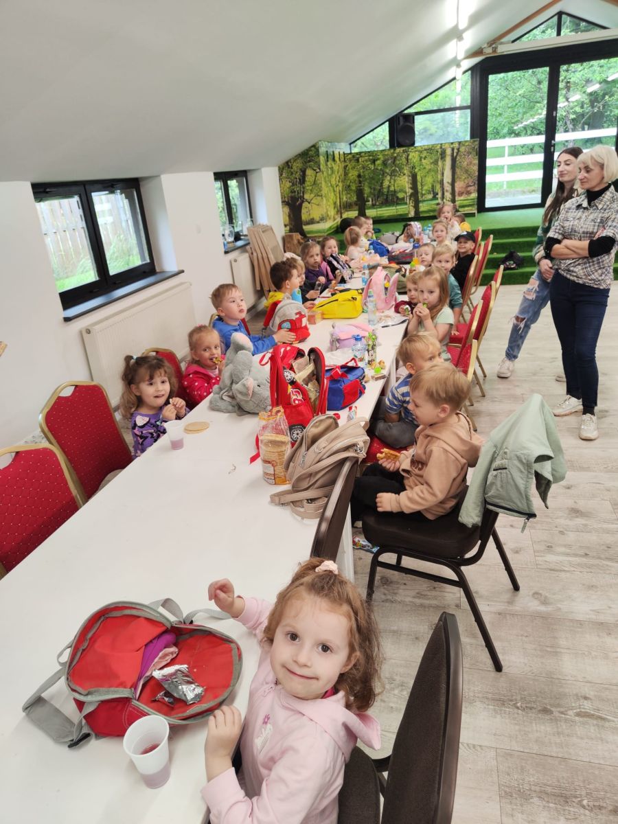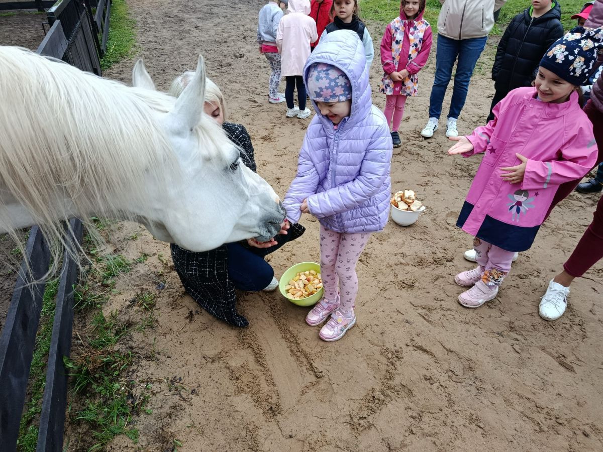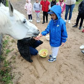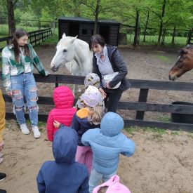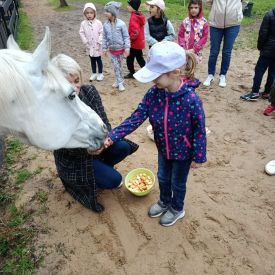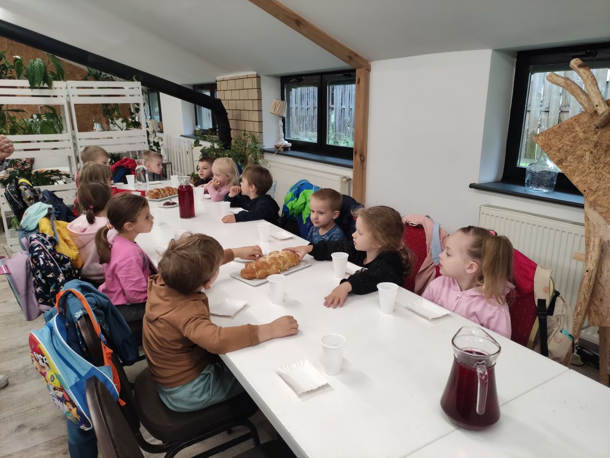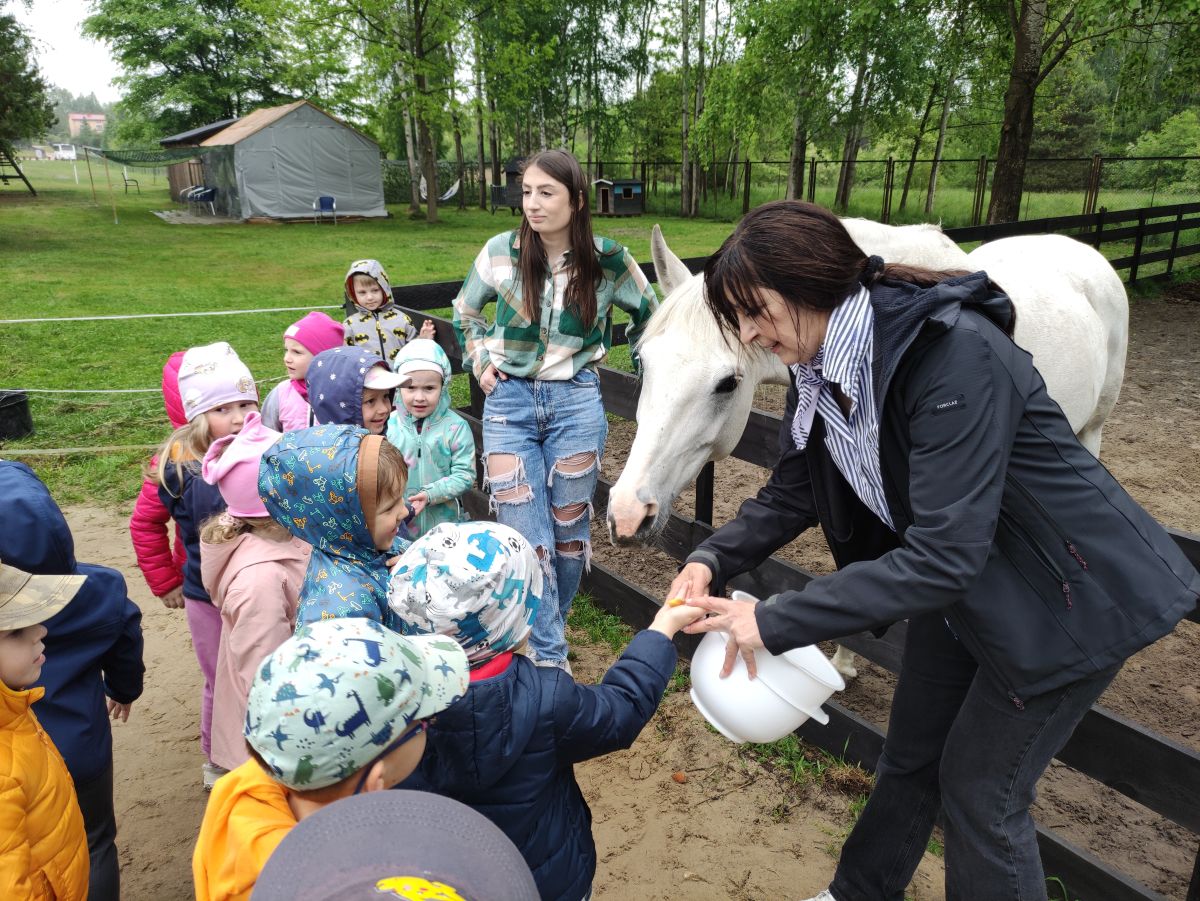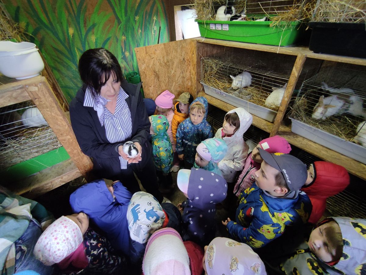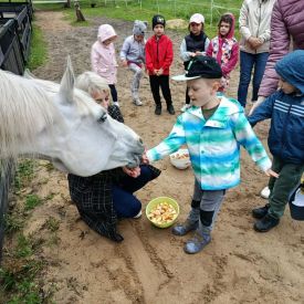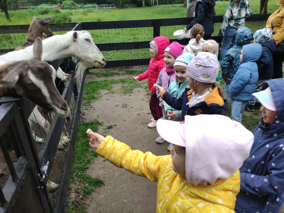 29 maja dzieci z grupy Biedronek, Żabek oraz Motylków wzięły udział w wycieczce do Zagrody Edukacyjnej Wieś. Co w Skarżysku-Kamiennej. Już sama jazda autokarem, to dla dzieci ogromna frajda. Mimo niesprzyjającej pogody wycieczka była bardzo udana i pełna atrakcji. Przedszkolaki zostały powitane przez gospodarzy pysznym drugim śniadaniem w postaci świeżutkiej chałki z dżemem truskawkowym oraz napojami. Następnie dzieci zostały zaproszone na zwiedzanie zagrody, karmienie kóz, kucyków, koni. Niektóre dzieci pierwszy raz w życiu widziały na żywo kury, kaczki, indyki, perliczki, gęsi czy króliki, które zrobiły największe wrażenie. Punktem kulminacyjnym wycieczki było wykonanie własnego lasu w słoiku, który każde dziecko zabrało do domu.