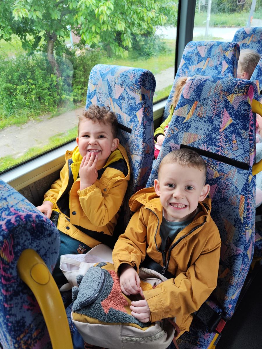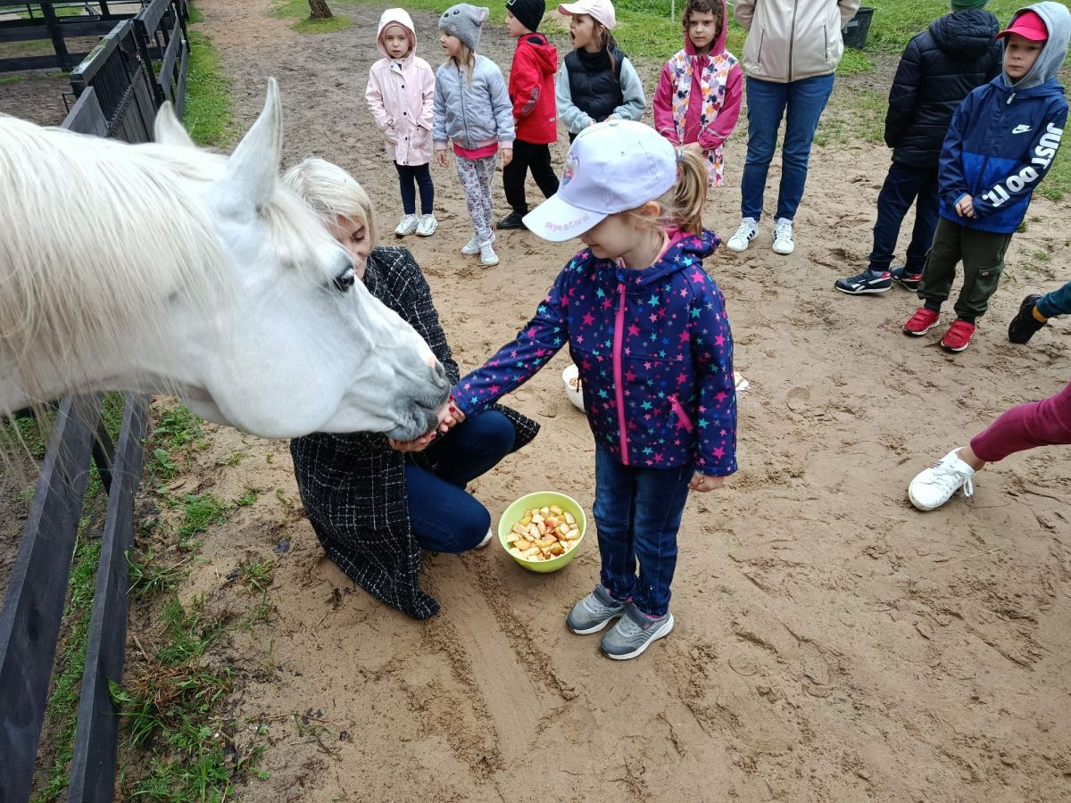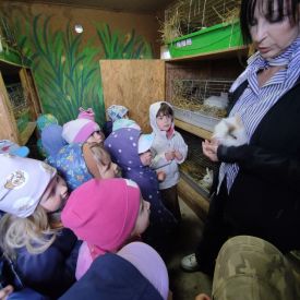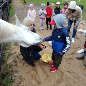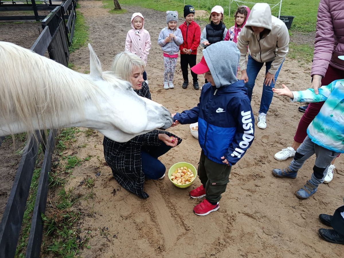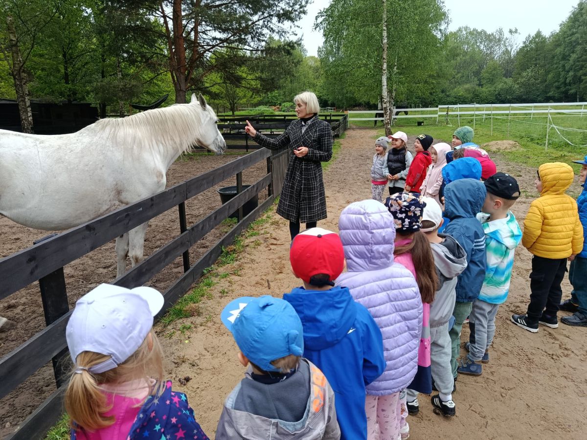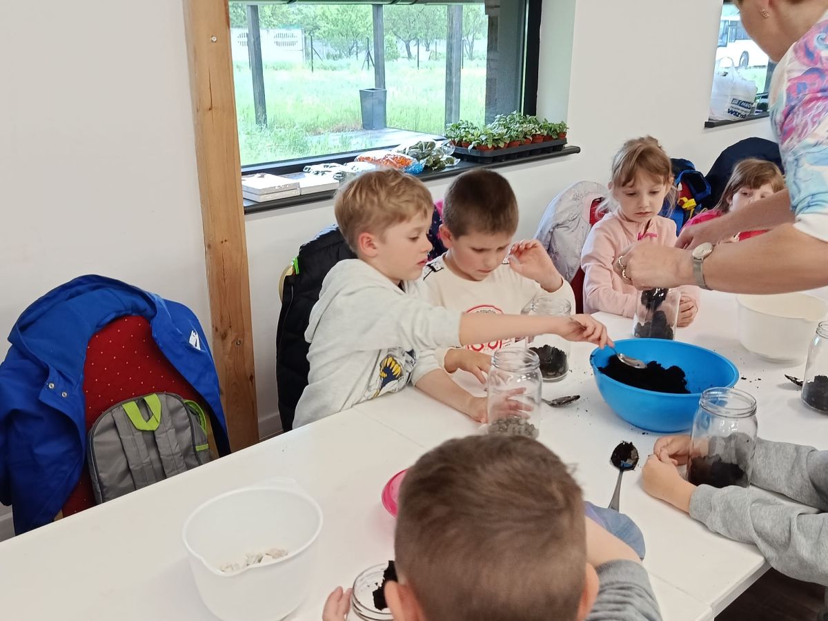 29 maja dzieci z grupy Biedronek, Żabek oraz Motylków wzięły udział w wycieczce do Zagrody Edukacyjnej Wieś. Co w Skarżysku-Kamiennej. Już sama jazda autokarem, to dla dzieci ogromna frajda. Mimo niesprzyjającej pogody wycieczka była bardzo udana i pełna atrakcji. Przedszkolaki zostały powitane przez gospodarzy pysznym drugim śniadaniem w postaci świeżutkiej chałki z dżemem truskawkowym oraz napojami. Następnie dzieci zostały zaproszone na zwiedzanie zagrody, karmienie kóz, kucyków, koni. Niektóre dzieci pierwszy raz w życiu widziały na żywo kury, kaczki, indyki, perliczki, gęsi czy króliki, które zrobiły największe wrażenie. Punktem kulminacyjnym wycieczki było wykonanie własnego lasu w słoiku, który każde dziecko zabrało do domu.