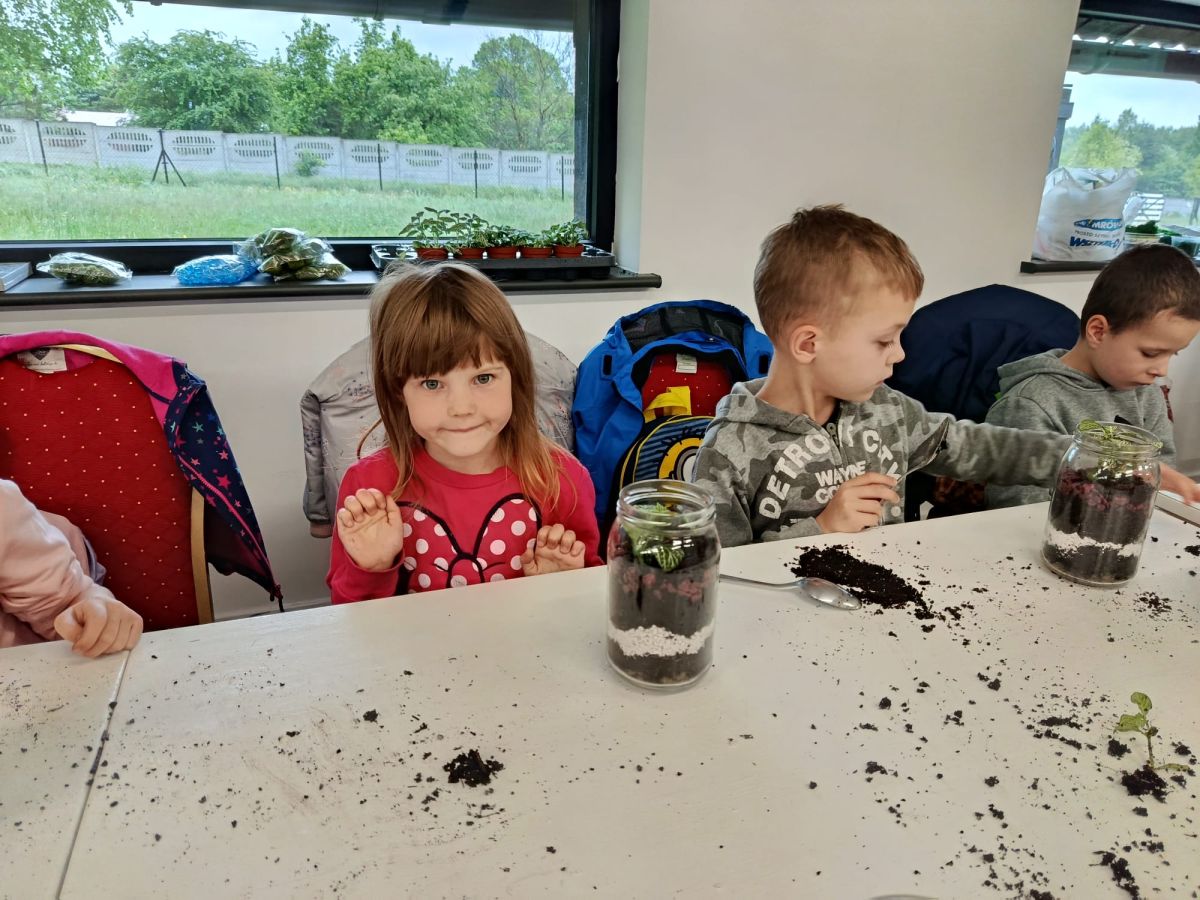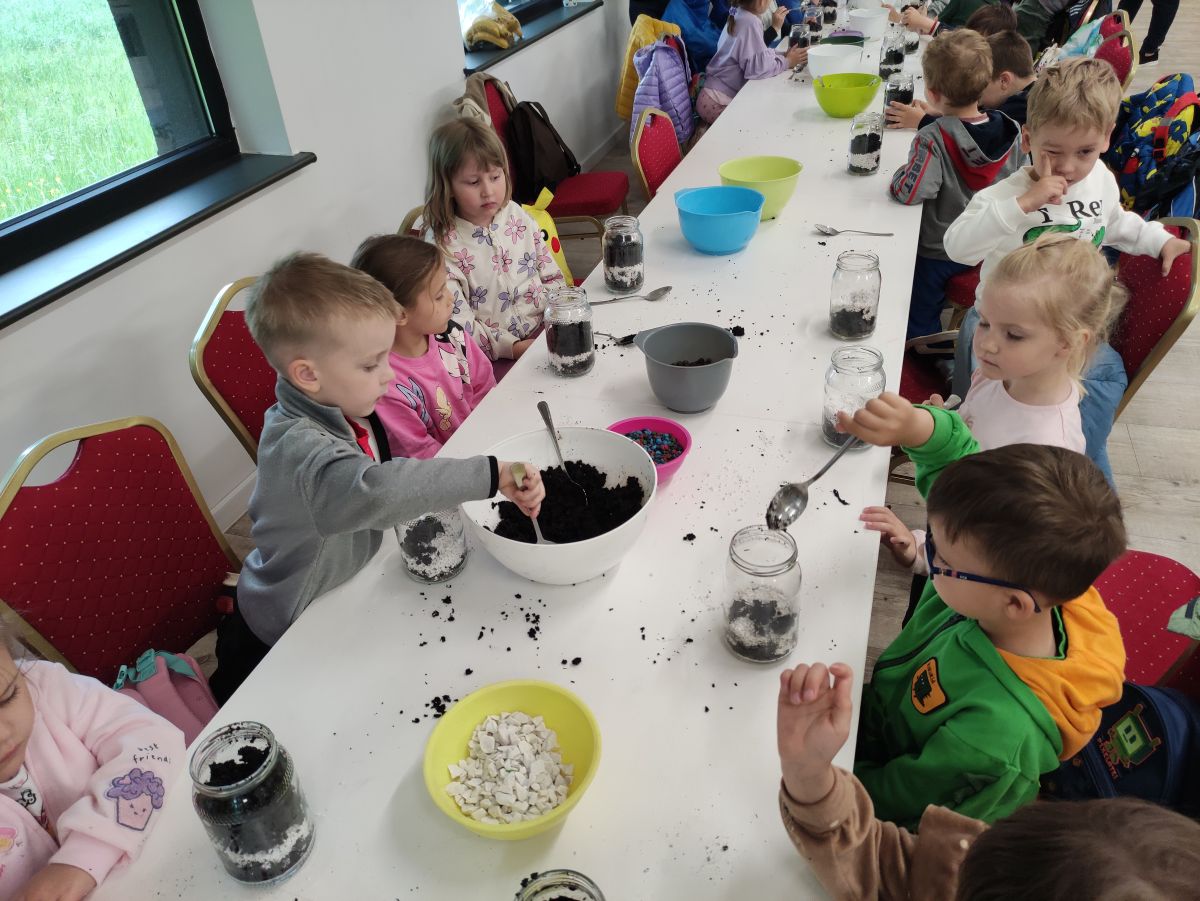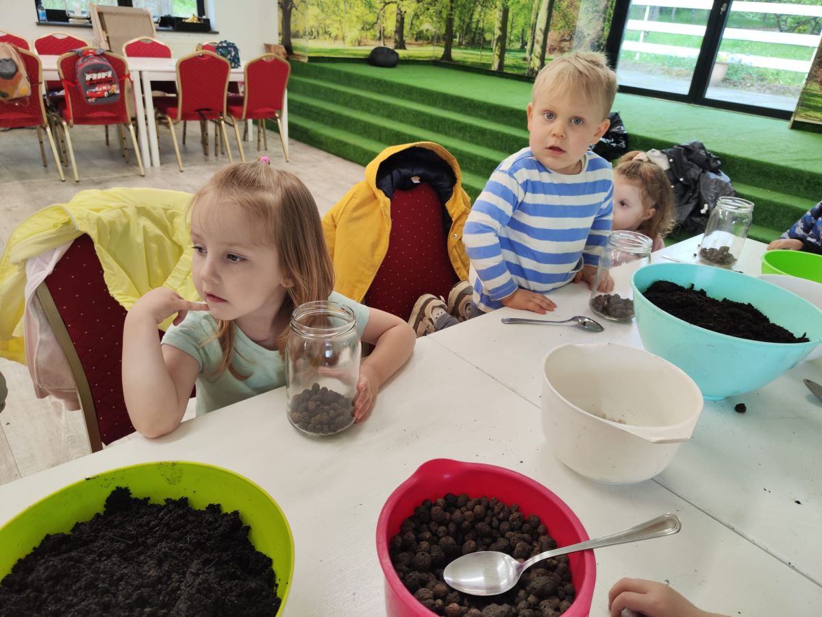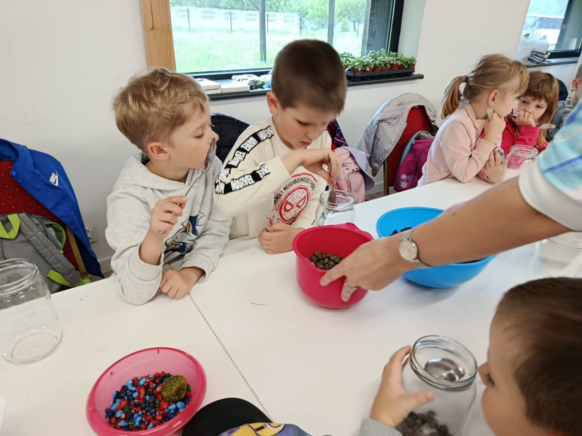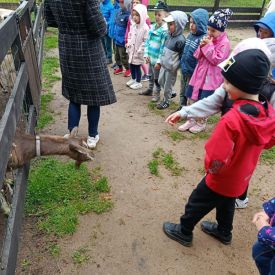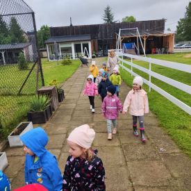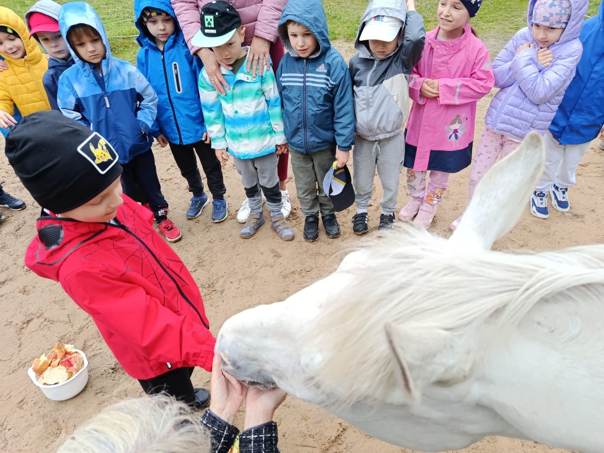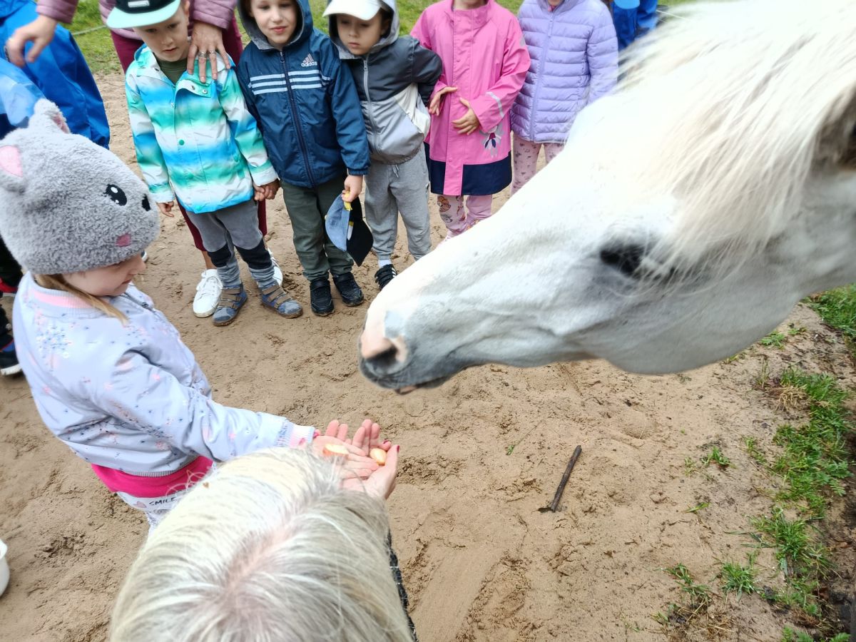 29 maja dzieci z grupy Biedronek, Żabek oraz Motylków wzięły udział w wycieczce do Zagrody Edukacyjnej Wieś. Co w Skarżysku-Kamiennej. Już sama jazda autokarem, to dla dzieci ogromna frajda. Mimo niesprzyjającej pogody wycieczka była bardzo udana i pełna atrakcji. Przedszkolaki zostały powitane przez gospodarzy pysznym drugim śniadaniem w postaci świeżutkiej chałki z dżemem truskawkowym oraz napojami. Następnie dzieci zostały zaproszone na zwiedzanie zagrody, karmienie kóz, kucyków, koni. Niektóre dzieci pierwszy raz w życiu widziały na żywo kury, kaczki, indyki, perliczki, gęsi czy króliki, które zrobiły największe wrażenie. Punktem kulminacyjnym wycieczki było wykonanie własnego lasu w słoiku, który każde dziecko zabrało do domu.