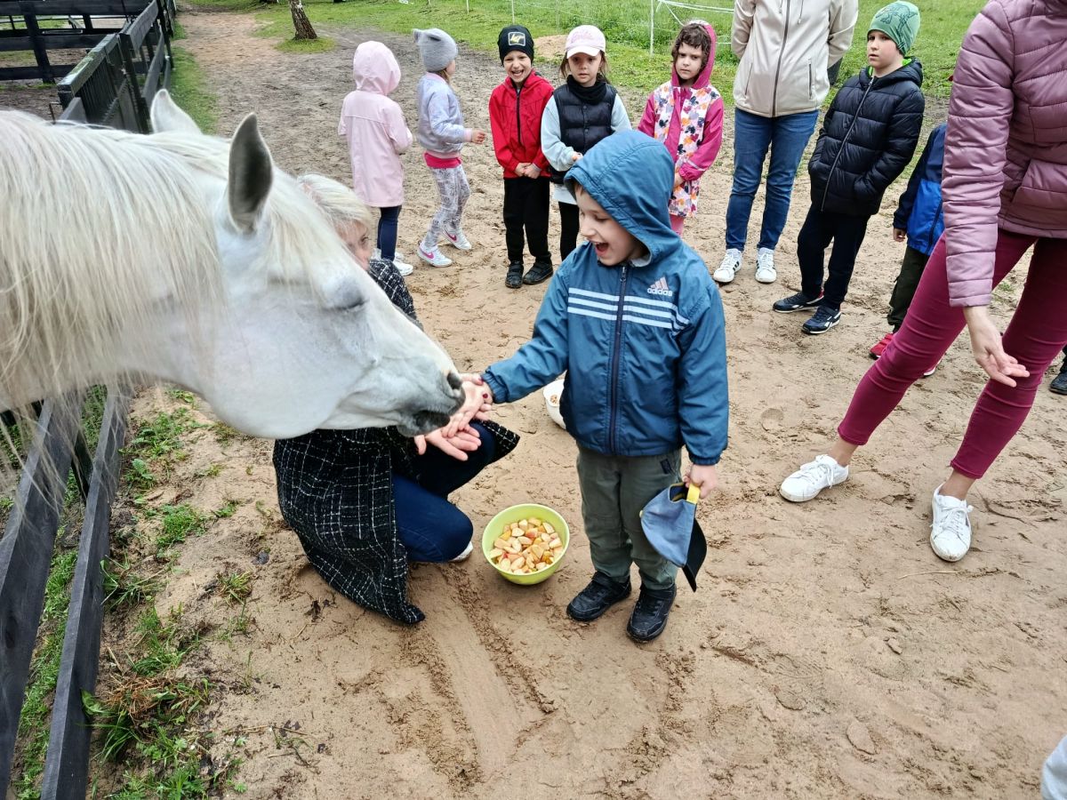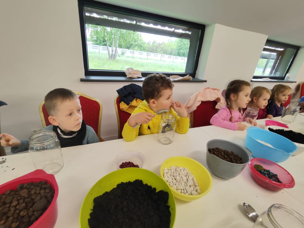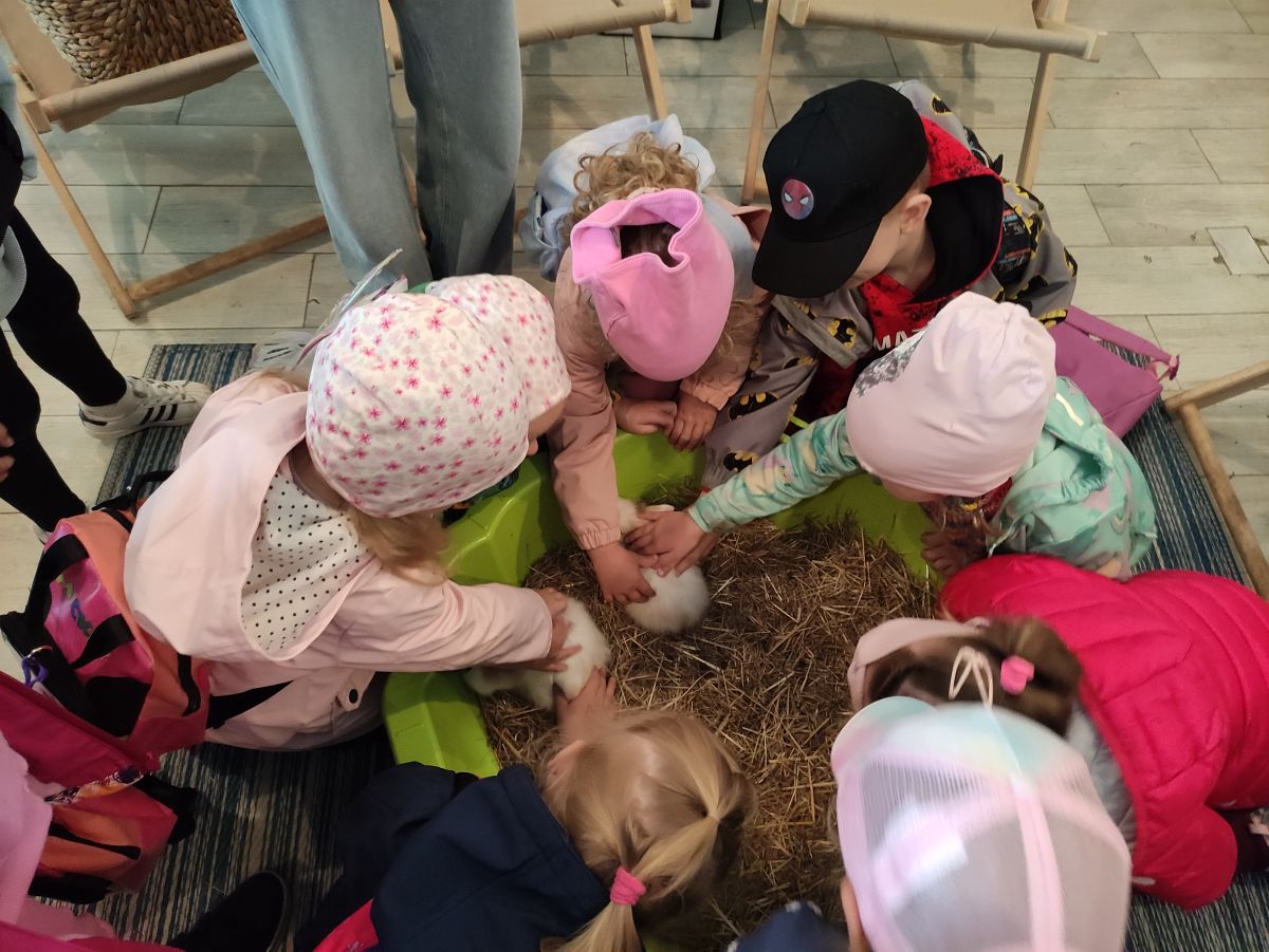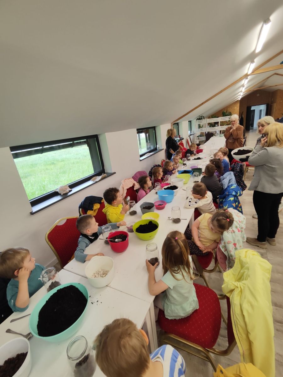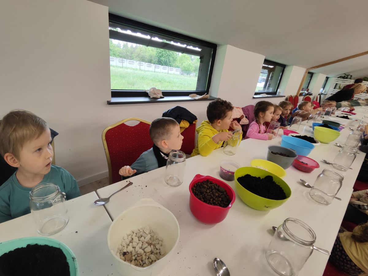 29 maja dzieci z grupy Biedronek, Żabek oraz Motylków wzięły udział w wycieczce do Zagrody Edukacyjnej Wieś. Co w Skarżysku-Kamiennej. Już sama jazda autokarem, to dla dzieci ogromna frajda. Mimo niesprzyjającej pogody wycieczka była bardzo udana i pełna atrakcji. Przedszkolaki zostały powitane przez gospodarzy pysznym drugim śniadaniem w postaci świeżutkiej chałki z dżemem truskawkowym oraz napojami. Następnie dzieci zostały zaproszone na zwiedzanie zagrody, karmienie kóz, kucyków, koni. Niektóre dzieci pierwszy raz w życiu widziały na żywo kury, kaczki, indyki, perliczki, gęsi czy króliki, które zrobiły największe wrażenie. Punktem kulminacyjnym wycieczki było wykonanie własnego lasu w słoiku, który każde dziecko zabrało do domu.