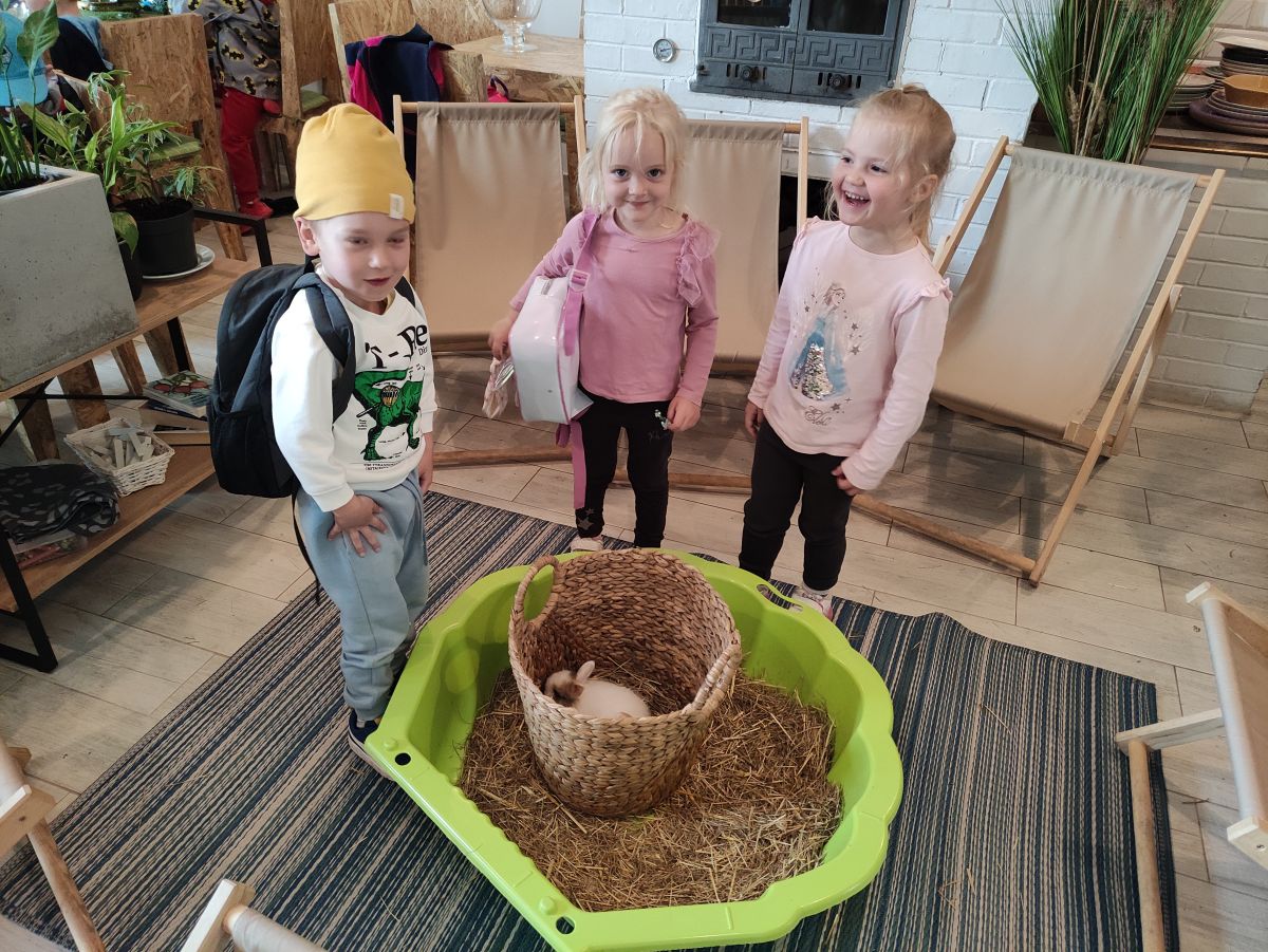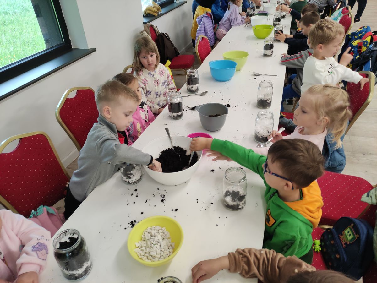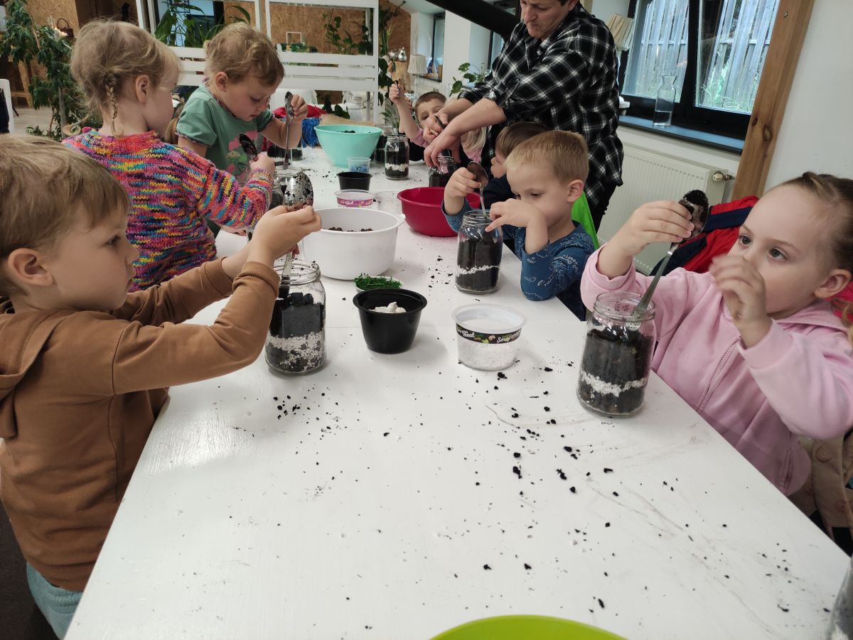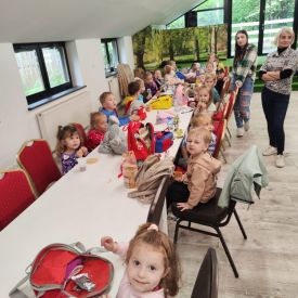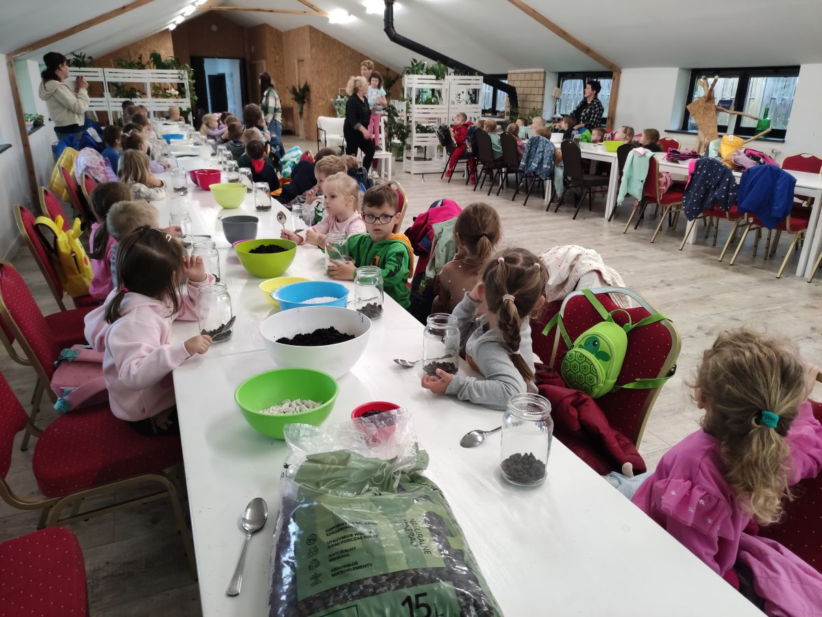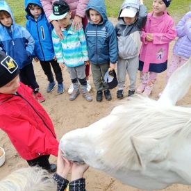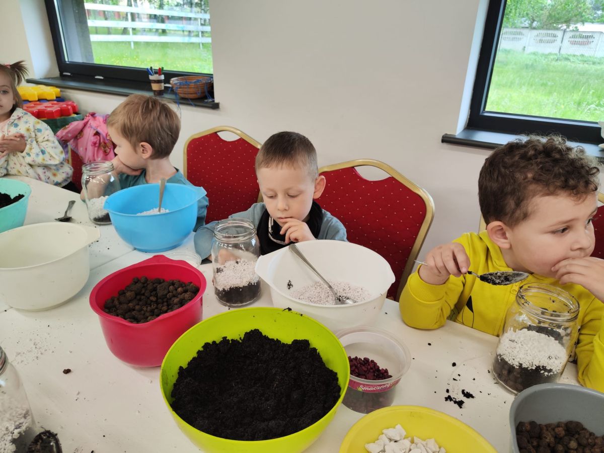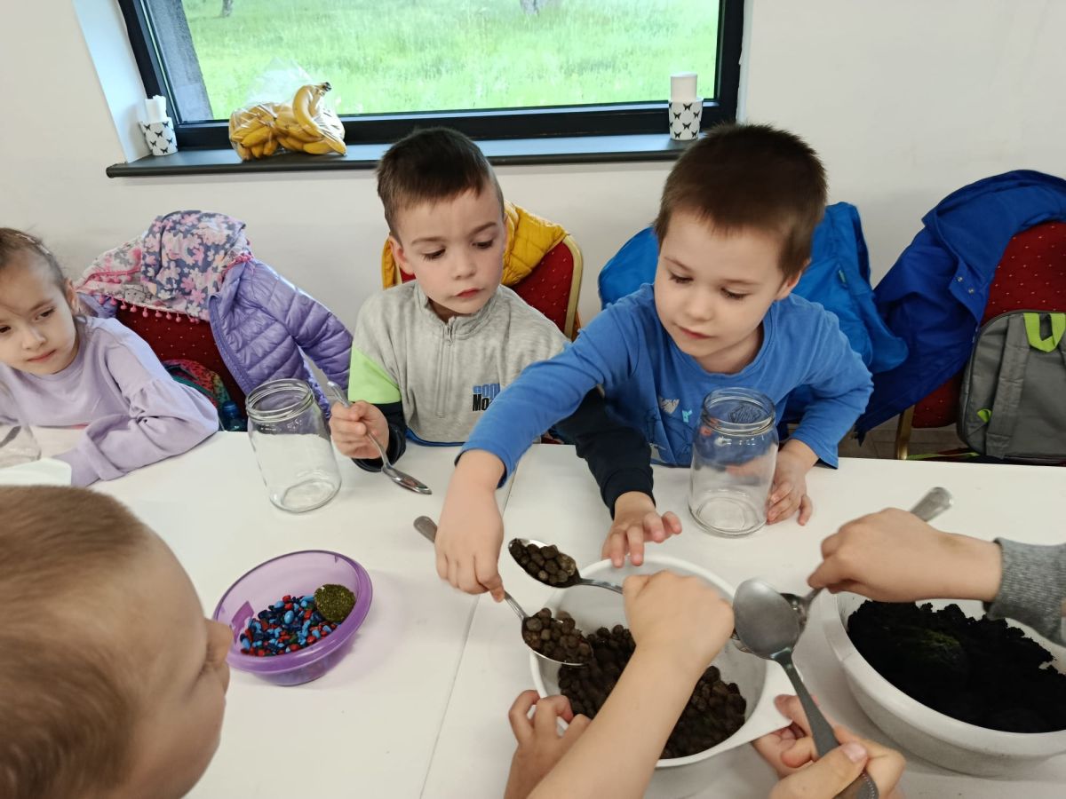 29 maja dzieci z grupy Biedronek, Żabek oraz Motylków wzięły udział w wycieczce do Zagrody Edukacyjnej Wieś. Co w Skarżysku-Kamiennej. Już sama jazda autokarem, to dla dzieci ogromna frajda. Mimo niesprzyjającej pogody wycieczka była bardzo udana i pełna atrakcji. Przedszkolaki zostały powitane przez gospodarzy pysznym drugim śniadaniem w postaci świeżutkiej chałki z dżemem truskawkowym oraz napojami. Następnie dzieci zostały zaproszone na zwiedzanie zagrody, karmienie kóz, kucyków, koni. Niektóre dzieci pierwszy raz w życiu widziały na żywo kury, kaczki, indyki, perliczki, gęsi czy króliki, które zrobiły największe wrażenie. Punktem kulminacyjnym wycieczki było wykonanie własnego lasu w słoiku, który każde dziecko zabrało do domu.