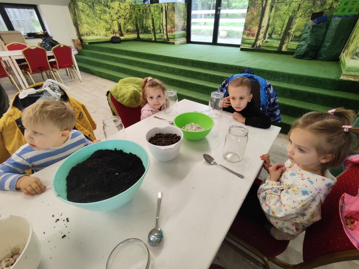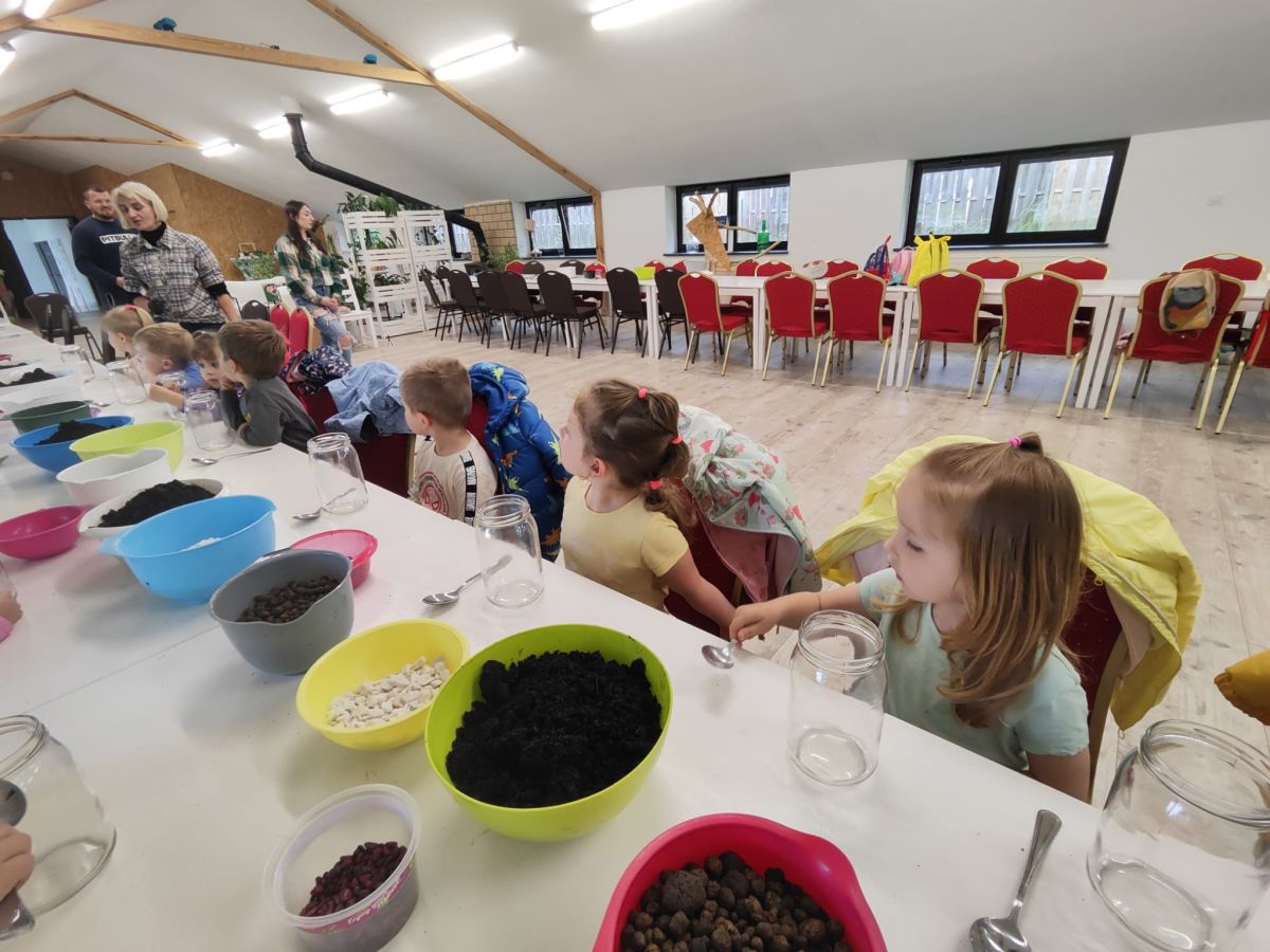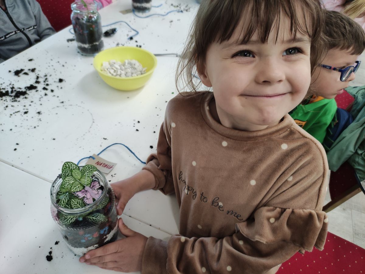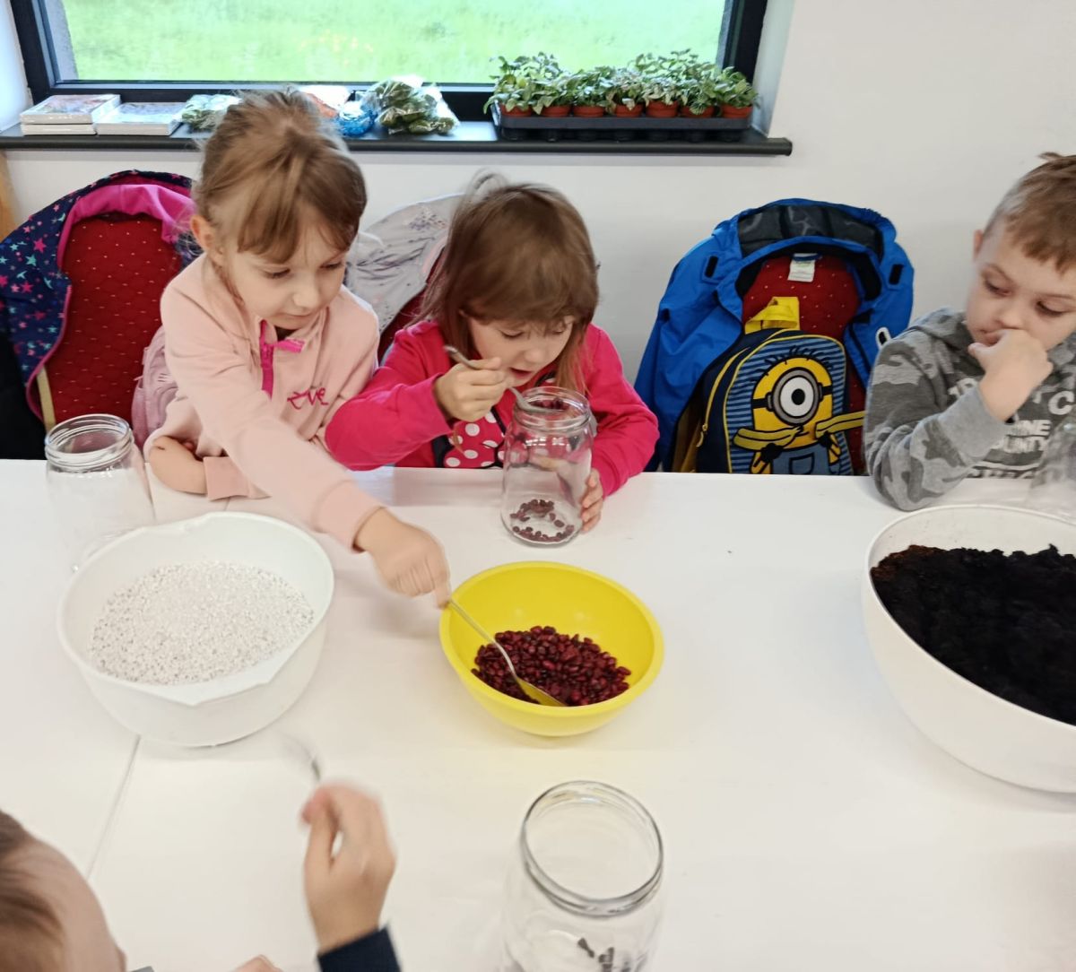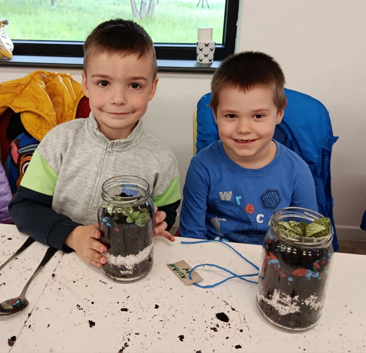 29 maja dzieci z grupy Biedronek, Żabek oraz Motylków wzięły udział w wycieczce do Zagrody Edukacyjnej Wieś. Co w Skarżysku-Kamiennej. Już sama jazda autokarem, to dla dzieci ogromna frajda. Mimo niesprzyjającej pogody wycieczka była bardzo udana i pełna atrakcji. Przedszkolaki zostały powitane przez gospodarzy pysznym drugim śniadaniem w postaci świeżutkiej chałki z dżemem truskawkowym oraz napojami. Następnie dzieci zostały zaproszone na zwiedzanie zagrody, karmienie kóz, kucyków, koni. Niektóre dzieci pierwszy raz w życiu widziały na żywo kury, kaczki, indyki, perliczki, gęsi czy króliki, które zrobiły największe wrażenie. Punktem kulminacyjnym wycieczki było wykonanie własnego lasu w słoiku, który każde dziecko zabrało do domu.