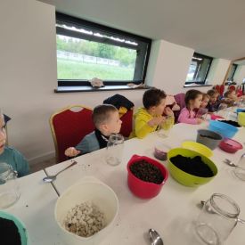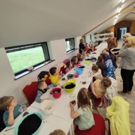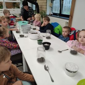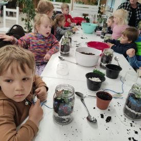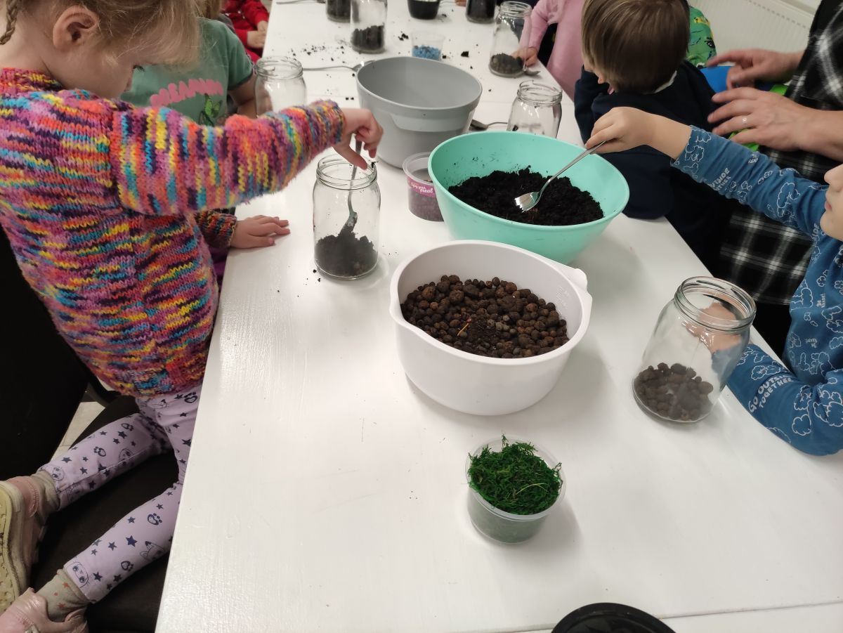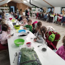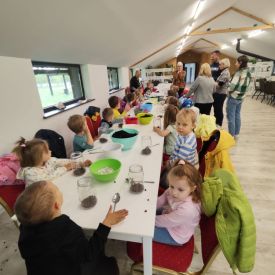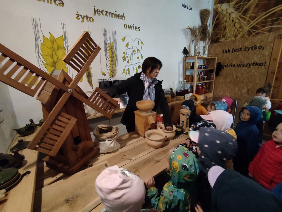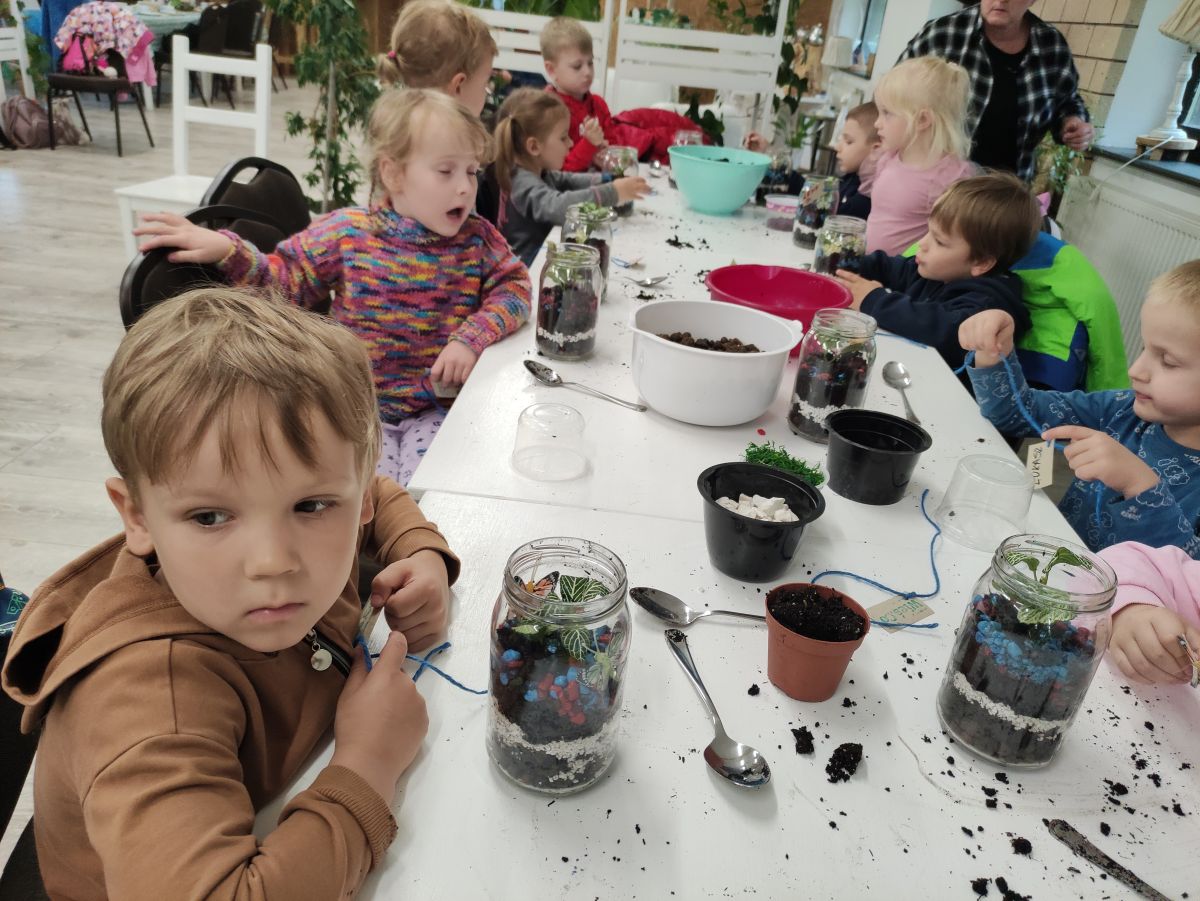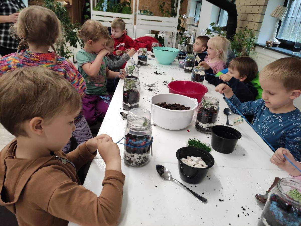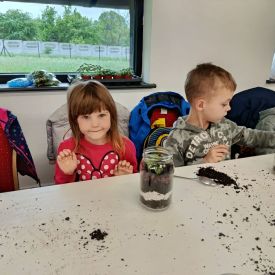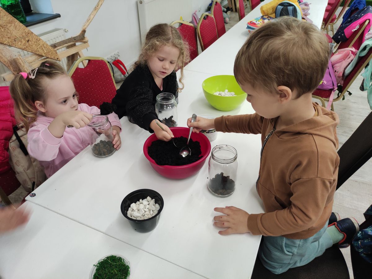 29 maja dzieci z grupy Biedronek, Żabek oraz Motylków wzięły udział w wycieczce do Zagrody Edukacyjnej Wieś. Co w Skarżysku-Kamiennej. Już sama jazda autokarem, to dla dzieci ogromna frajda. Mimo niesprzyjającej pogody wycieczka była bardzo udana i pełna atrakcji. Przedszkolaki zostały powitane przez gospodarzy pysznym drugim śniadaniem w postaci świeżutkiej chałki z dżemem truskawkowym oraz napojami. Następnie dzieci zostały zaproszone na zwiedzanie zagrody, karmienie kóz, kucyków, koni. Niektóre dzieci pierwszy raz w życiu widziały na żywo kury, kaczki, indyki, perliczki, gęsi czy króliki, które zrobiły największe wrażenie. Punktem kulminacyjnym wycieczki było wykonanie własnego lasu w słoiku, który każde dziecko zabrało do domu.