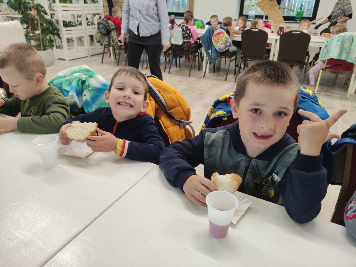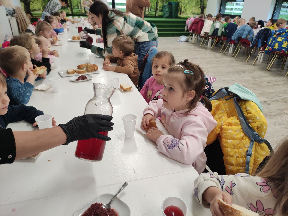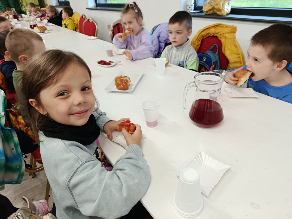Dzieci zmęczone ale szczęśliwe wróciły do przedszkola na obiad.