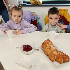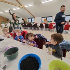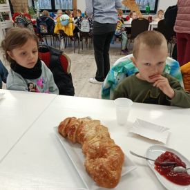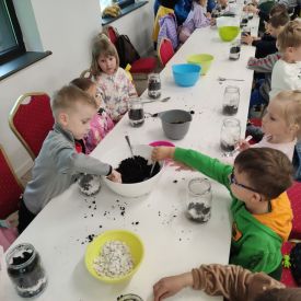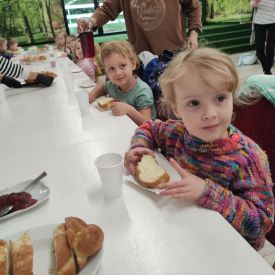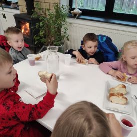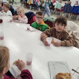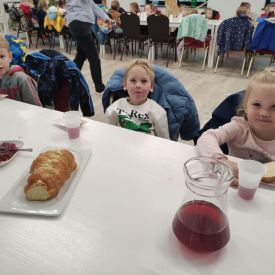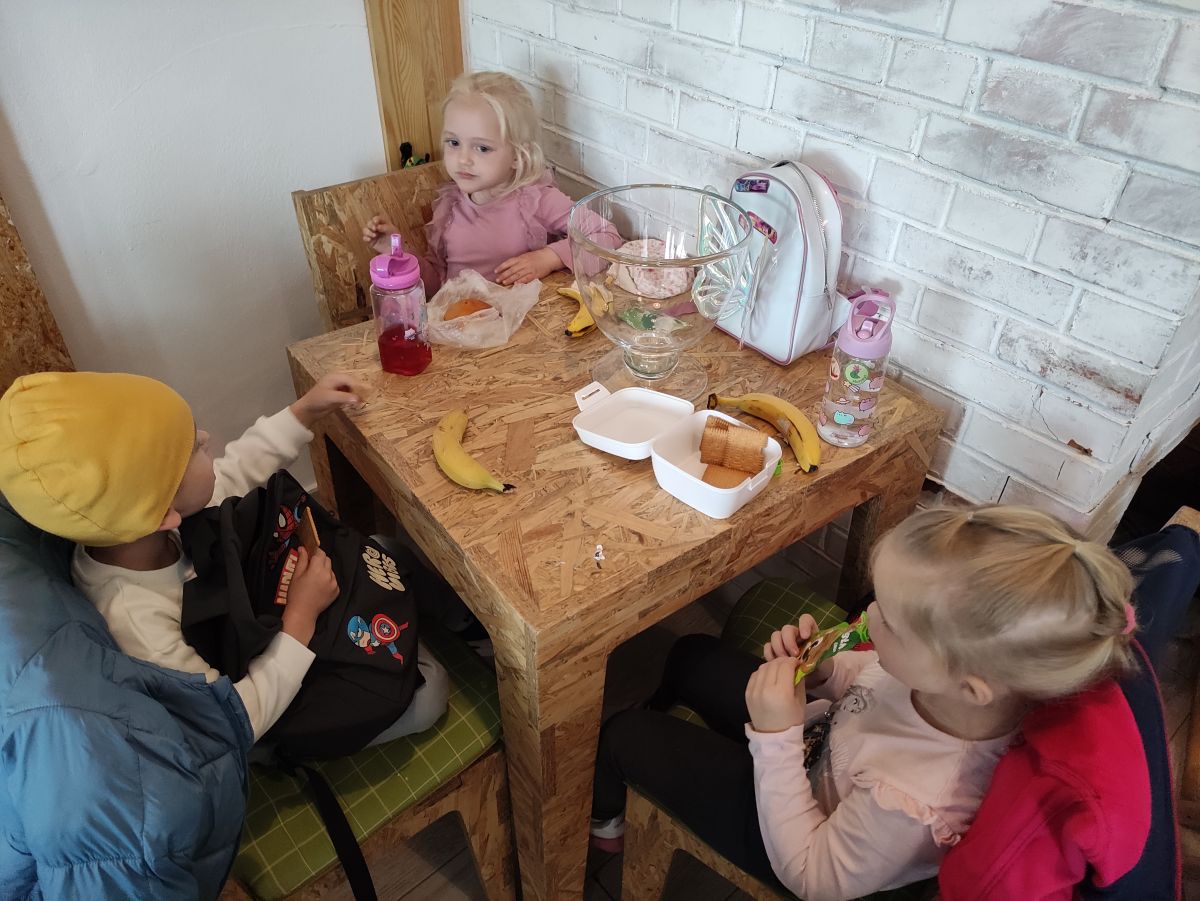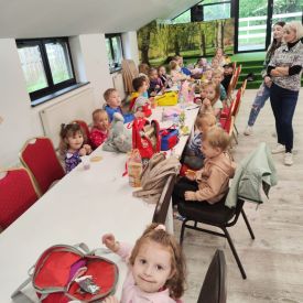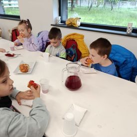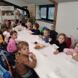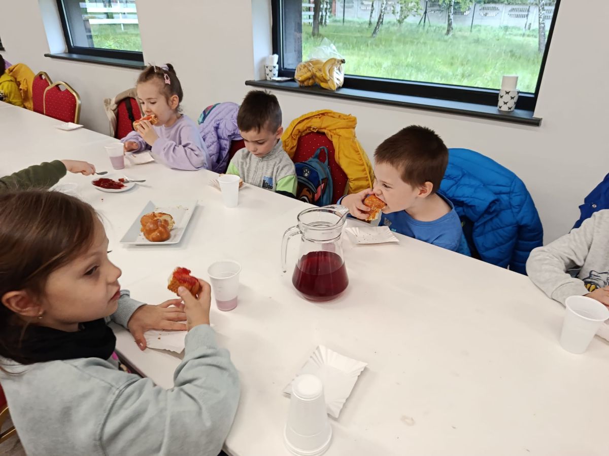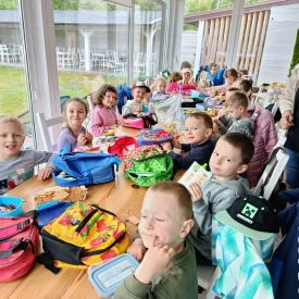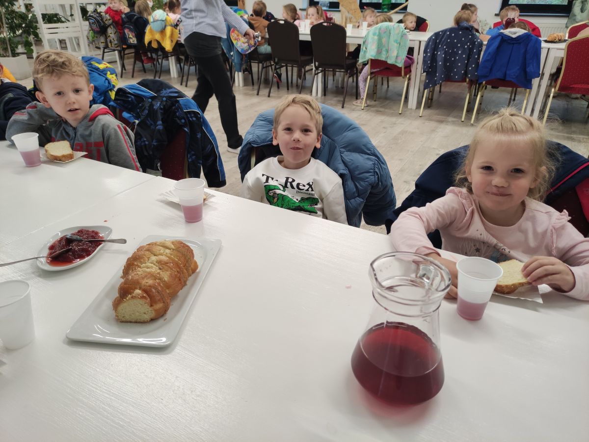 Dzieci zmęczone ale szczęśliwe wróciły do przedszkola na obiad.