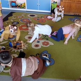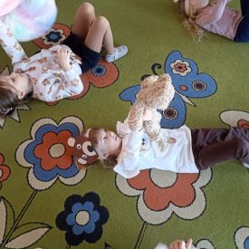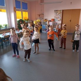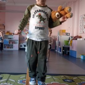 W ramach obchodów Dnia Pluszowego Misia dzieci z grupy Motylków spędziły również ten czas na sportowo ze swoimi pluszowymi misiami realizując program „Zdrowo i Sportowo”.