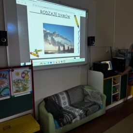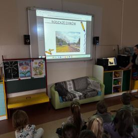 Przedszkolaki obejrzały prezentację „Czyste powietrze wokół nas”. Obejrzały filmy edukacyjne na temat zanieczyszczeń i szkodliwości powodowanych przez różne rodzaje dymów. Wybrały się na spacer w poszukiwaniu dymiących kominów oraz zwiększały swoją świadomość na temat szkodliwości dymów, które zanieczyszczają środowisko oraz szkodzą zdrowiu ludzi i zwierząt. Przedszkolaki nauczyły się reagować, gdy ktoś zapali papierosa w ich obecności lub w niedozwolonym miejscu. Malowały postać Smoka Dinka. Dzieci śpiewały piosenkę o zielonym Dinku, który nie lubi palaczy i ucieka przed dymem. Poznały historyjkę o podróży Dinka pociągiem. Dzieciom bardzo podobały się takie zajęcia i chętnie uczestniczyły we wszystkich ćwiczeniach. Przedszkolaki podczas zajęć usystematyzowały swoją wiedzę na temat szkodliwości palenia.