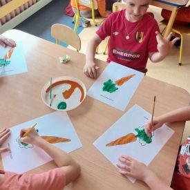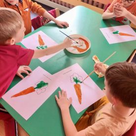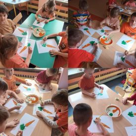 Dzień Marchewki obfitował w warzywne zagadki, quizy i ćwiczenia. Dzieci na podsumowanie wykonały pracę plastyczną.