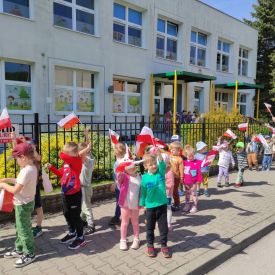 W ramach realizacji programu ,,Nasza mała i wielka Ojczyzna” podczas tygodniowego cyklu zajęć we wszystkich grupach zostały podjęte działania mające na celu uczczenie obchodzonych w maju Świąt Państwowych: 1maja – Święto Pracy, 2 maja – Dzień Flagi, 3 maja- Uchwalenie Konstytucji 3 maja. To wspaniały czas na przybliżenie dzieciom treści patriotycznych oraz budowanie od najmłodszych lat poczucia dumy, że jesteśmy Polakami