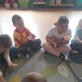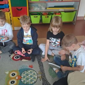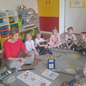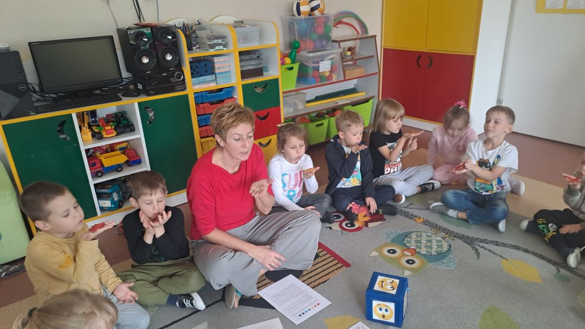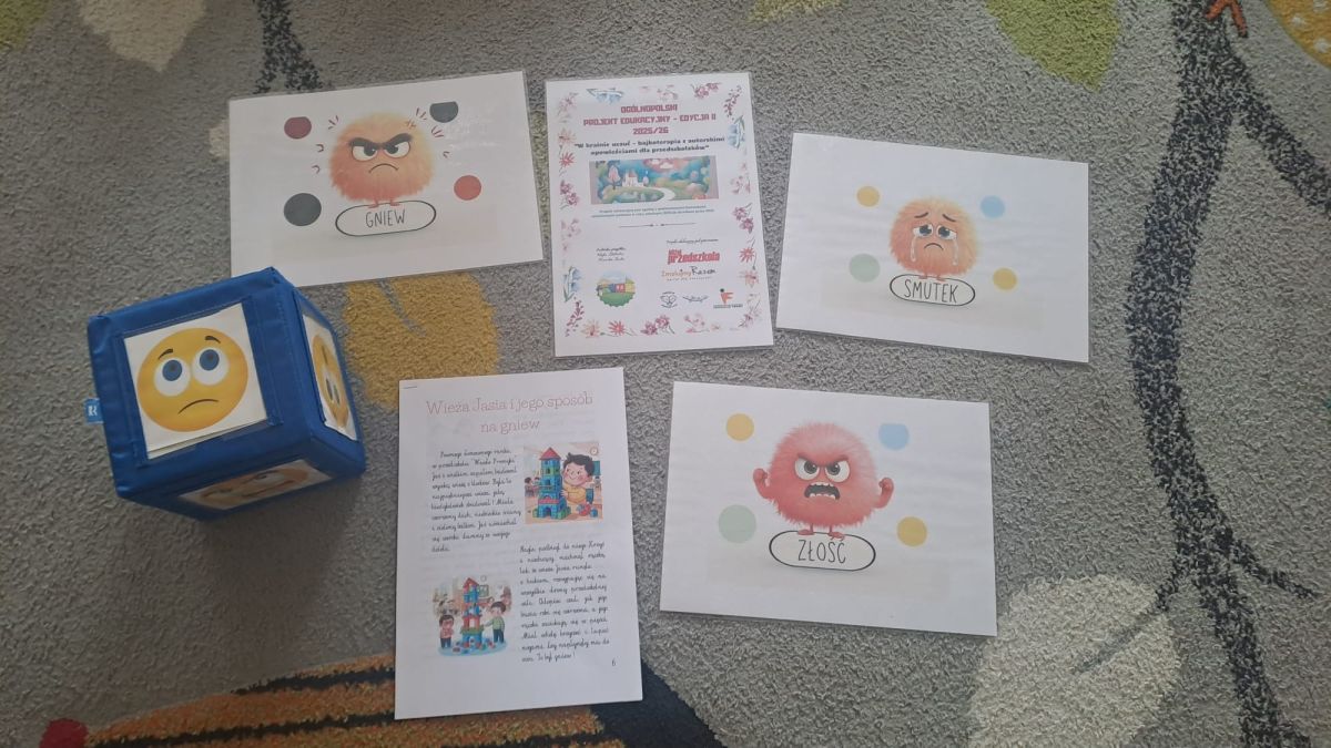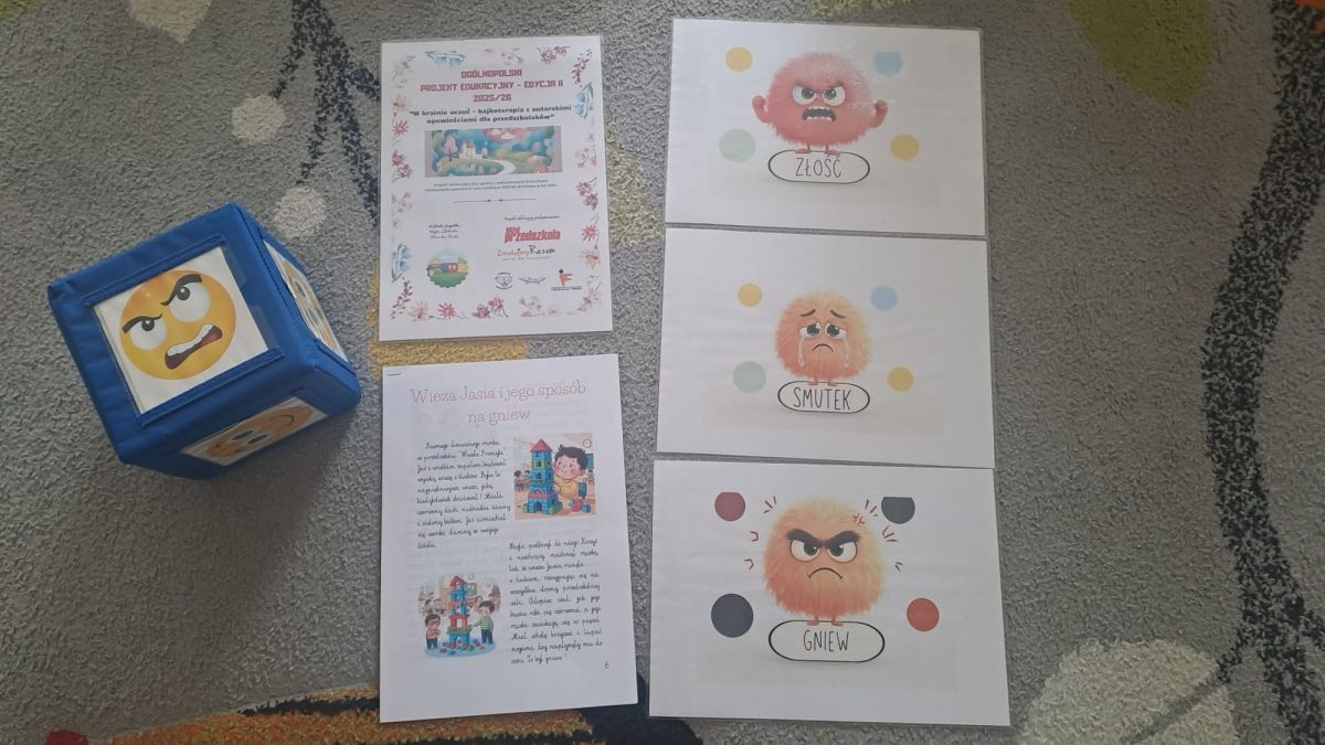 Dzieci z grupy „Sówek” w październiku 2025 r. rozpoczęły realizację Ogólnopolskiego Projektu Edukacyjnego „W krainie uczuć – bajkoterapia z autorskimi opowieściami dla przedszkolaków”. Celem projektu jest terapeutyczne wykorzystanie bajek, które pomogą dzieciom w rozumieniu siebie i innych, nauce emaptii, radzeniu sobie z trudnymi emocjami, budowaniu pewności siebie.