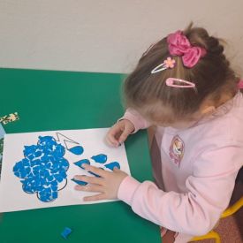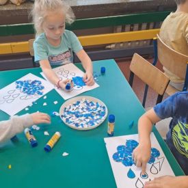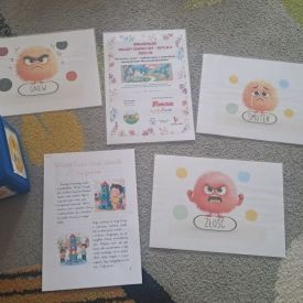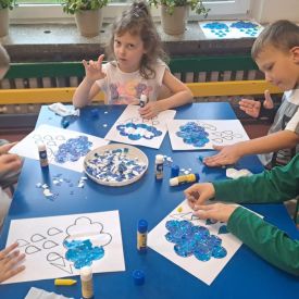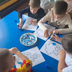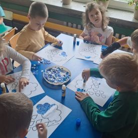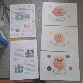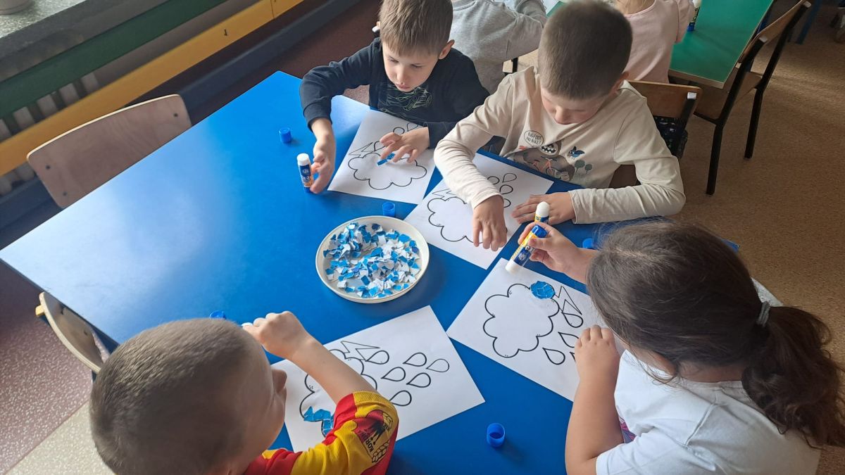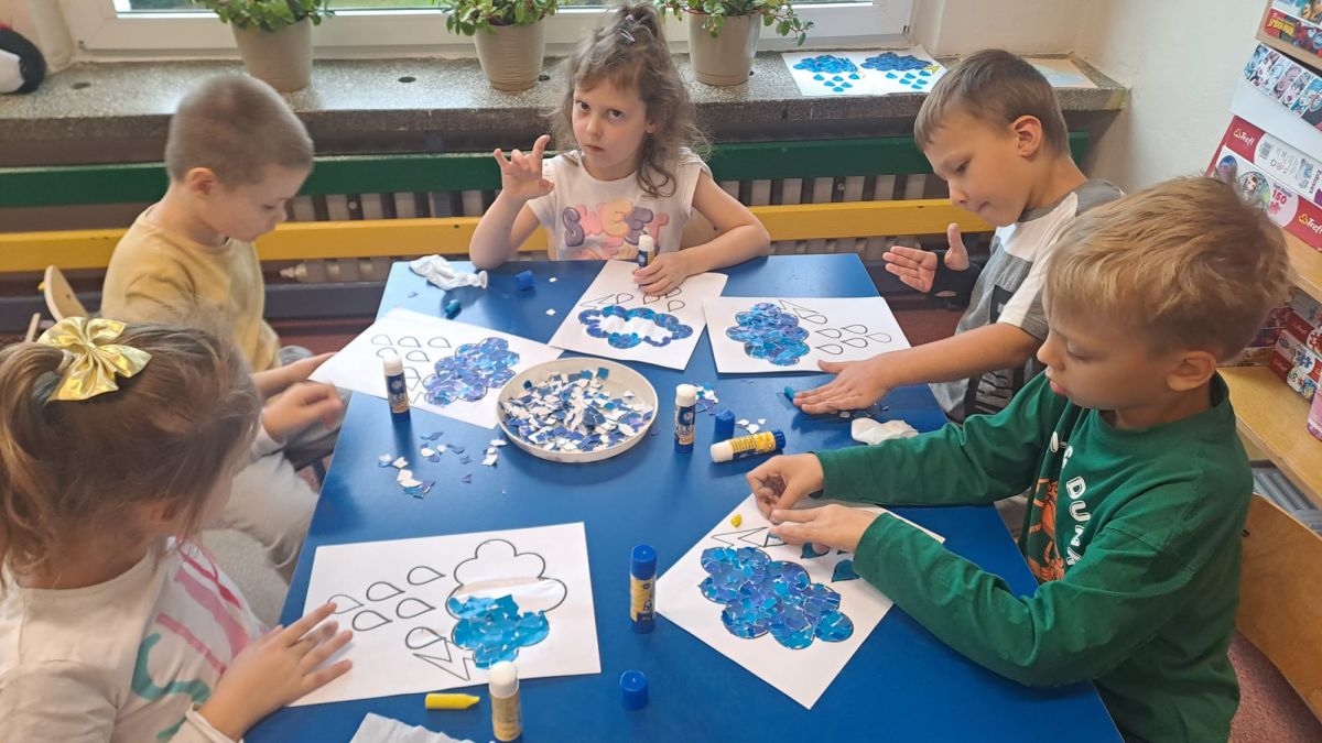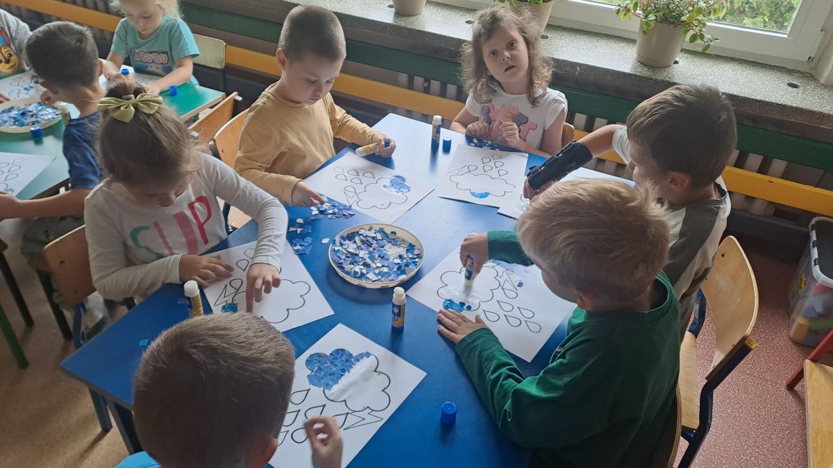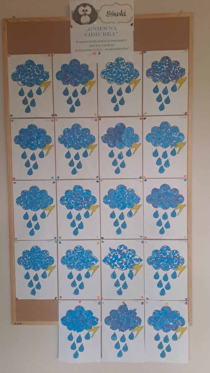 Dnia 6.10.2025 r. dzieci na zajęciach wysłuchały opowiadania pt. „Wieża Jasia i jego sposób na gniew”. Następnie poznały proste i skuteczne sposoby radzenia sobie z gniewem i złością. Ćwiczyły techniki oddechowe „wdech i wydech”, odliczanie do 10, które pomagają uspokoić się w chwilach złości. Zwieńczeniem zajęć była wykonana przez dzieci praca plastyczna „Gniewna chmurka”.