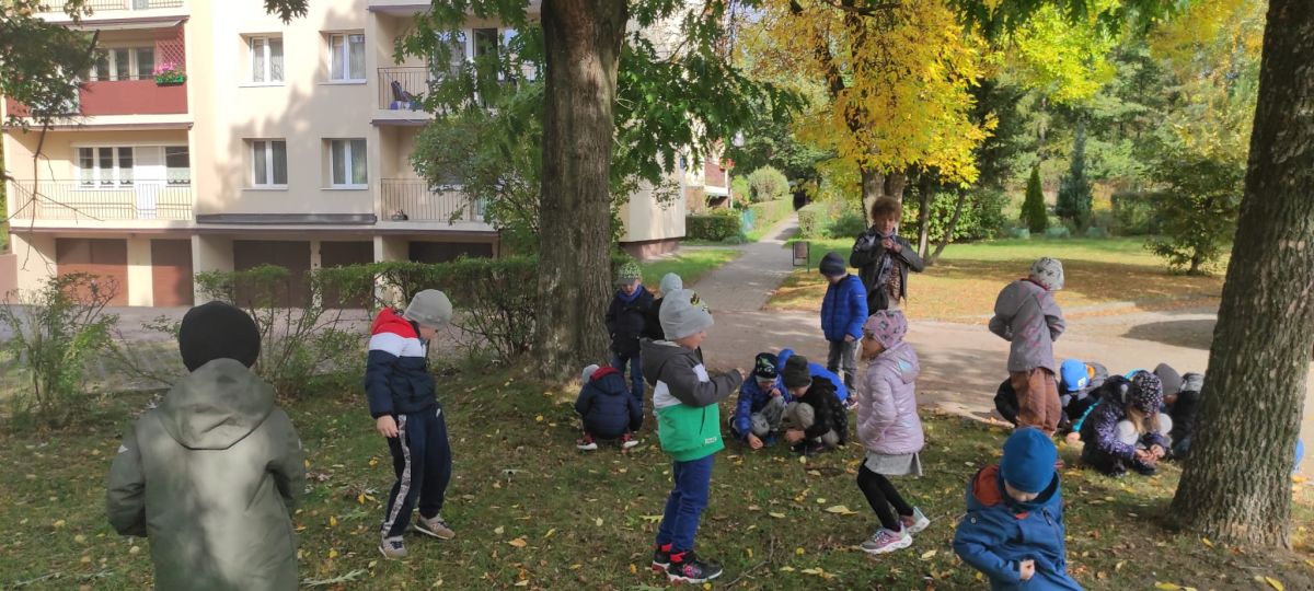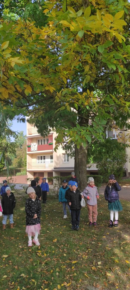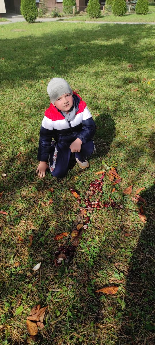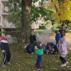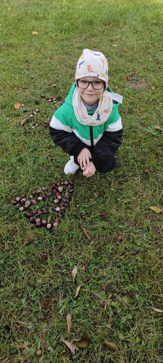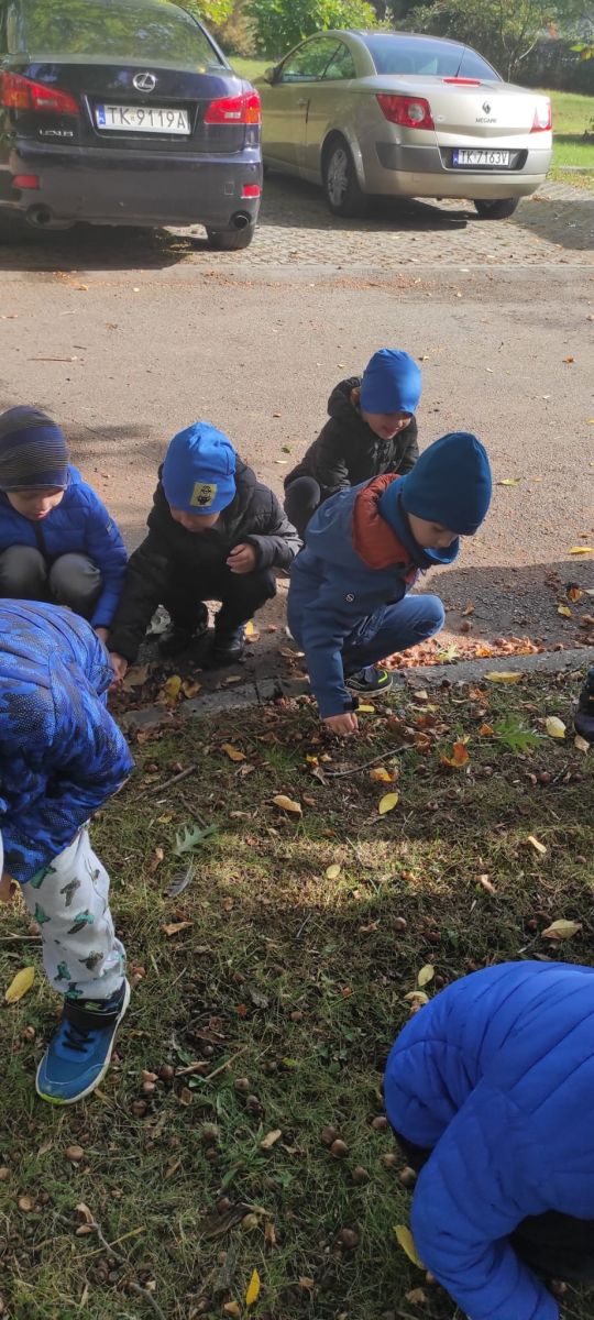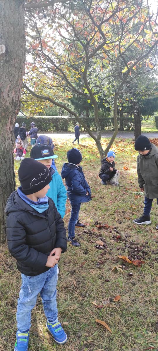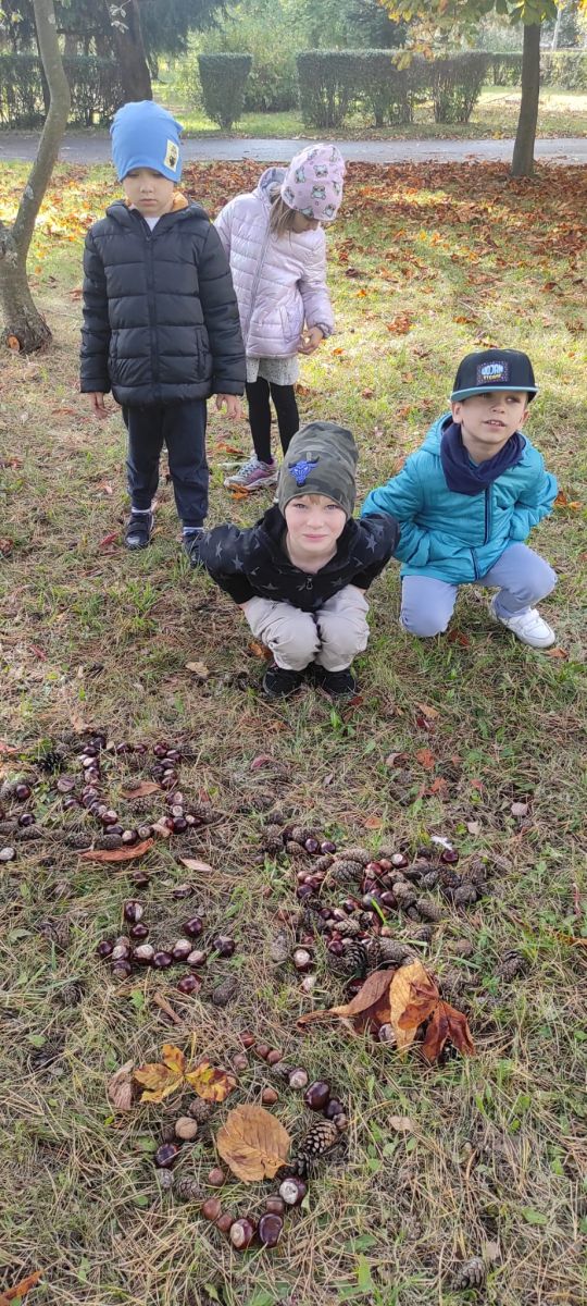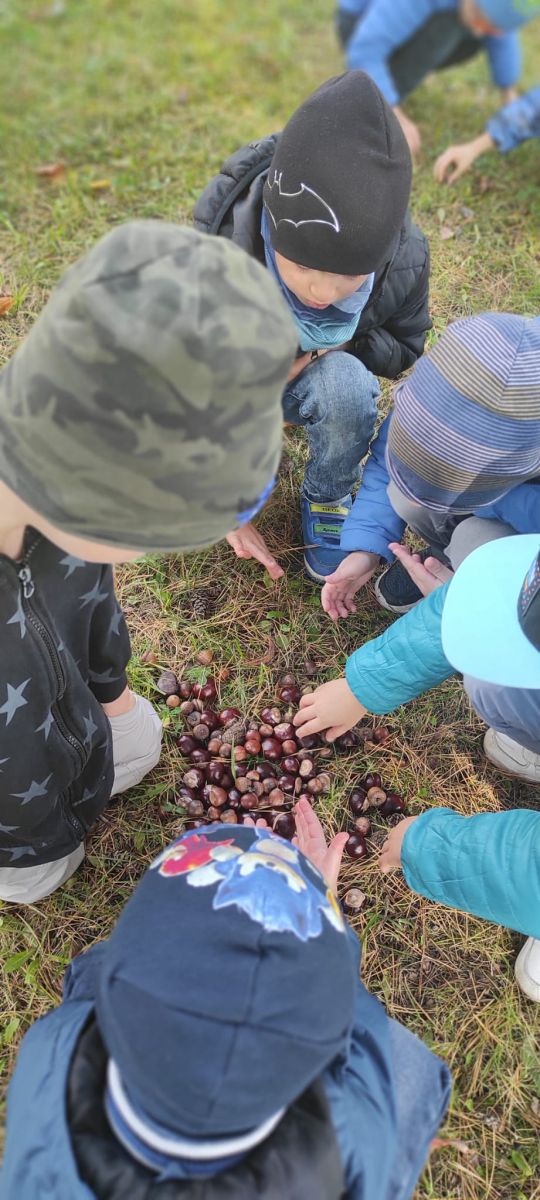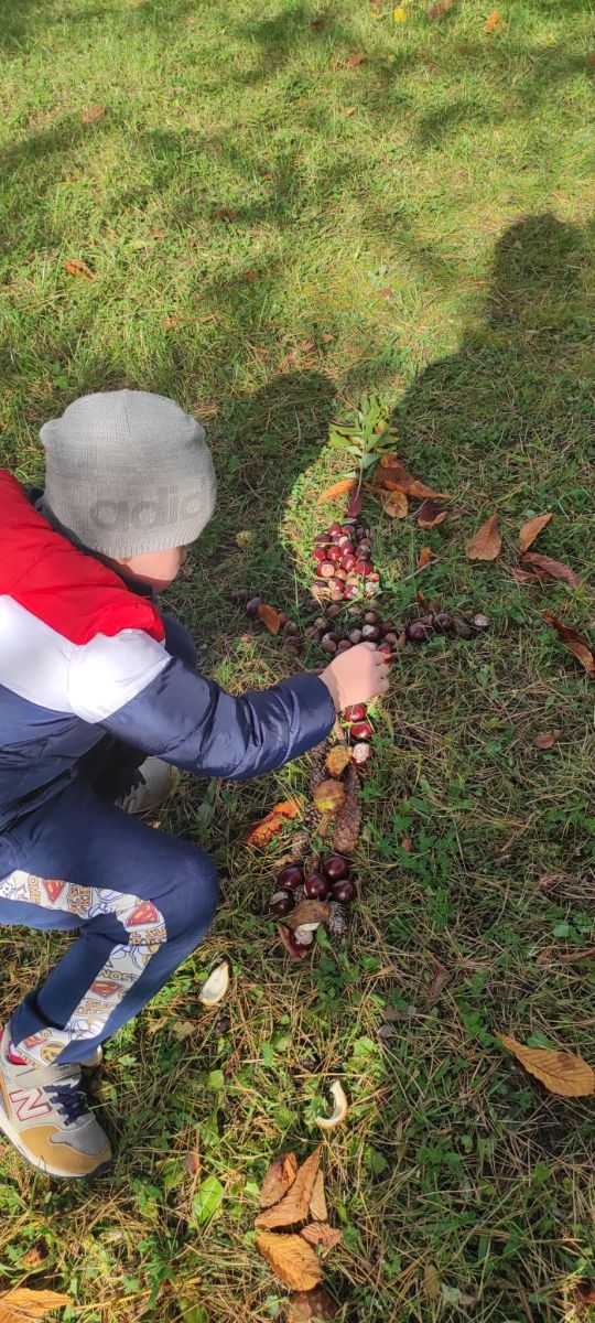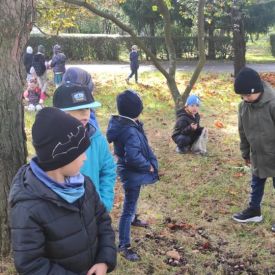 Tego roku mieliśmy wyjątkowo ciepłą i pogodną jesień. Dzieci z grupy Pszczółek dużo czasu spędzały na zabawach zarówno w ogrodzie przedszkolnym jak i podczas spacerów, podziwiając jesienne kwiaty w pobliskich ogródkach. Był to czas na zbieranie jesiennych liści, jarzębiny, kasztanów i żołędzi. Land art czyli sztuka ziemi pozwoliła dzieciom na wykorzystanie swojej wyobraźni podczas tworzenia różnych kompozycji z materiału przyrodniczego. Podczas takich wyjść w ramach realizacji programu ,,Przedszkolny świat przyrody” dzieci podziwiły piękno otaczającego, niezwykle barwnego krajobrazu naszej Karczówki. Tworzyły prace plastyczne, eksperymentowały z kolorami, poznawały różne techniki plastyczne. Nasz kącik przyrody wzbogacił się w nowe okazy przyrodnicze, które wykorzystujemy podczas codziennych zajęć.