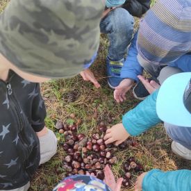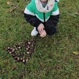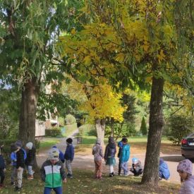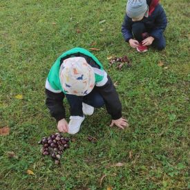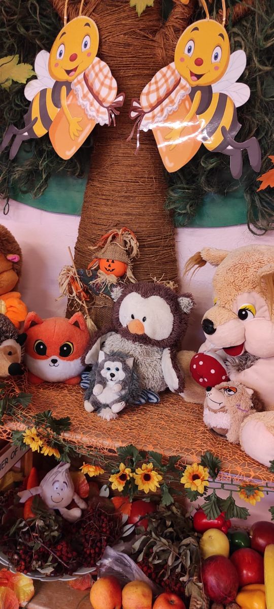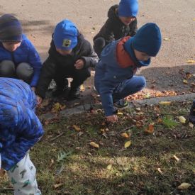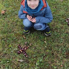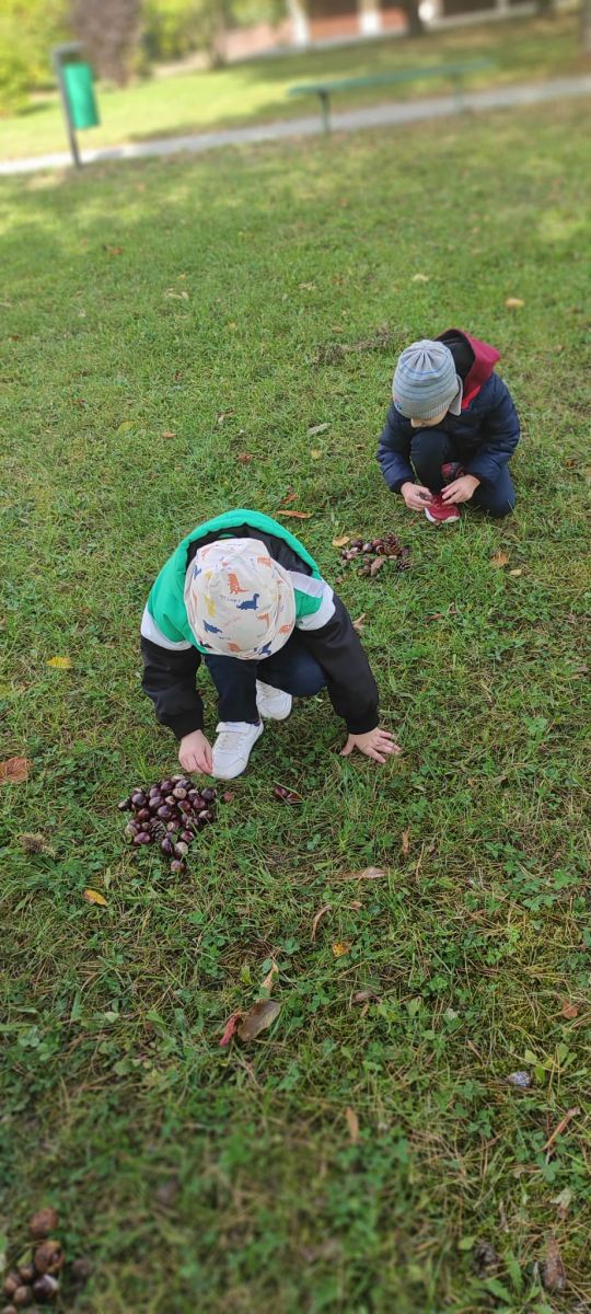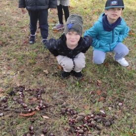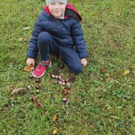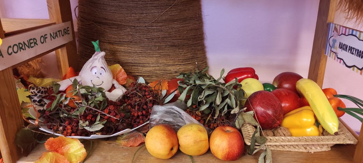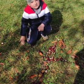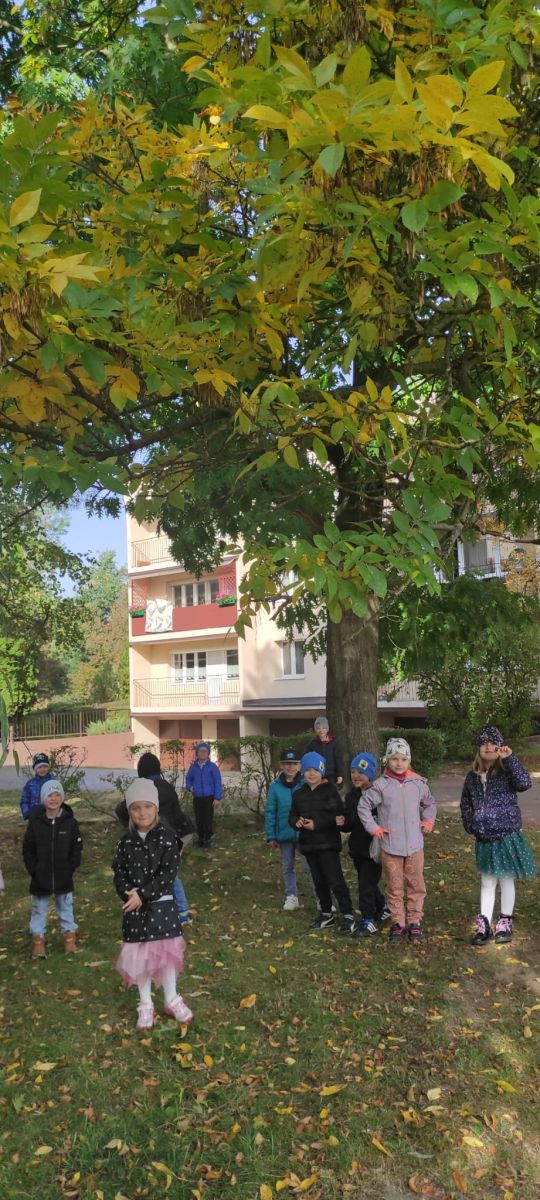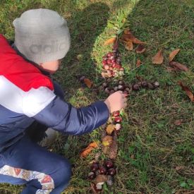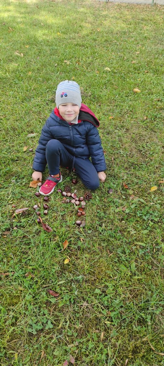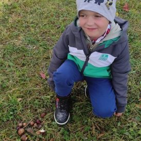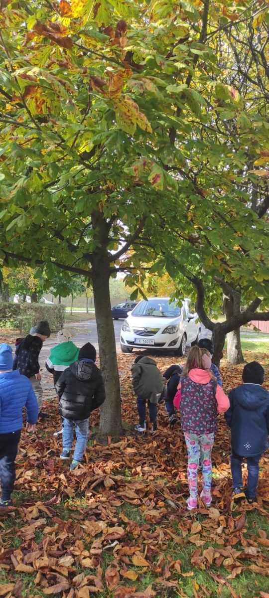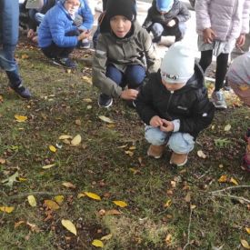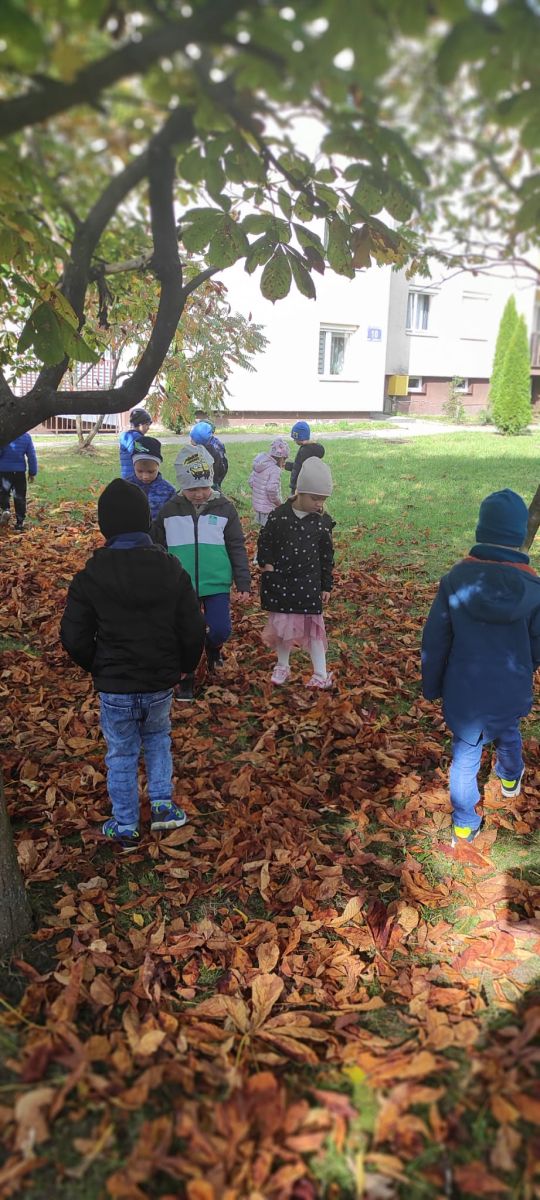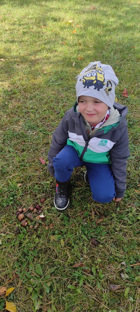 Tego roku mieliśmy wyjątkowo ciepłą i pogodną jesień. Dzieci z grupy Pszczółek dużo czasu spędzały na zabawach zarówno w ogrodzie przedszkolnym jak i podczas spacerów, podziwiając jesienne kwiaty w pobliskich ogródkach. Był to czas na zbieranie jesiennych liści, jarzębiny, kasztanów i żołędzi. Land art czyli sztuka ziemi pozwoliła dzieciom na wykorzystanie swojej wyobraźni podczas tworzenia różnych kompozycji z materiału przyrodniczego. Podczas takich wyjść w ramach realizacji programu ,,Przedszkolny świat przyrody” dzieci podziwiły piękno otaczającego, niezwykle barwnego krajobrazu naszej Karczówki. Tworzyły prace plastyczne, eksperymentowały z kolorami, poznawały różne techniki plastyczne. Nasz kącik przyrody wzbogacił się w nowe okazy przyrodnicze, które wykorzystujemy podczas codziennych zajęć.