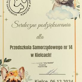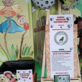 Od 20 listopada do 4 grudnia trwała w naszym przedszkolu XI edycja zbiórki karmy dla bezdomnych zwierząt w Schronisku w Dyminach pod hasłem "Pomóżmy zwierzętom przetrwać zimę".