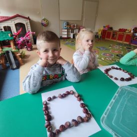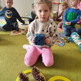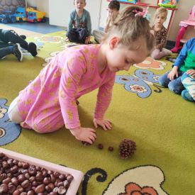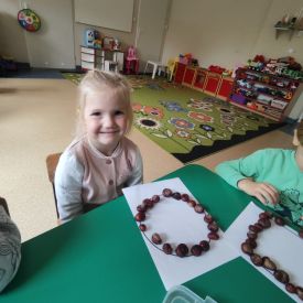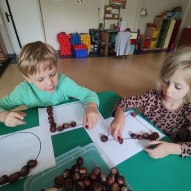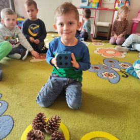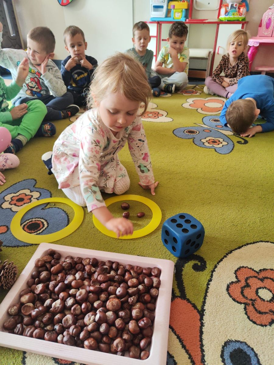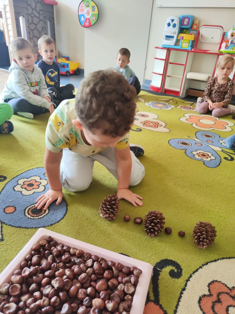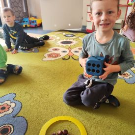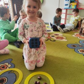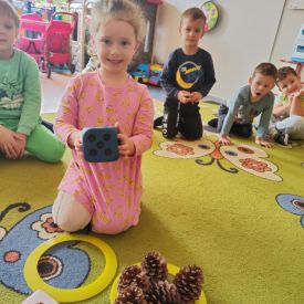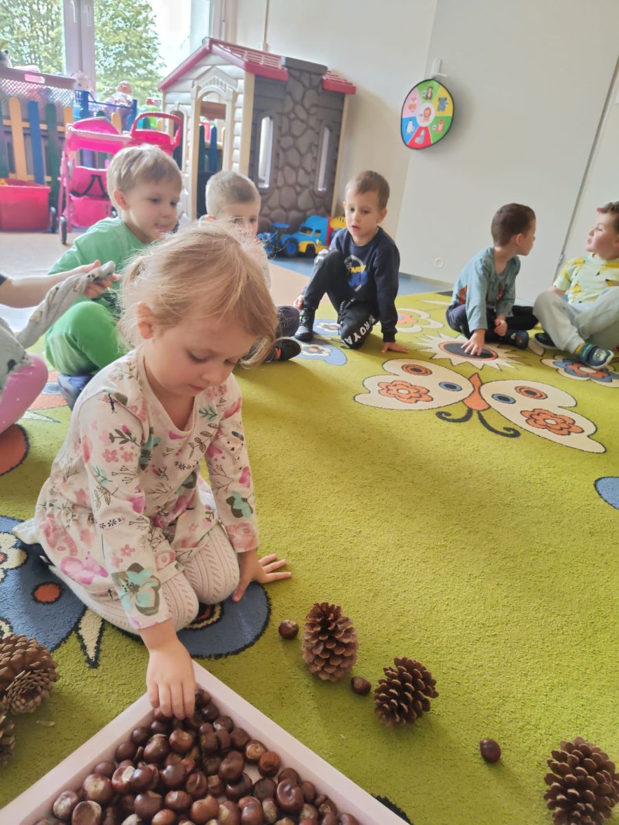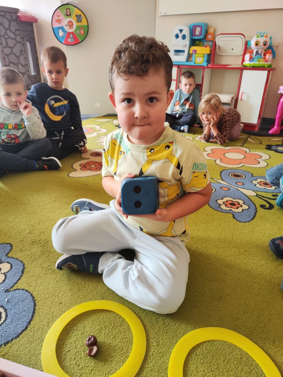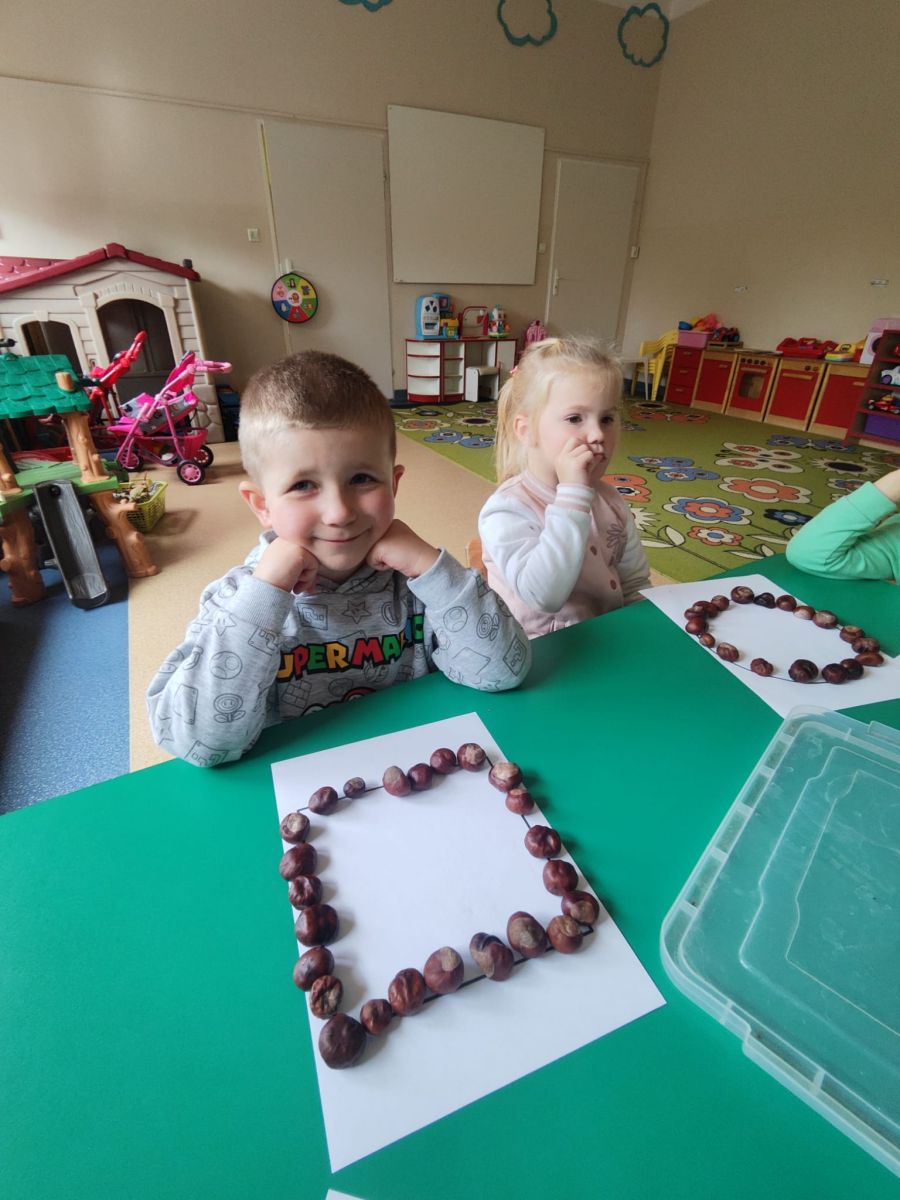 W roku szkolnym 2025/2026 dzieci z grupy Żabek biorą udział w Ogólnopolskim Projekcie Edukacyjnym "Kreatywna Matematyka". Przedszkolaki wykonały październikowe zadanie: "Matematyka w plenerze". Choć pogoda tym razem nie dopisała - nie przeszkodziło nam to w matematycznej zabawie - przenieślismy plener do naszej sali i z uśmiechem odkrywaliśmy matematyczny świat dzięki przyniesionym darom jesieni.