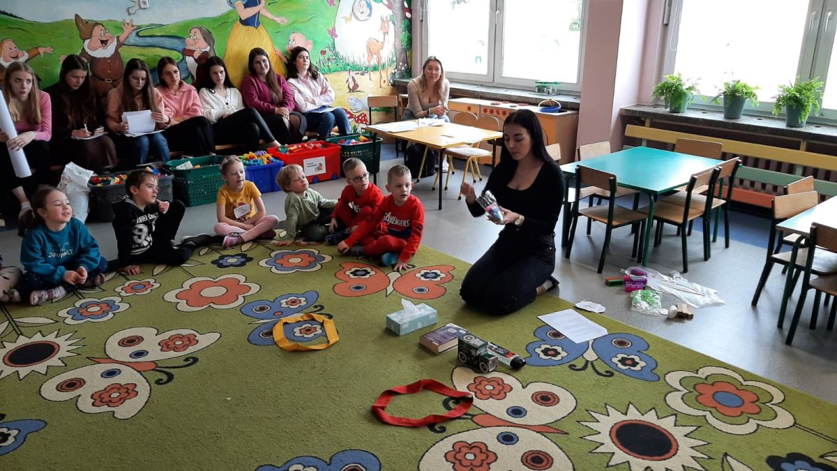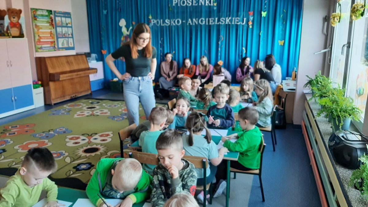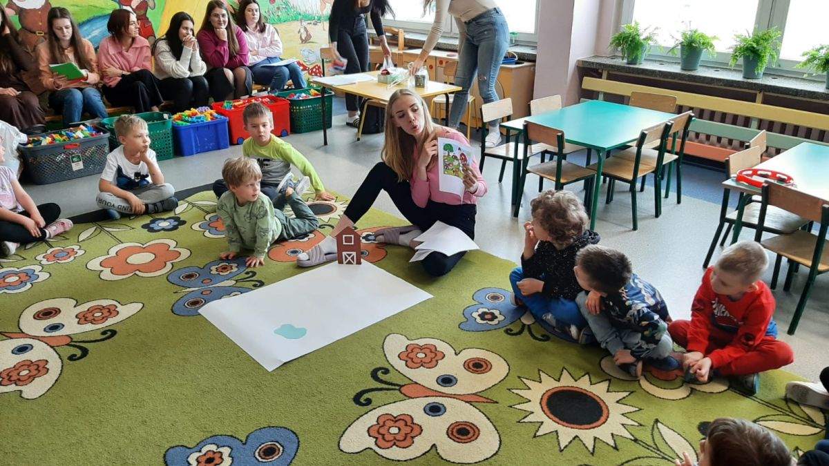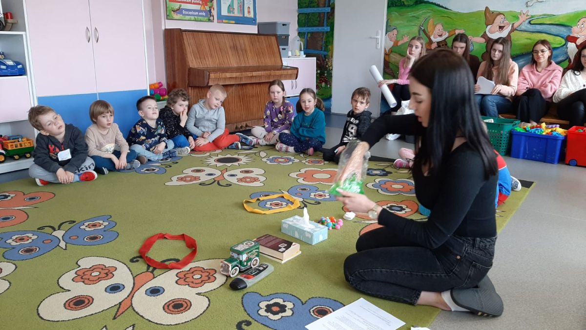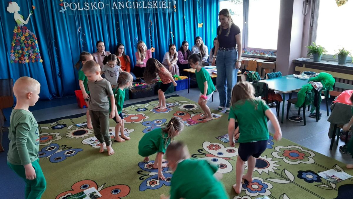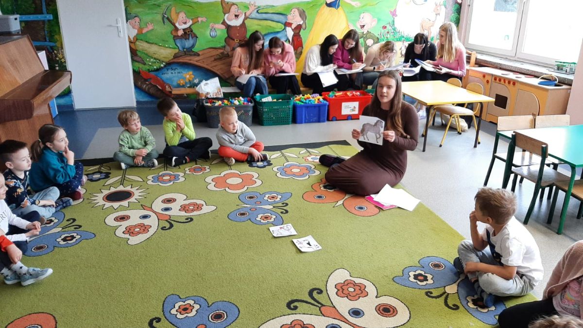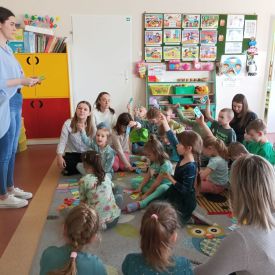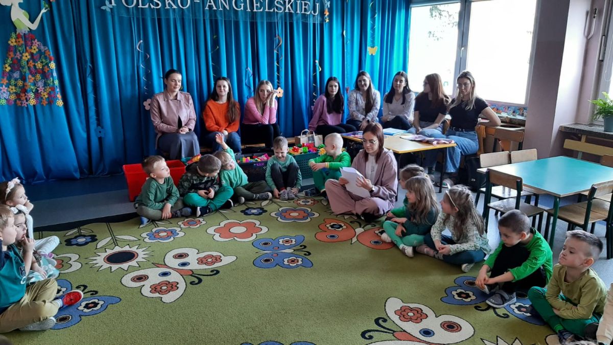 W dniach 14.03.2024 r.- 04.04.2024 r dwie grupy studentek ( 18 osób) II roku jednolitych studiów stacjonarnych, pod opieką nauczycieli: Doroty Pacek-Styś i Urszuli Gawryś, w grupach Sowy i Motylki brało udział w zajęciach hospitowanych i prowadziło zajęcia z dziećmi.