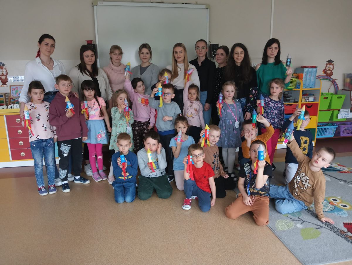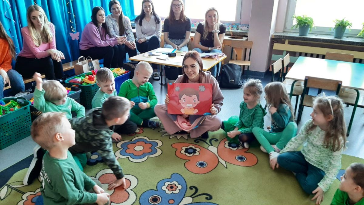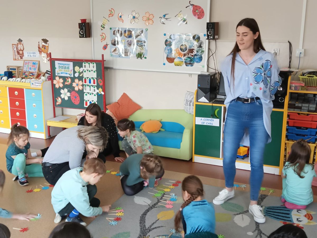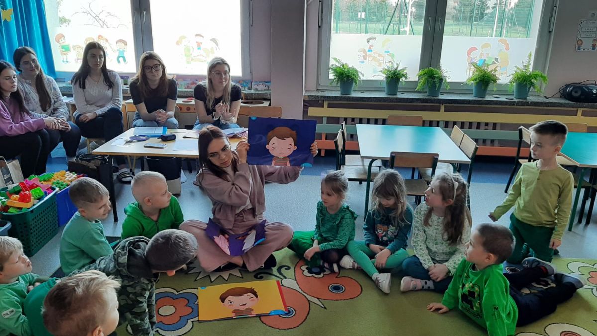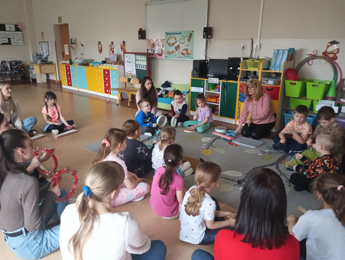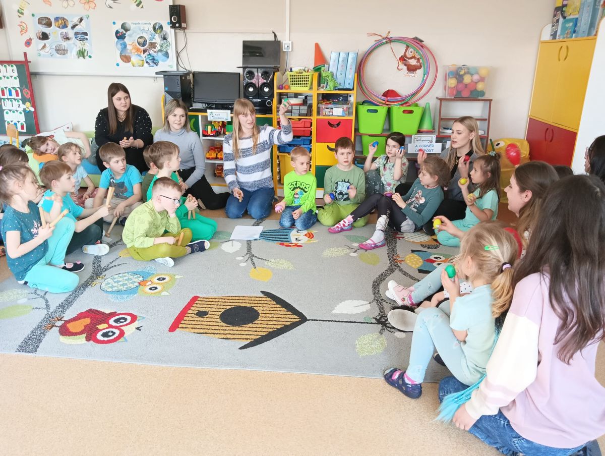 W dniach 14.03.2024 r.- 04.04.2024 r dwie grupy studentek ( 18 osób) II roku jednolitych studiów stacjonarnych, pod opieką nauczycieli: Doroty Pacek-Styś i Urszuli Gawryś, w grupach Sowy i Motylki brało udział w zajęciach hospitowanych i prowadziło zajęcia z dziećmi.